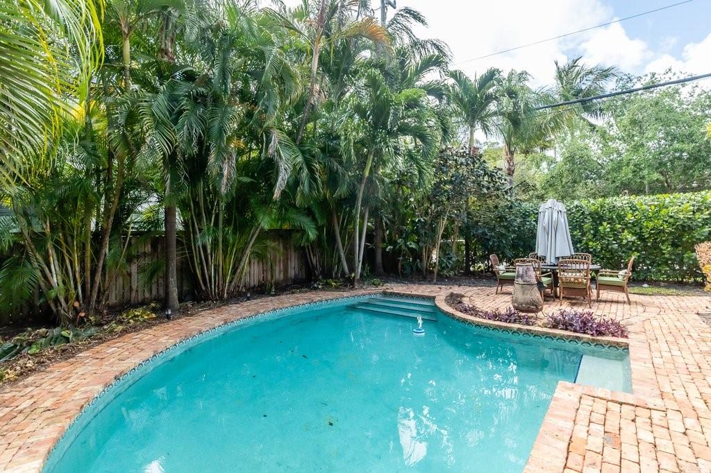Watch the superyachts go by from your living room window in this classic Rio Vista home, located on a prime corner lot across from serene Abreu riverfront Park! This 3 bed, 2 bath gem is tastefully updated w/ contemporary touches while retaining its original charm. Arched entryways; vaulted, exposed-beam ceilings; wood burning fireplace & hardwood floors blend beautifully w/ modern, granite & stainless steel kitchen. High-end appliances & cabinetry. Oversized, stacked, front-loading LG washer/dryer. Florida room, formal living & dining rms. French-inspired backyard features brick-pavered deck & lush landscaping surrounding lovely pool. Located in the most sought-after part of Rio Vista, away from busy US1. Newish roof & heater. Neighboring homes on similar lots sold for $1M+. Won't last!