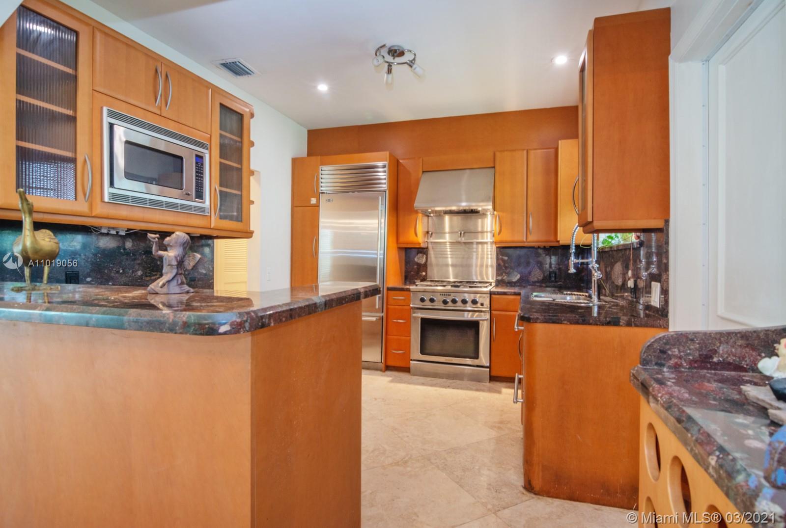 Move-In Ready "Beach House" 500 steps to the sand in your toes. Across from Bal Harbor Shops and Surfside Business District...walk to restaurants, coffee shops, grocery store and pharmacy. This is a total "beach lifestyle" location ; ) Full hurricane protection on all windows and doors; natural gas stand-by generator, enough to power the entire house; custom granite counters and Italian cabinetry; top of the line appliances: DCS Gas Stove/Hood & Microwave, Sub-Zero Refrigerator; A/C w UV Air Purifier; Mitsubishi split A/C unit in garage. Saturnia cappuccino marble floors throughout entire house. Custom cabinetry and built-in Murphy queen bed system with desk and storage included. Surfside residents enjoy use of Community Center Pool, Tennis, and Other Activities. 1815 SF under air