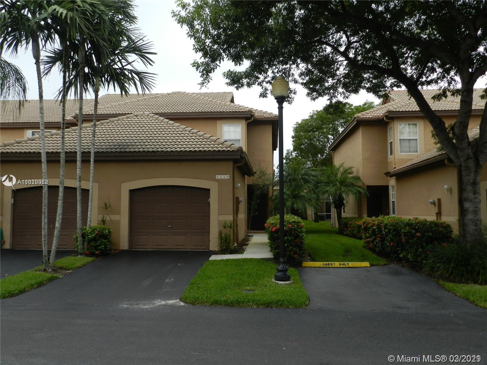 Lovely townhouse in Weston-end unit with private walkway entrance . Updated kitchen with snack bar and updated cabinets, screened patio.Each bedroom has its own bathroom and a additional guest bath down. Community has pool and playground area. Great location for commuting, shopping and school. Laminated floors in all the house .
