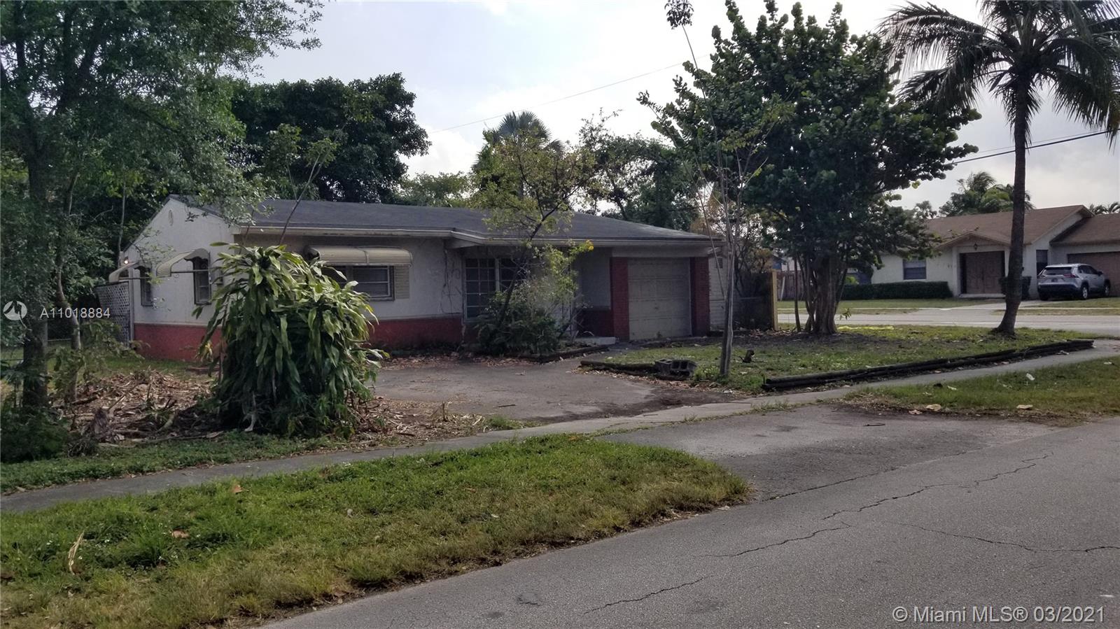 Estate Sale. All offers must be subject to Probate Court Approval. No drive-by offers. Great starter home on large corner lot. Well-established native trees and shrubs. Roof redone in 2012, tented this year. Needs paint and decor. Garage converted to a storage room. City of Hollywood shows home on Sewer line. Available to show after April 5th.