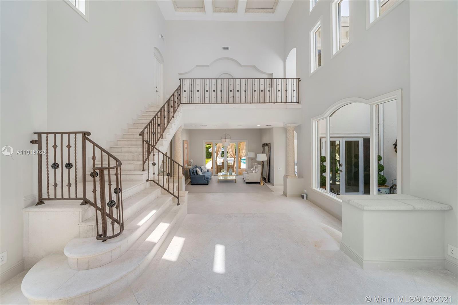 Impeccably designed residence with coffered ceilings, crown moldings, light-filled living spaces, elegant finishes and resort-like gardens. A gated entrance surrounded by a canopy of Oak and Podocarpus trees welcomes you to this two-story 7,995 Sq. Ft. home with 7 bedrooms, 4 full and 2 half baths. The entrance foyer leads to the formal living room, with views of the pool and manicured garden. Also on the main level is a formal dining room, stylish bar and professionally equipped kitchen with breakfast area. The sunny family room opens to a beautiful and sophisticated outdoor terrace, ideal for entertaining. The main suite has 2 custom-designed walk-in closets and a luxurious bathroom. This truly remarkable home also comes with an office, gym, staff room and half-basketball court.