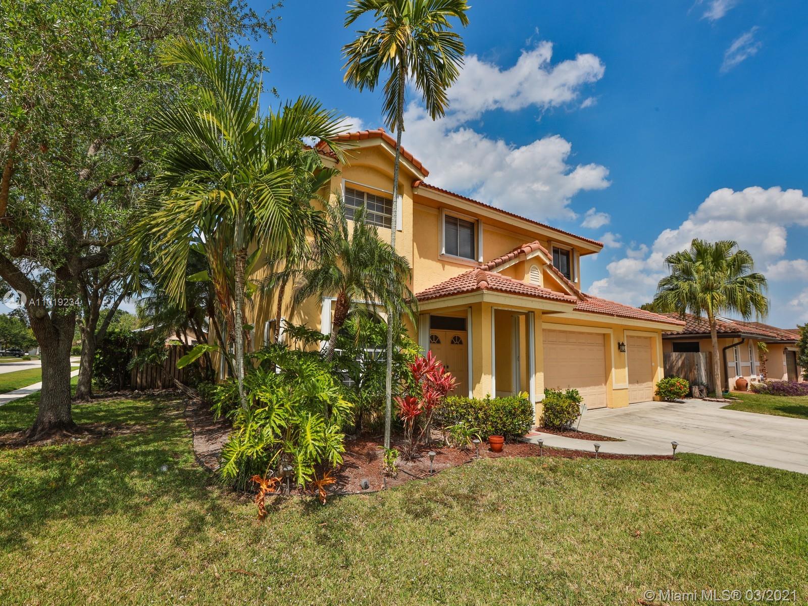 Rarely available two-story home at Village Homes in Bonaventure can now be yours! Tastefully upgraded, it features 5 bedrooms, 3 baths and 2958 sqft of living space. The first floor has ample room for dining and entertainment areas; it includes a full cabana bath and a walk-in pantry. The kitchen is equipped with upgraded cabinets, S.S. appliances and center island with electric cooktop. The bedrooms upstairs include the spacious primary suite with private balcony, 2 walk-in closets; dual sinks, whirlpool tub and shower in the primary bathroom. Surrounded by a privacy fence, the backyard/pool area is the perfect place to relax. On a corner lot in an A-rated school district, within minutes of everything Weston has to offer, this home is anyone’s dream. Schedule a visit to see for yourself!
