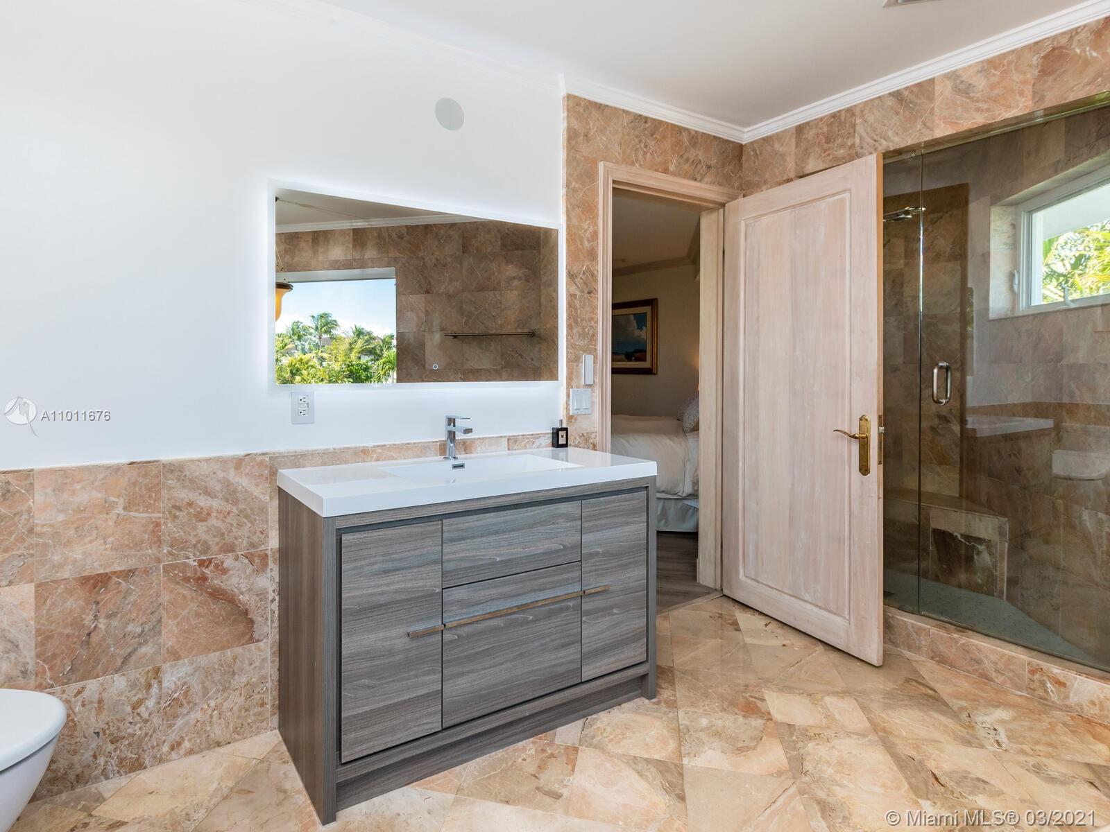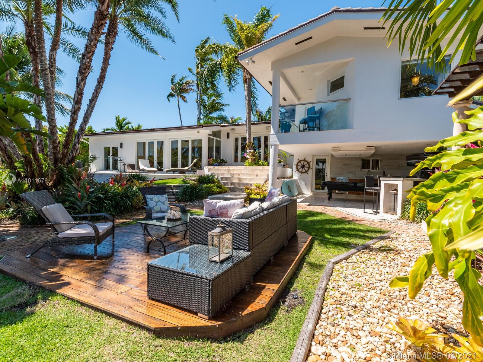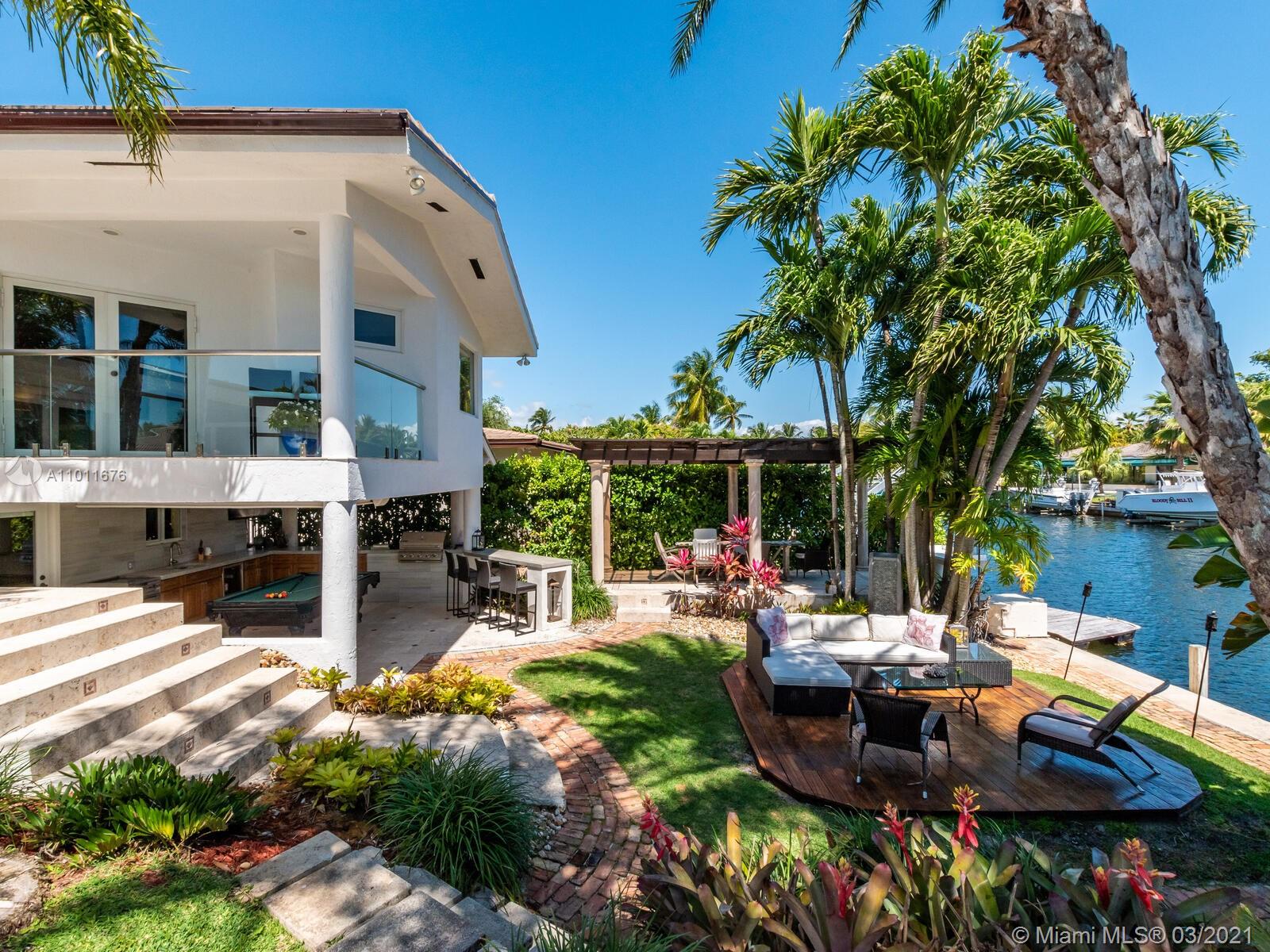 Beautiful 5BD Ocean Access home on quiet street in Gables by the Sea. New 2020 flat tile roof, impact glass doors/windows on highly elevated lot. Enjoy the finest in indoor and outdoor living and family entertaining with Eastern exposure ocean access breezes from new pool/patio, master balcony and amazing summer kitchen, dining and covered entertaining areas, cabana bath. Heated, saline new construction 2020 pool and spa on natural stone deck. 100' of 1-bridge ocean access includes a 2017 8k lb boat lift, which can be upgraded to 15k lb and 3k lb capacity davits for jet ski. Home was fully updated in 1994 with numerous additional updates to include full kitchen renovation and new marble floors in 2013 and remodeled summer kitchen and pergola in 2016.