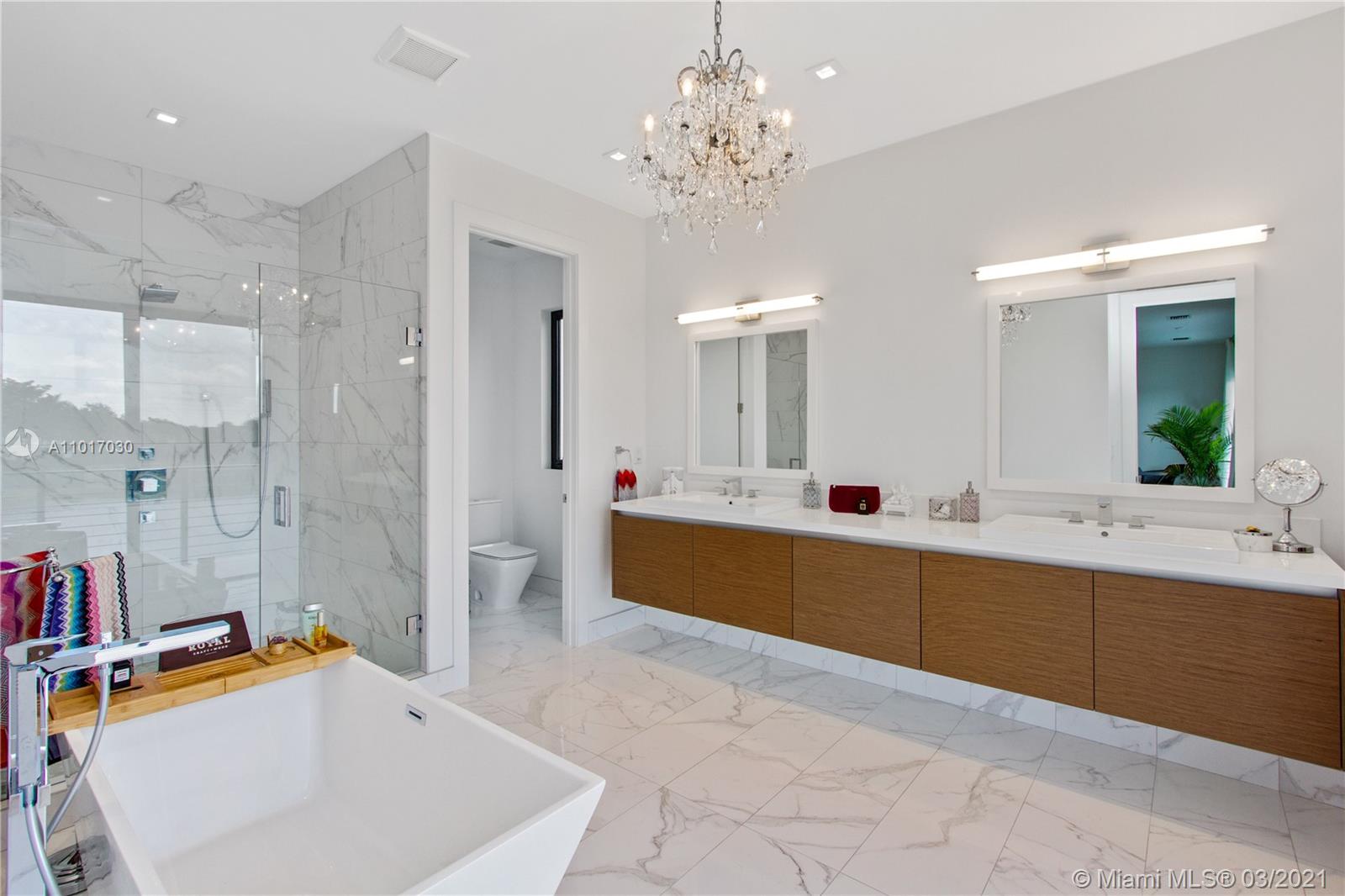 Ready to move in!New construction, luxury Home designed by famous Chad Oppenheim. Fully upgraded, on premium unique interior waterfront, oversized lot w/lush landscaping. In gated community of Botaniko Weston. 5 bedrooms, 1 office, 6,5 bath. Saltwater heated 40X20 pool. Covered summer kitchen. 5 custom-built floor to ceiling closets. Somfy motorized blackout roller shades. Gorgeous Calacatta gold tile 1st level and Oak hardwood upstairs. Italkraft cabinets, integrated Subzero, 48 in wide refrigerator/freezer, wine cooler, electric wall oven, Wolf gas cooktop, Bosch built-In Coffee maker. Master bedroom with luxurious master bath with lake view, soaking vessel tub, floating cabinets, sliders to balcony. Unique opportunity, timelessly elegant contemporary new home.