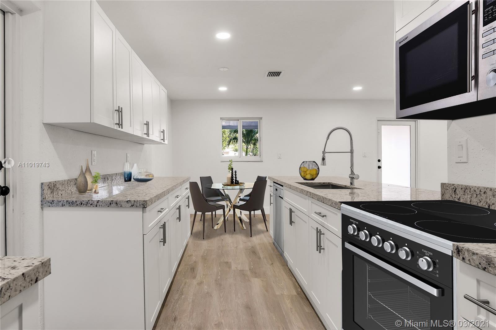 Beautiful updated home with a modern theme ready to move in featuring 3 bedrooms and 2 baths on a quiet street in West Hollywood. Crisp and clean design with light filled spaces throughout, white kitchen cabinetry, quartz countertops, SS appliances, brand new light fixtures, modern flooring and an independent utility room for laundry and storage. Spacious backyard with mature fruit trees and a lush lawn with plenty of room for a boat or RV. Close to highly rated schools, 441, the Turnpike, I95 and other major highways for easy access throughout South Florida.
