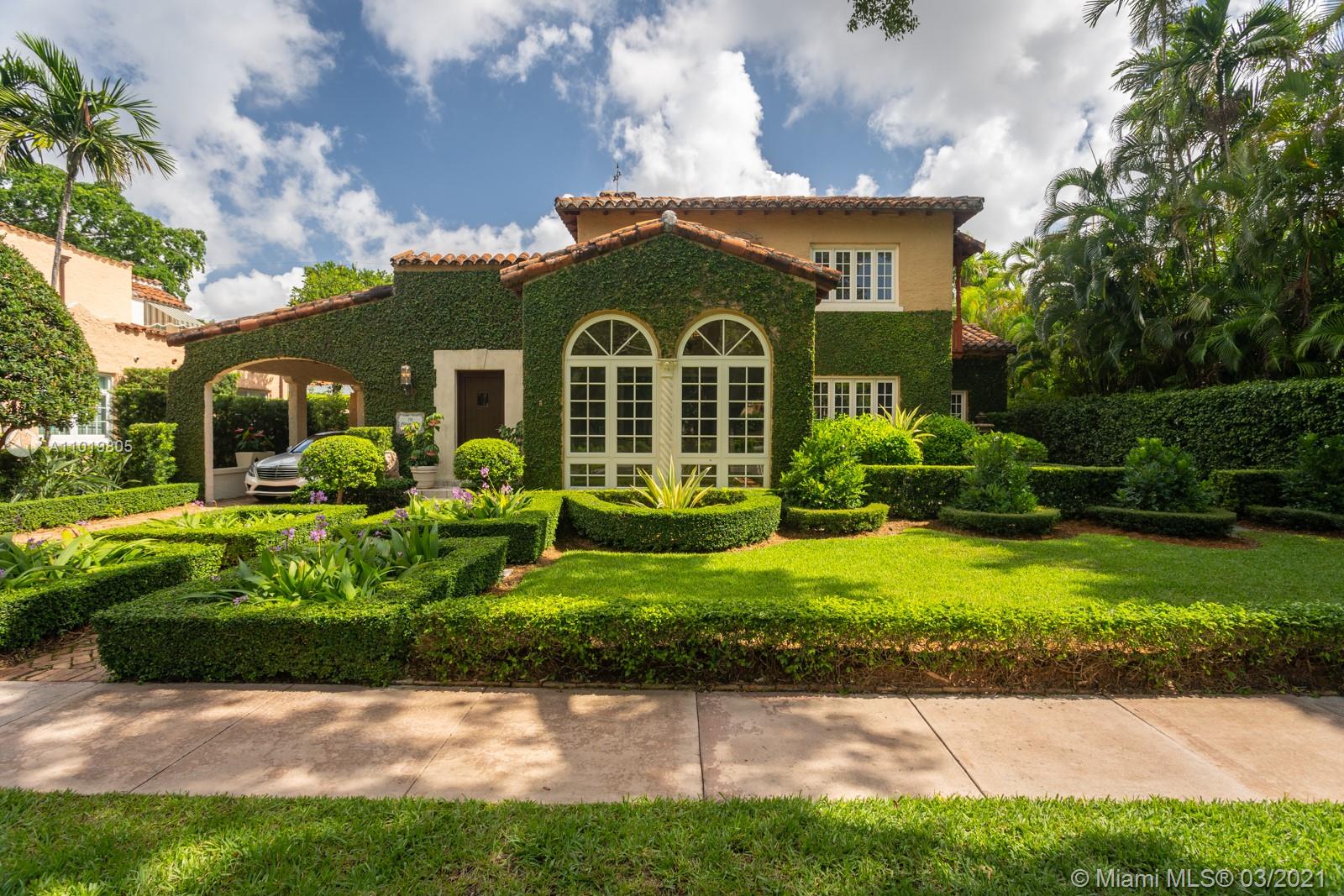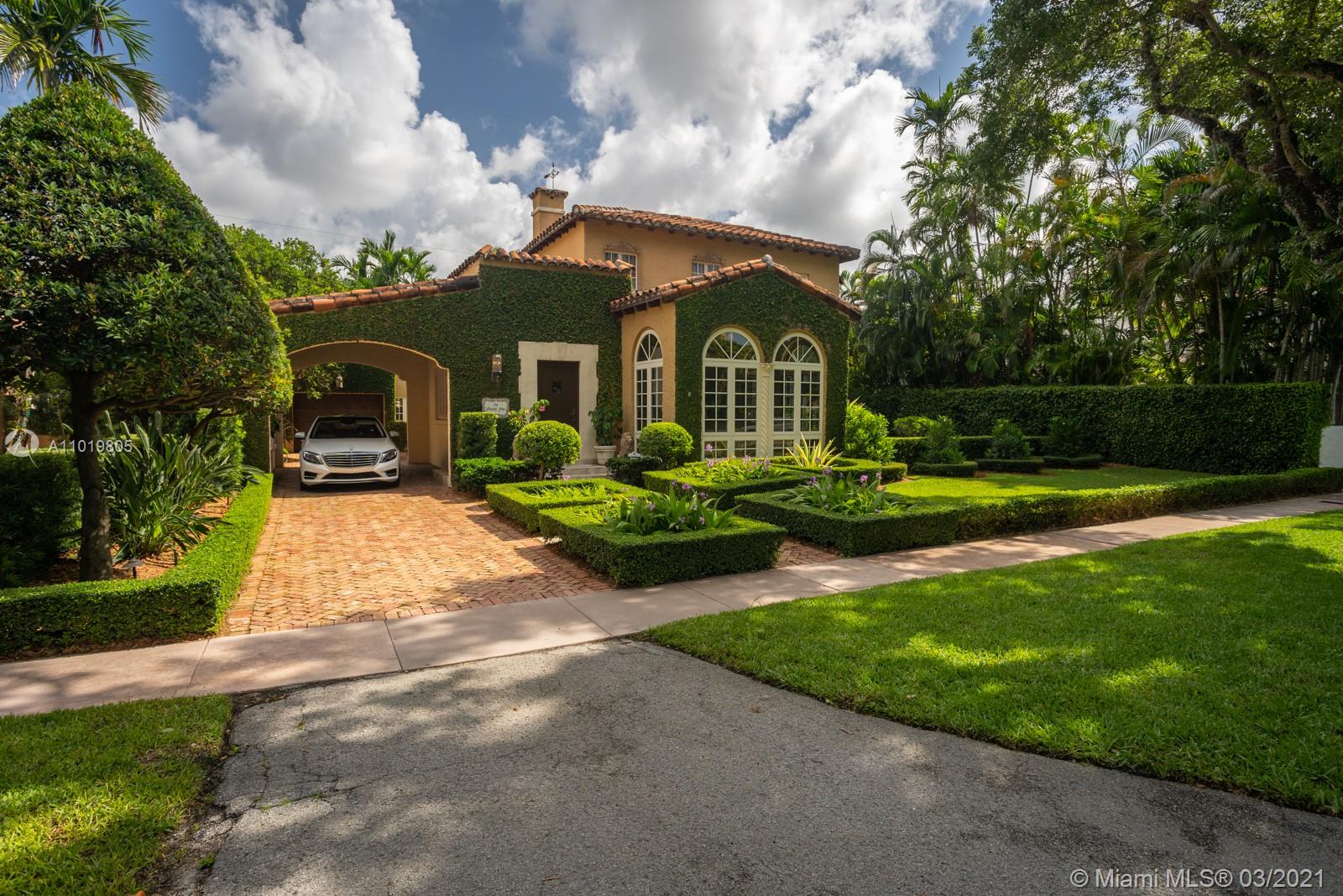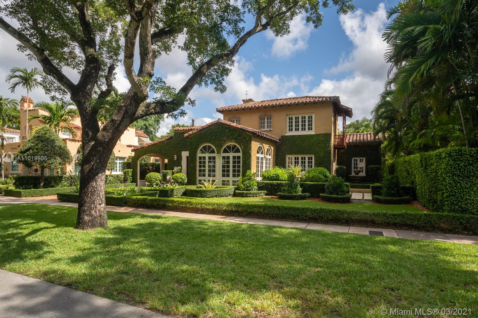 Quintessential Coral Gables! If you are an aficionados of architecturally significant residences then Welcome Home! Balancing historical integrity with stylish finishes was paramount in this painstaking renovation. Step back in time as you walk through the Portecochere. This Old Spanish gem was designed in 1926 by architect Martin Hauri. The home is nestled in the Alcazar Historic District & faces Alcazar Park with no front door neighbors. Interior features: 2nd floor master suite, 2 charming 1st floor bedrooms, high-grade kitchen with Wolf/Subzero appliances, formal dining, breakfast room & a sun room. Detached garage, guest house, brick patio w/ BBQ & fountain are some of the exterior highlights. All Impact glass, new plumbing/electrical & a gas fireplace.