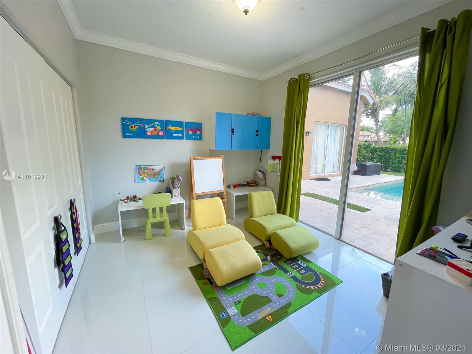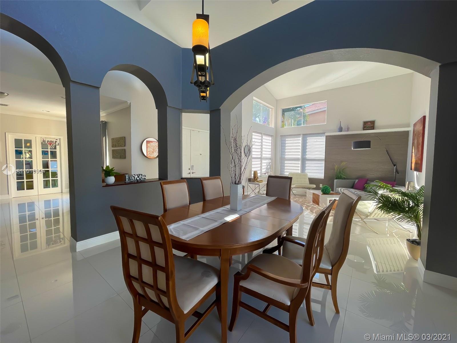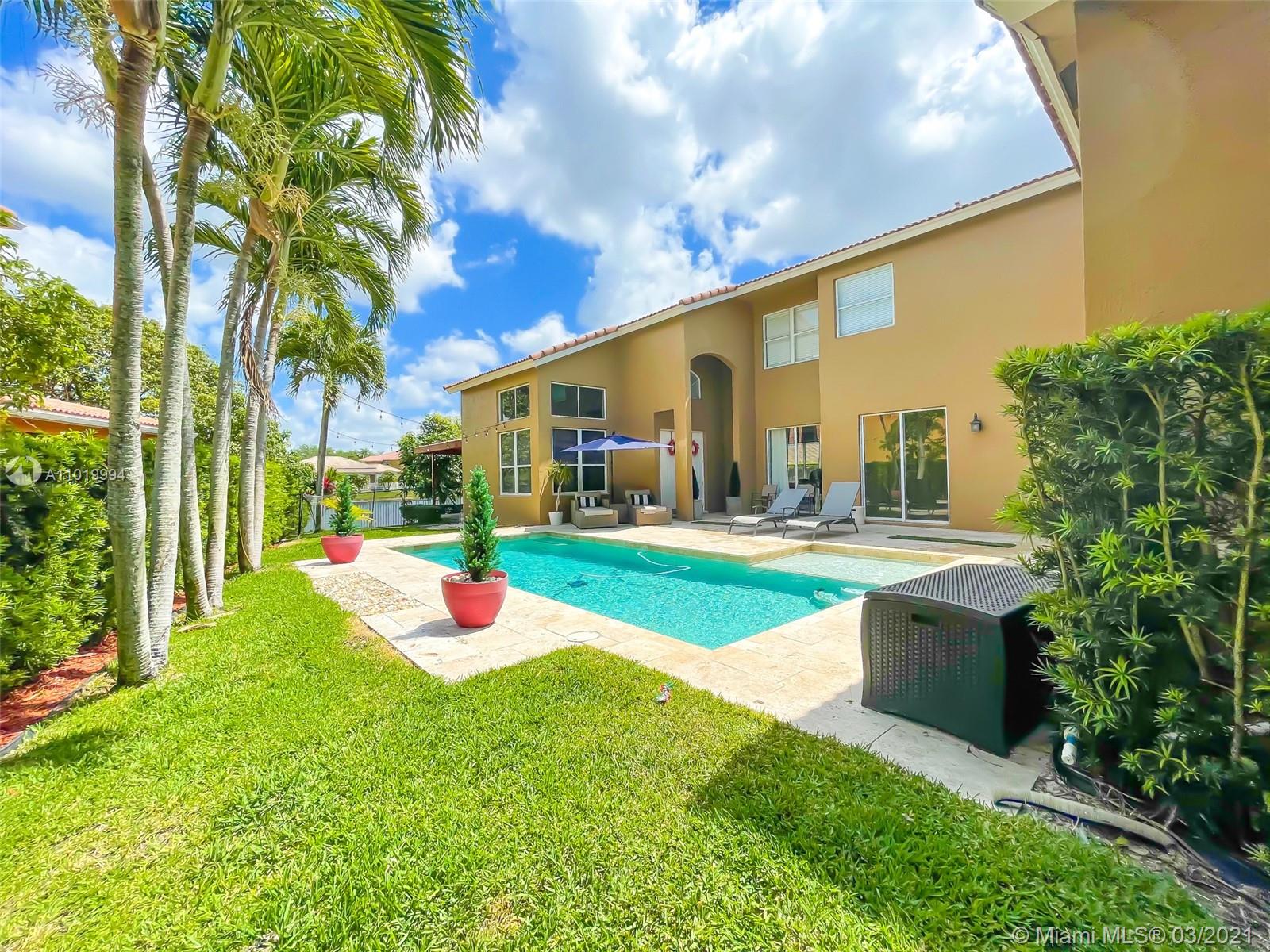 BEAUTIFUL 6BED 4 BATH HOME WITH A 3-CAR GARAGE AND HEATED POOL. COURTYARD STYLE MODEL. WITH DETACHED EXTRA BEDROOM AND BATHROOM. GORGEOUS WHITE PORCELAIN TILE FLOORS ON FIRST FLOOR, LAUNDRY, AND ALL BATHROOMS. UPGRADED KITCHEN, GRANITE TOP, WOOD DARK BROWN CABINETS & NEW FRIDGE INCLUDED. HUGE MASTER BEDROOM W WALK-IN-HIS & HER CLOSETS. AMPLE SITTING AREA FOR OFFICE & LOFT AREA. BEDROOM 5 &6 CONVERTED INTO 1 LARGE BEDROOM. YARD WITH TRAVERTINE TERRACE COVERED BY AWNING AND MANGO TREE. LOCATED IN MONARCH LAKES. HOUSE IS IN PRIVATE COMMUNITY (tennis, basketball, playground, BBQ, and picnic area). Close to shopping mall, restaurants, Memorial Hospital, A+ rated schools. Easy Access to I-75 & Turnpike.