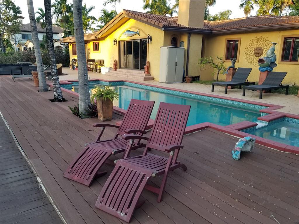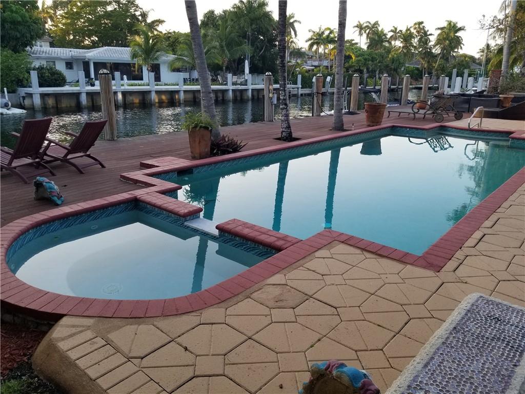 100' feet of dockage, walled gated entrance, 4 bedroom 4 bath with updated large kitchen with Viking gas stove, Subzero refrigerator, wine cooler. This house is set up for entertaining. Large formal living room, media room off kitchen with informal dining and formal dining room. Two separate office areas and a billiard room. Master bedroom has a separate spa tub and steam shower. There is a whole house gas generator and a large swimming pool. Great for Air BB set up.