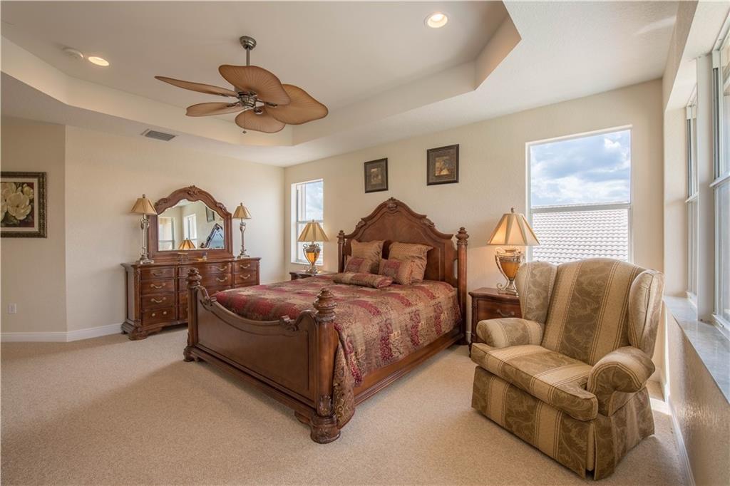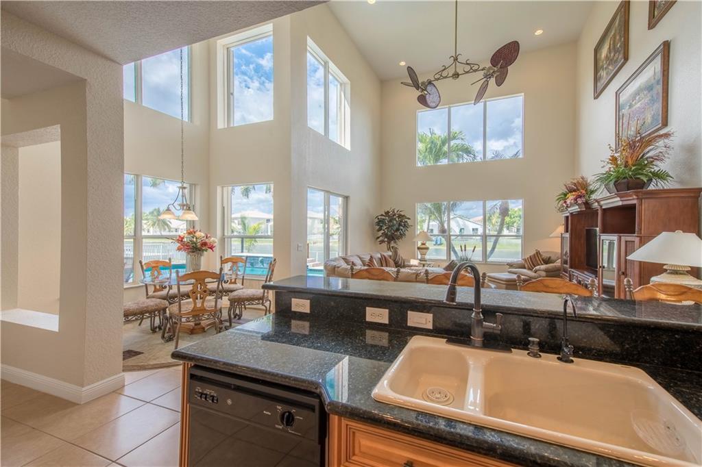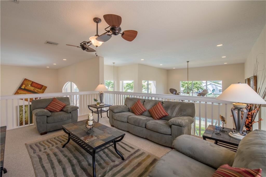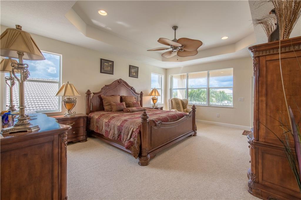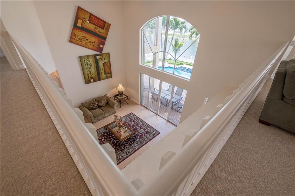 Stunning home with 4 br/3.5 bath, plus big loft and office. Elegant modern open floor plan with lots of sunlight and 22 feet vaulted ceiling. 2 BR downstairs, a mini master with cabana bath and additional bedroom. Gourmet kitchen with wooden cabinets, granite counter tops. New interior paint, new water heater , new a/c unit and accordion shutters. Gorgeous pool 15X30 with spacious backyard overlooking water front views, perfect for entertainment.