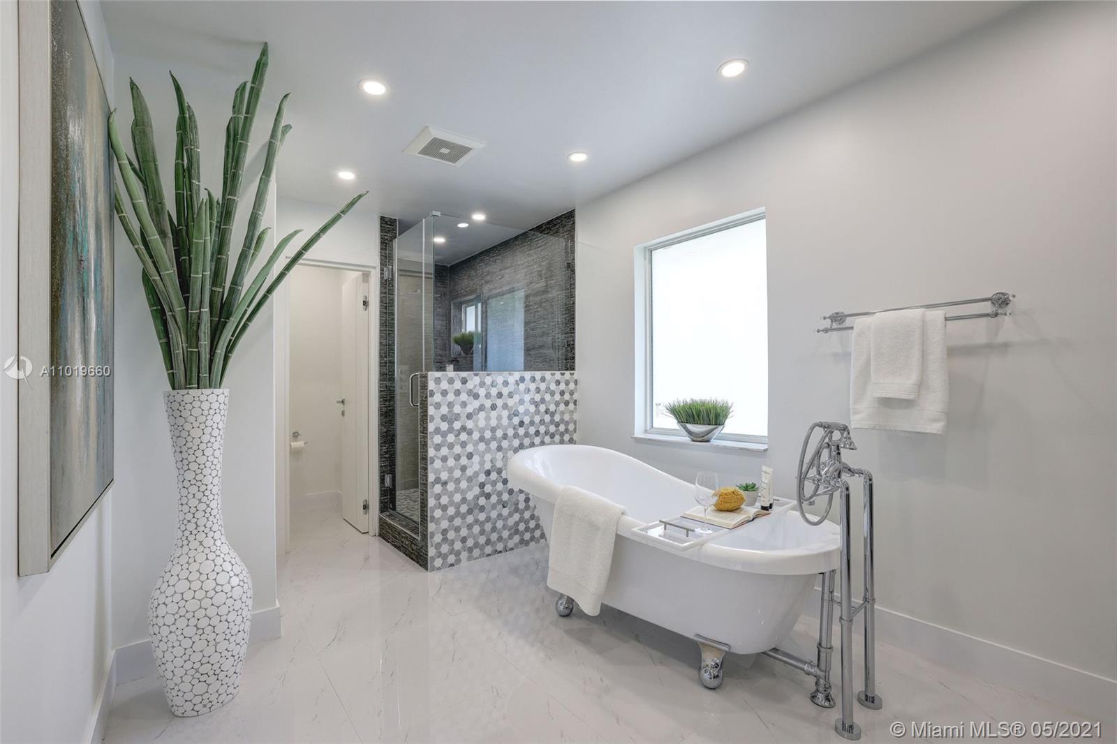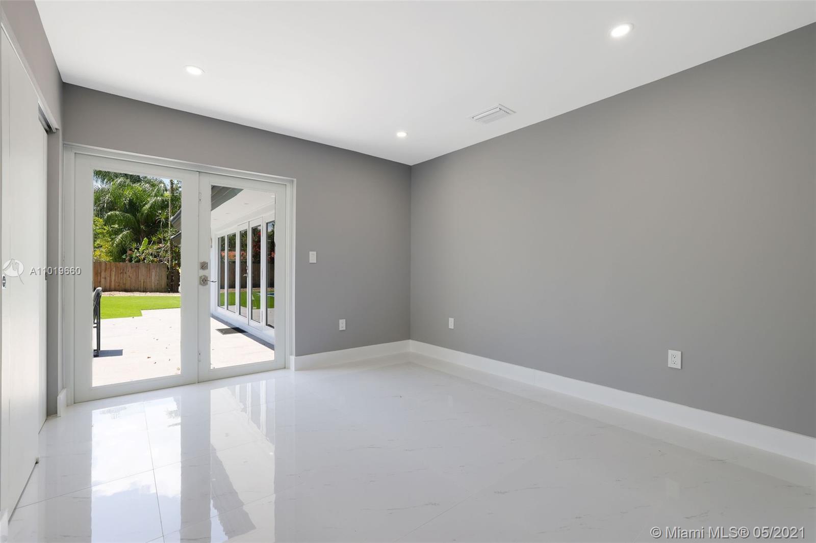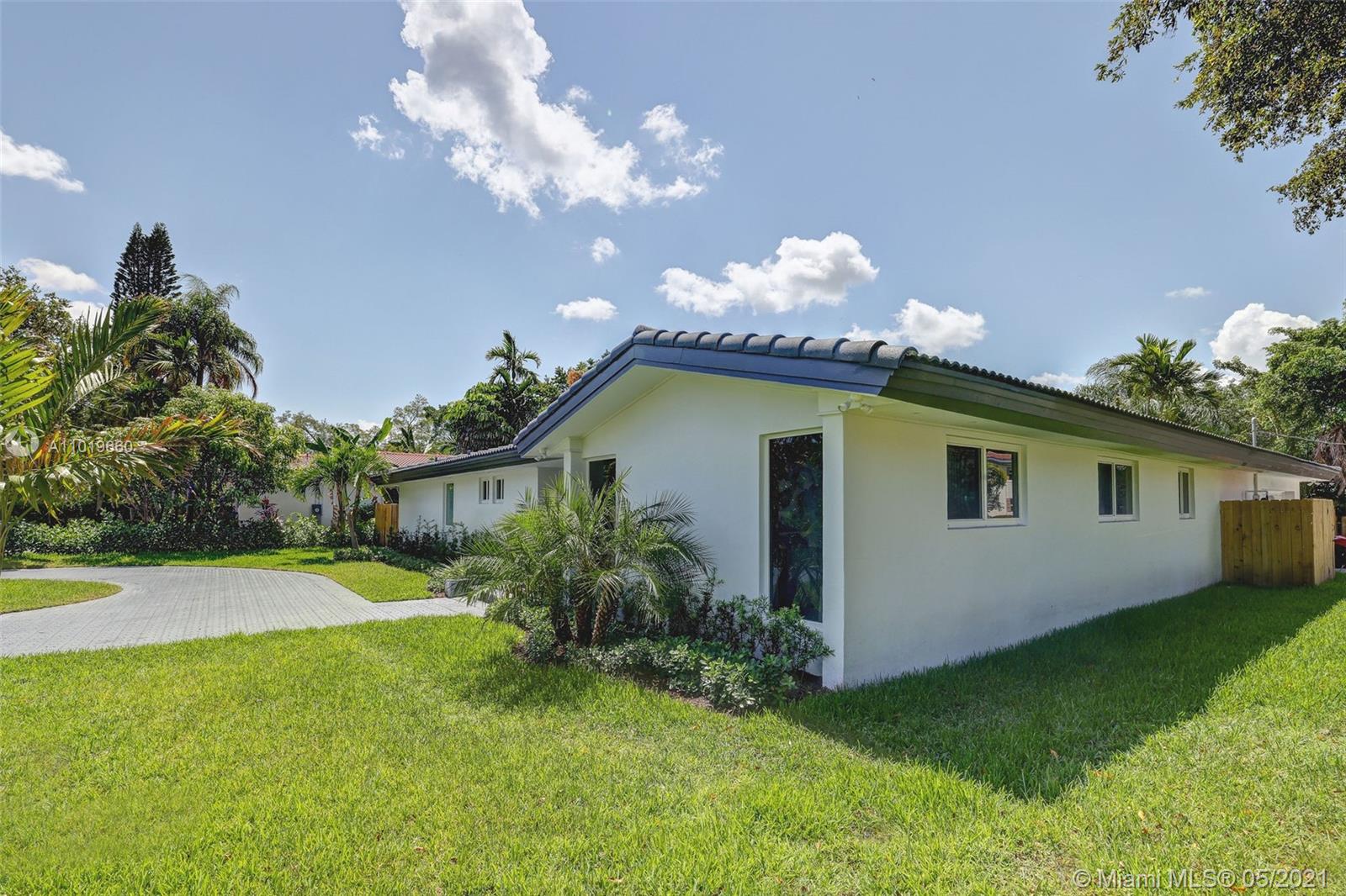 Miami Shores Pool Home! This jewel is situated on a sprawling 1/3 acre corner lot. Completely gutted and tastefully renovated. Just completed - May, 2021. Must see! This gorgeously finished 4 Bed/2.5 bath residence features a bright and spacious design providing abundant natural light, appealing white porcelain tile flooring throughout, a large 2 car garage, impact windows/doors, and sleek spa-inspired bathrooms. The chef-inspired kitchen is equipped with brand new Bosh appliances, quartz counter tops and custom cabinetry. Central kitchen island with bar seating and separate dining space allow for numerous spots to entertain. The open floor plan is ideal for indoor/outdoor living. All bedrooms and living spaces open to your newly installed pool and serene patio area with complete privacy.