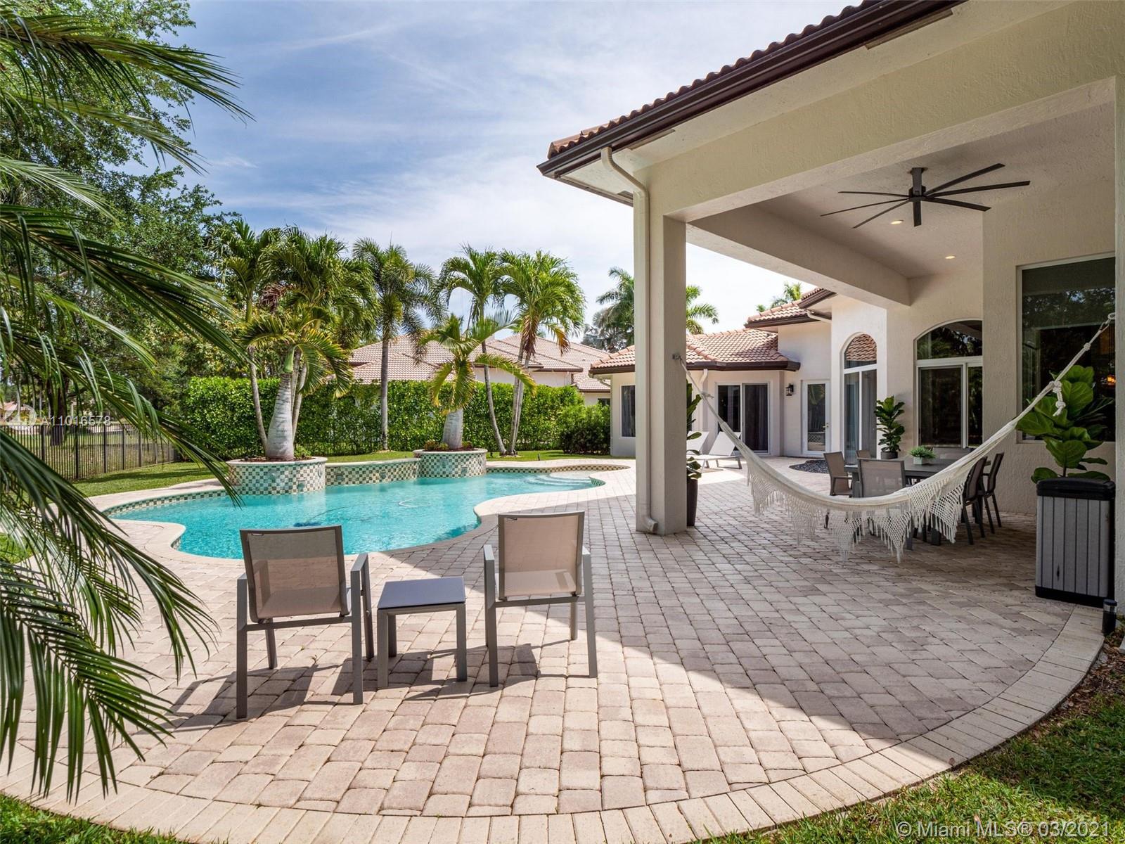 Surround yourself in luxury in this spectacular, one of a kind, completely upgraded home in the heart of Weston Hills Country Club. This beautiful five bed/five bath home includes a spacious den, gym and a playroom. The 18,000+ square foot lot is fully fenced with a sparkling, heated saltwater pool and an ultra-private backyard. The house is fully hurricane protected with impact windows and doors throughout, three newer AC units, Nest thermostats, Bose sound system, high-end window treatments, a fireplace, marble floors, three car garage, modern kitchen, Subzero fridge, wine cooler, alarm sensors on all windows ...and the list goes on and on. Easy access to top-rated public schools and neighborhood shopping.