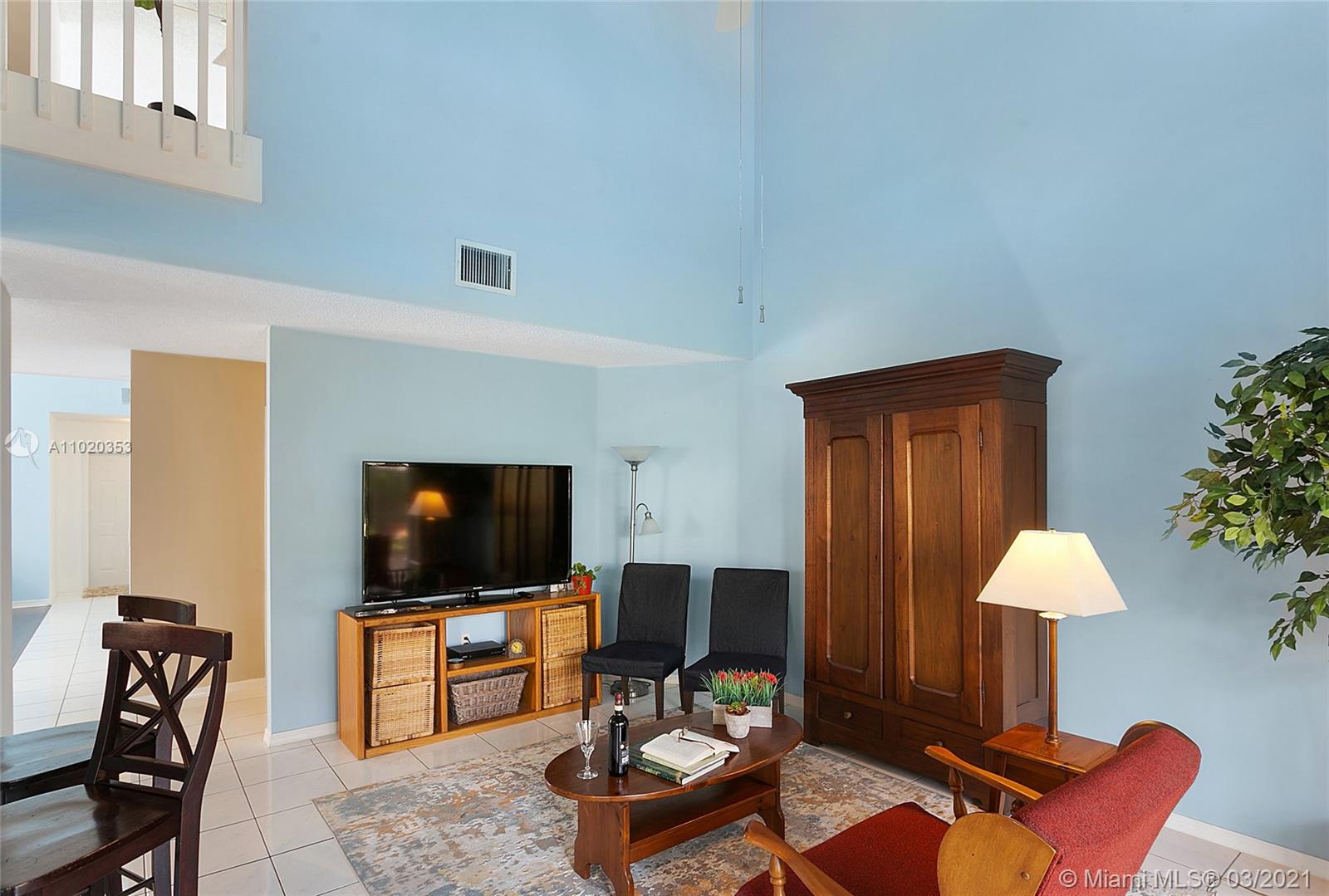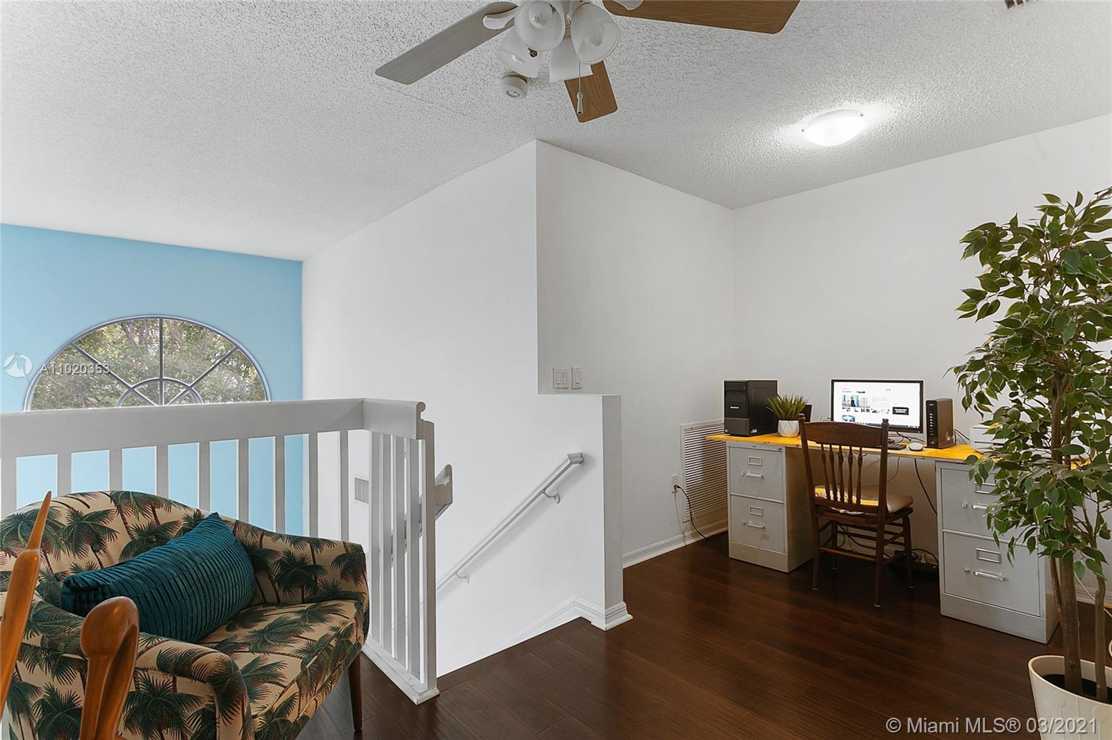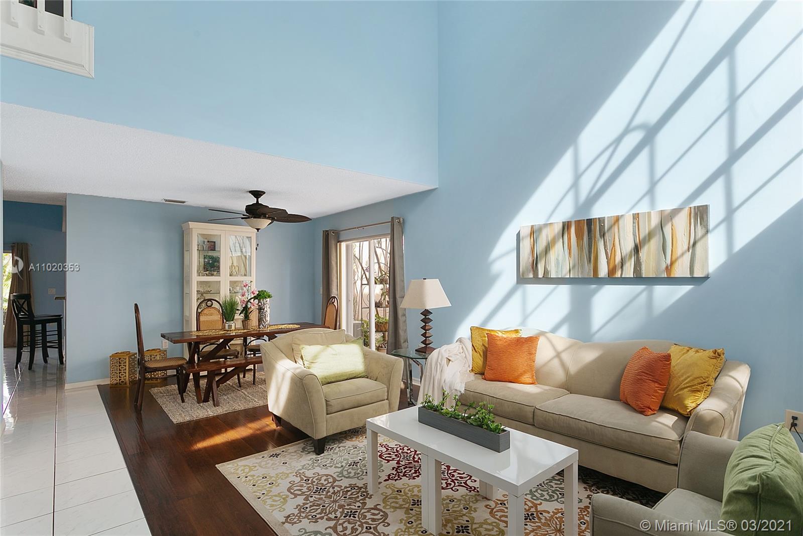 Feel instantly welcome as you enter this bright & airy 3 bedroom 2.5 baths home that boasts a total living space of 2678 sq ft, open floor plan with vaulted ceilings in both living & family room, charming dark laminate wood flooring on stairs, upstairs, formal living, formal dining and all bedrooms complementing white tile floor in other areas. Hurricane shutters throughout except for 1 window in the front. Kitchen features ample counter space, an L-shaped island, a breakfast nook & nice pantry that open up to the family room. Large sliding door from the family room leads you to a backyard oasis. Master en-suite downstairs with beautiful garden view & 2 bedroom upstairs with a loft on the 2nd floor landing can be used as an office, reading nook or a TV corner. Low HOA fees. See it today!!
