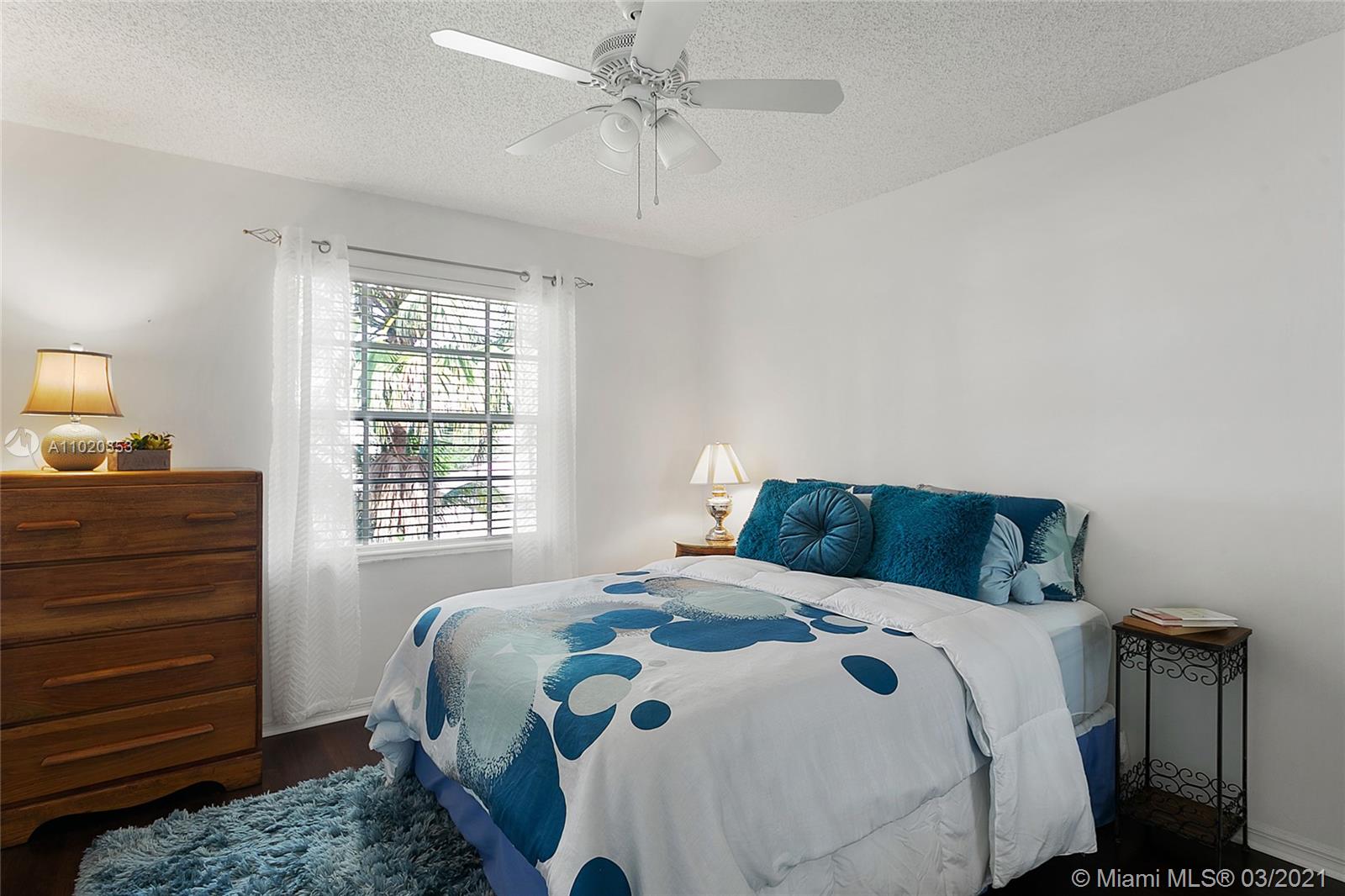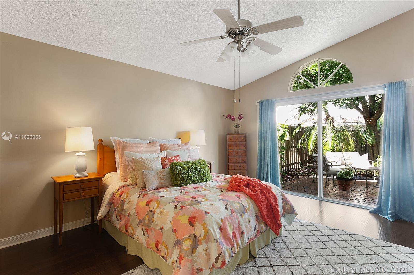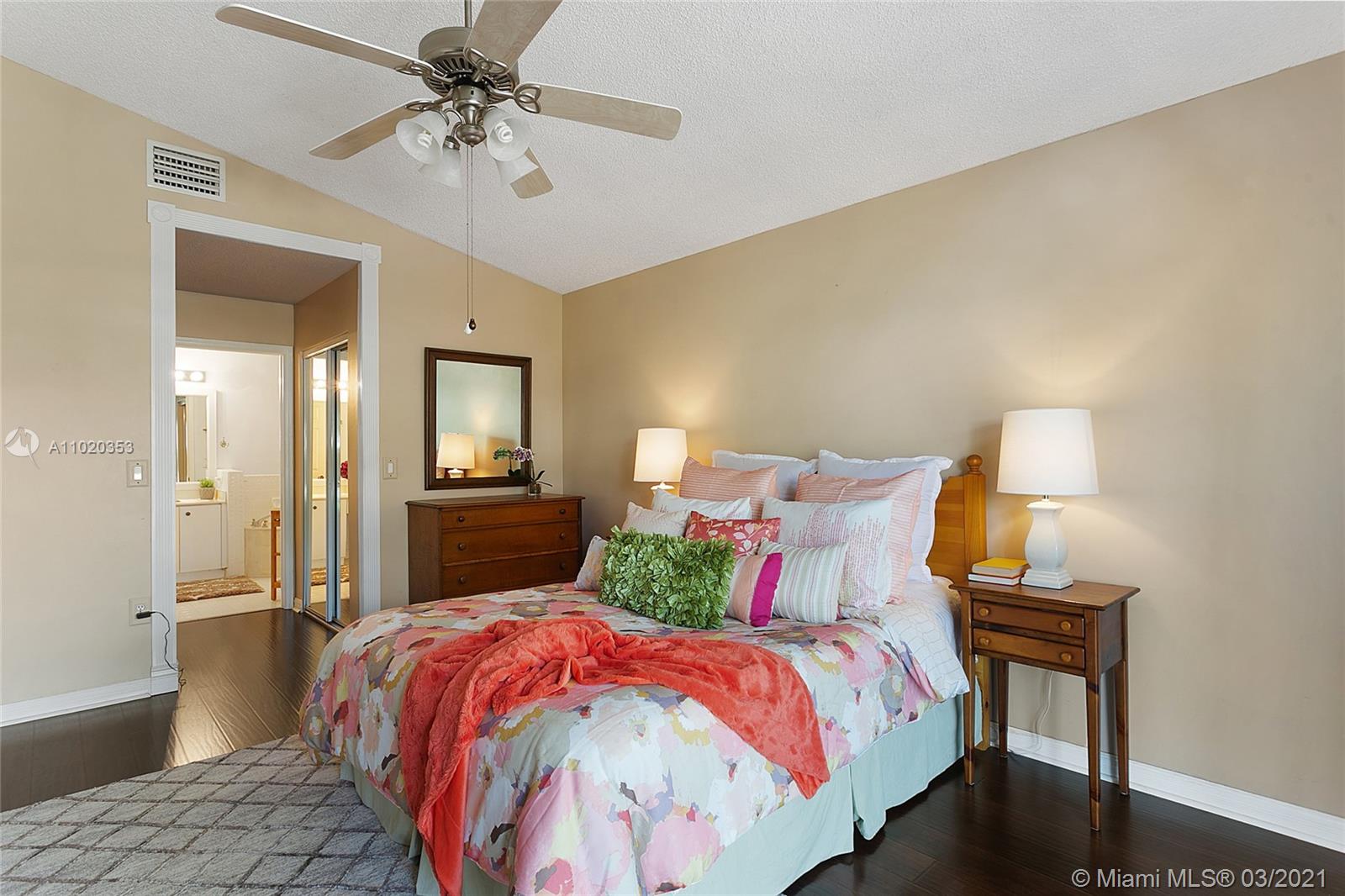 Feel instantly welcome as you enter this bright & airy 3 bedroom 2.5 baths home that boasts a total living space of 2678 sq ft, open floor plan with vaulted ceilings in both living & family room, charming dark laminate wood flooring on stairs, upstairs, formal living, formal dining and all bedrooms complementing white tile floor in other areas. Hurricane shutters throughout except for 1 window in the front. Kitchen features ample counter space, an L-shaped island, a breakfast nook & nice pantry that open up to the family room. Large sliding door from the family room leads you to a backyard oasis. Master en-suite downstairs with beautiful garden view & 2 bedroom upstairs with a loft on the 2nd floor landing can be used as an office, reading nook or a TV corner. Low HOA fees. See it today!!