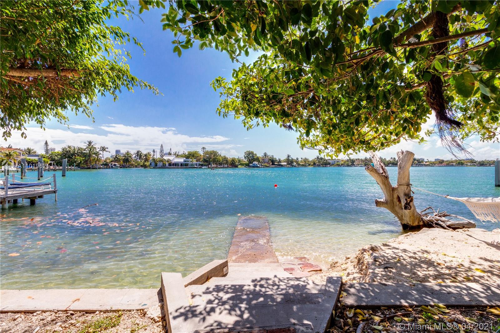 Miami Beach Waterfront home on guard gated island. Small home is being sold for land value. Small sandy beach, with wide bay views and minutes to the intracoastal. Please see Broker's remarks regarding showing instructions.