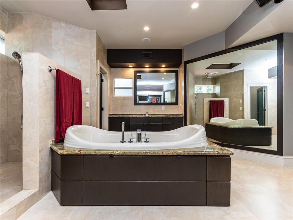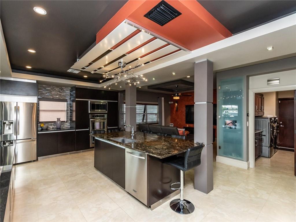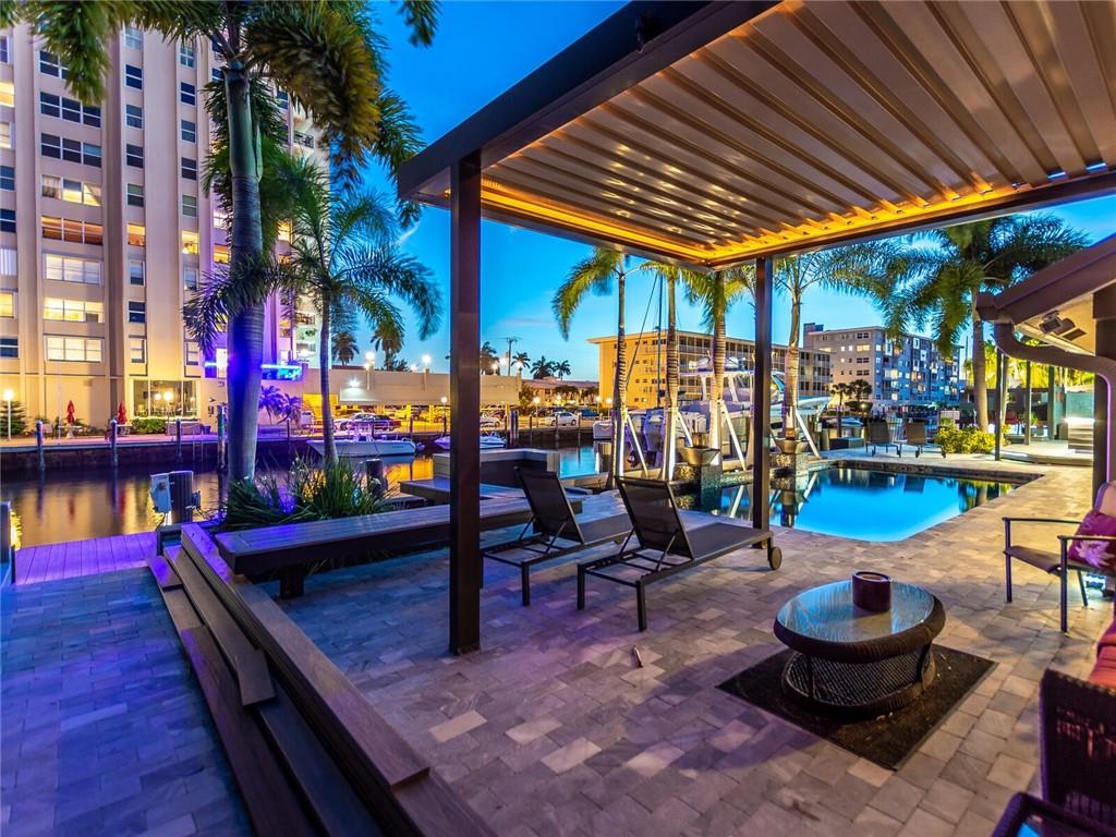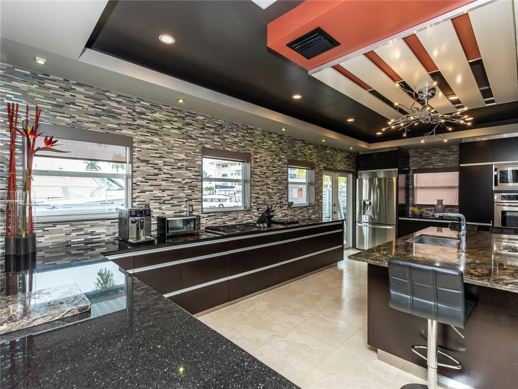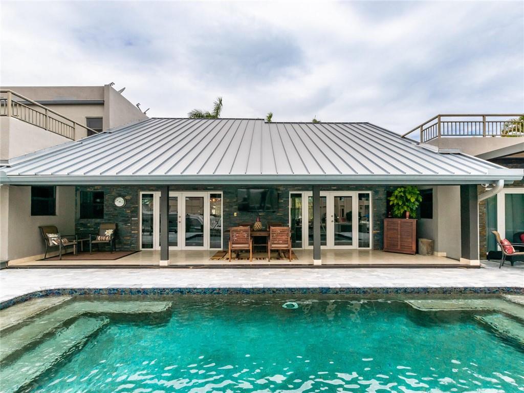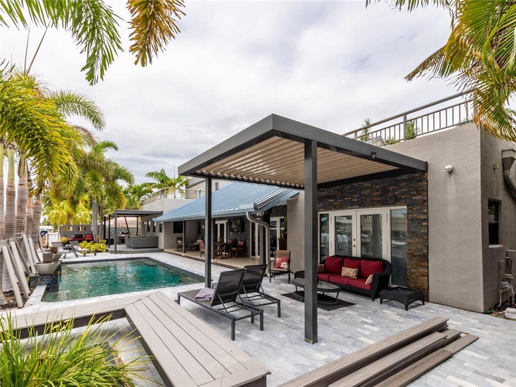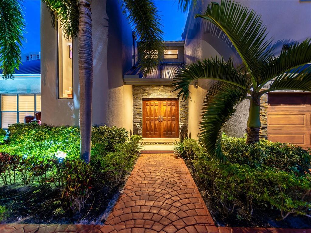Custom EVERYTHING in a West Indies themed architectural beauty. Boater's paradise-100' of deep-water dockage on a wide canal close to a no wake zone of the ICW. NEW seawall/dock completed in 2021. House has impact windows/doors, standby generator, state of the art security and metal roof. Beautiful lighted fountain in circle driveway. Main floor has custom chef's eat-in-kitchen, two separate living areas, entertainer's bar, dining room and huge master bedroom with his/hers closets and WC's. Upstairs has 3 bedrooms each with it's own bath and walk-in closet. Largest bedroom has private balcony overlooking pool and canal. Backyard oasis has saltwater pool with gas heater and fountains. Ambient lighting, surround sound and wet bar for entertaining. Walk to CRCC, beach and local restaurants.