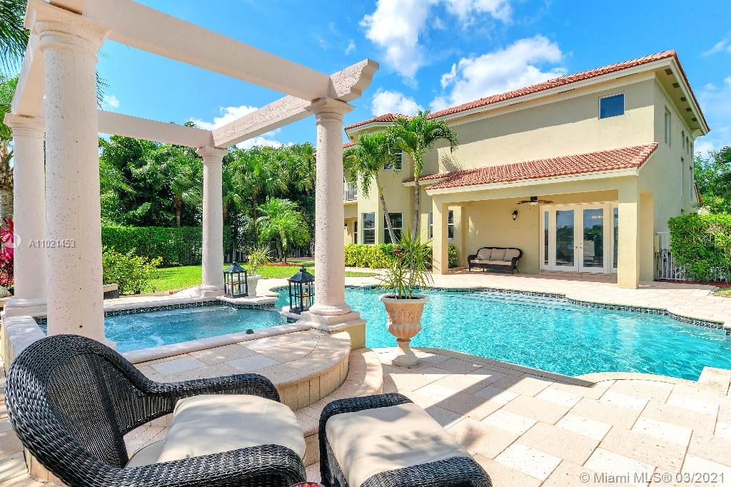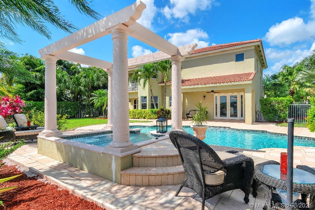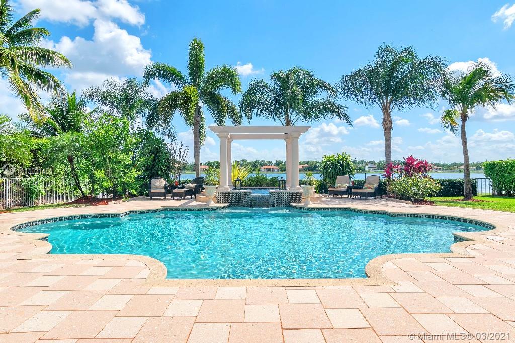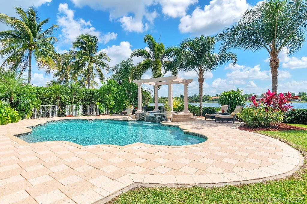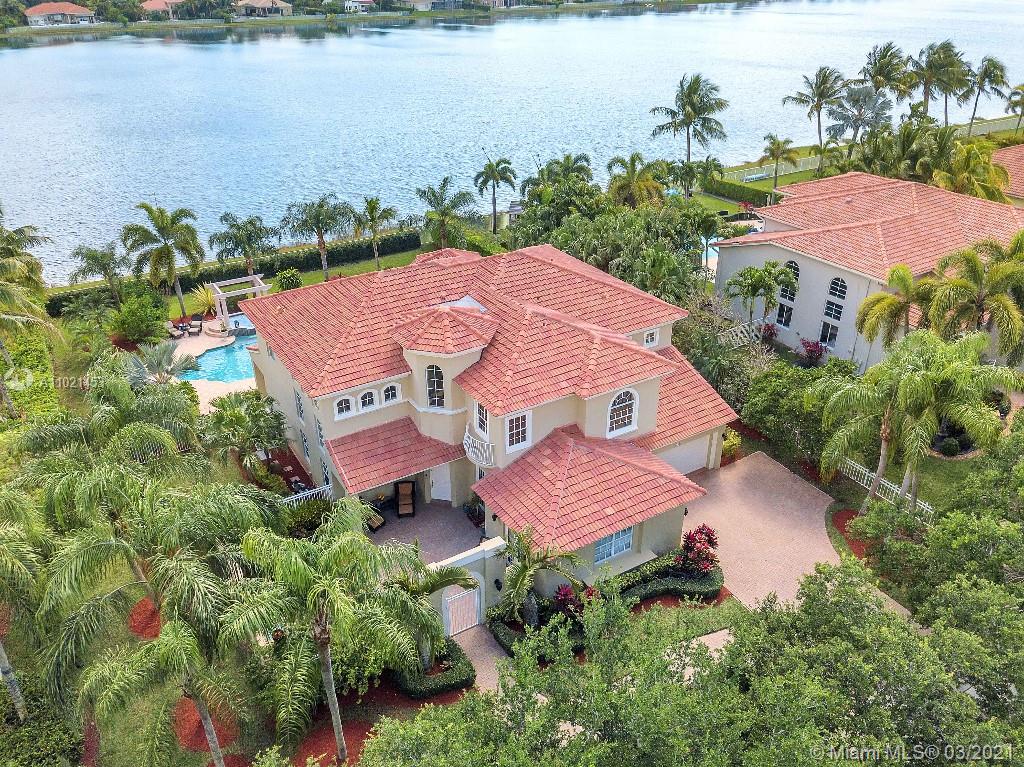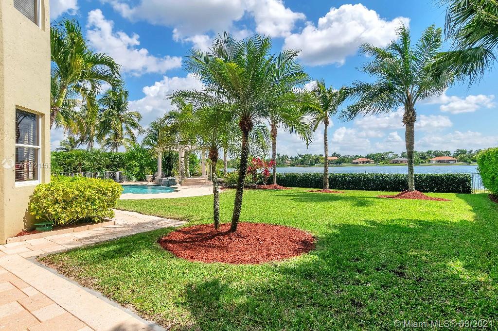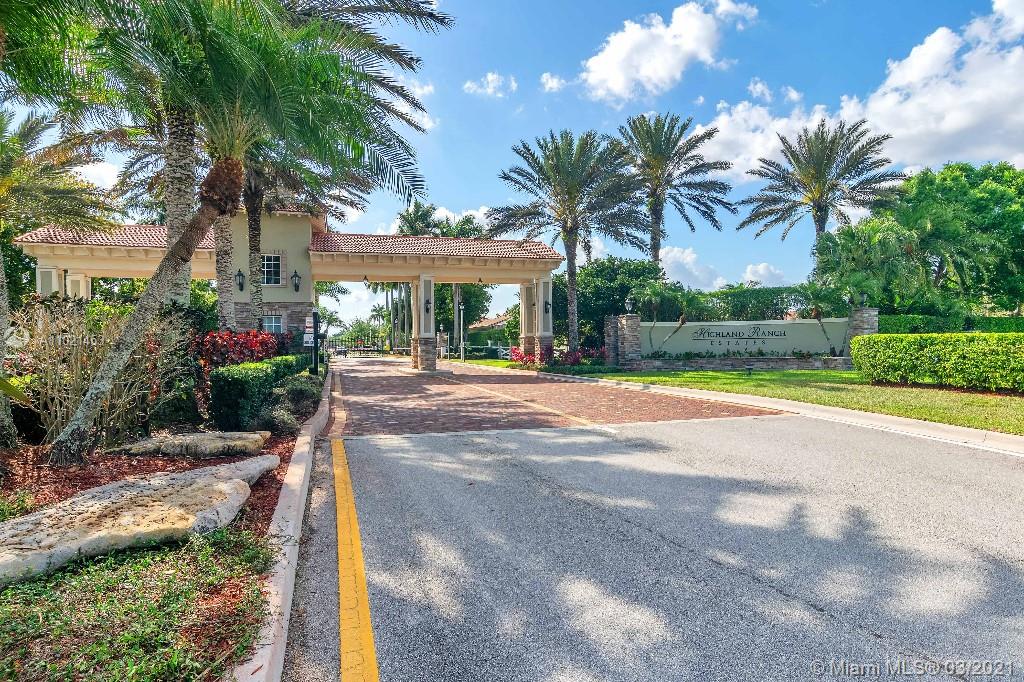 Location, Location, Location. Rare opportunity to own a lakefront home in the gated community of Highland Ranch Estates located in the greater Weston/Davie area. Entrance to the front door is through a gated courtyard with beautiful gardens and a wall fountain. This former model home has numerous upgrades that include marble and wood flooring, soaring cathedral ceilings and crown molding throughout the house. The home includes 4 bedrooms and an office/bedroom with a 3 garage for plenty of storage. The single car garage is a separate air-conditioned space with options to enter through the courtyard or double garage. It’s an ideal space for special storage or a home office. Home includes a large gourmet kitchen with wood cabinets, granite countertops and stainless-steel appliances.