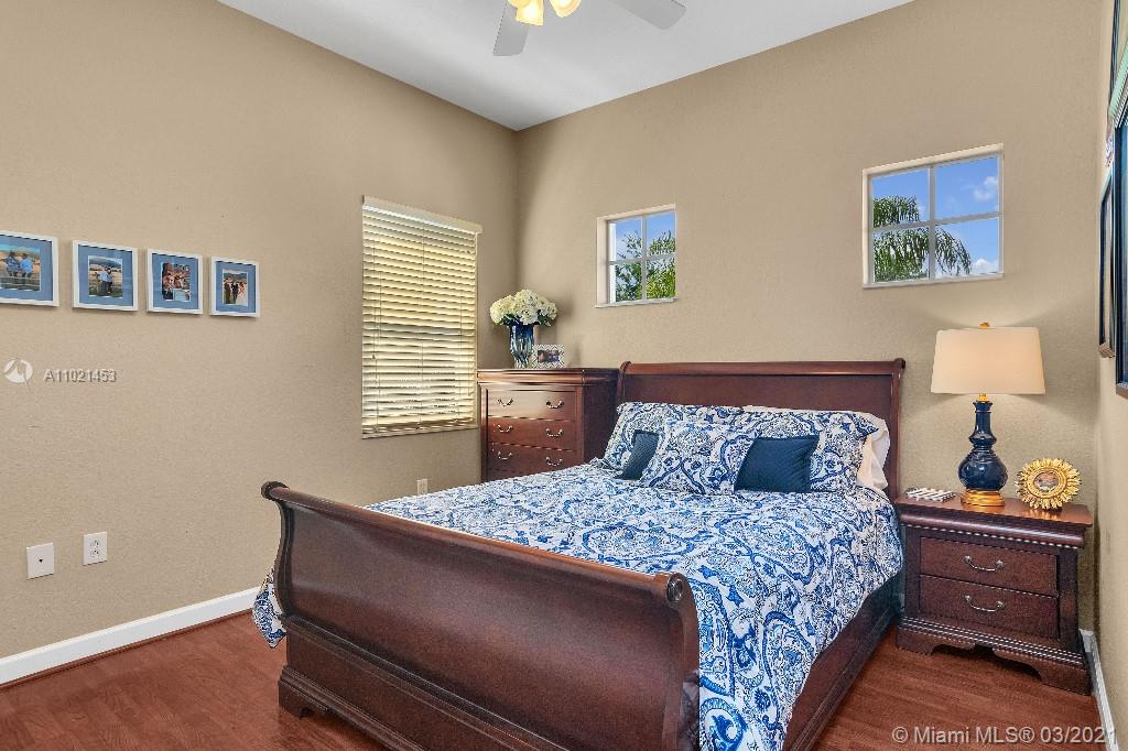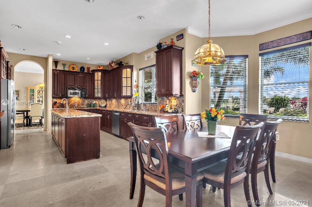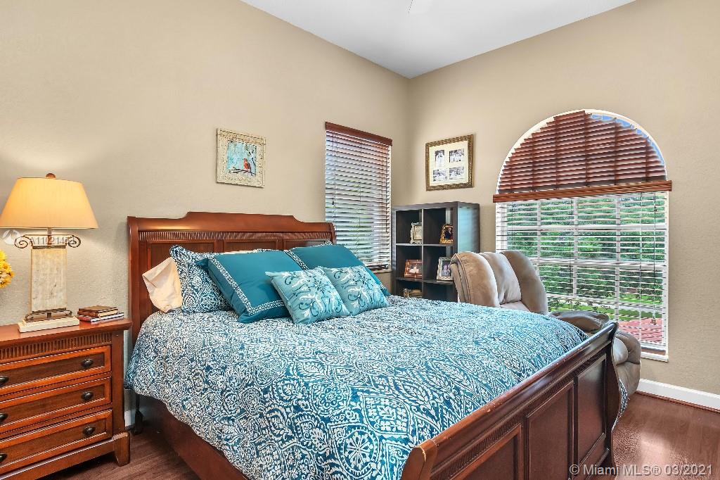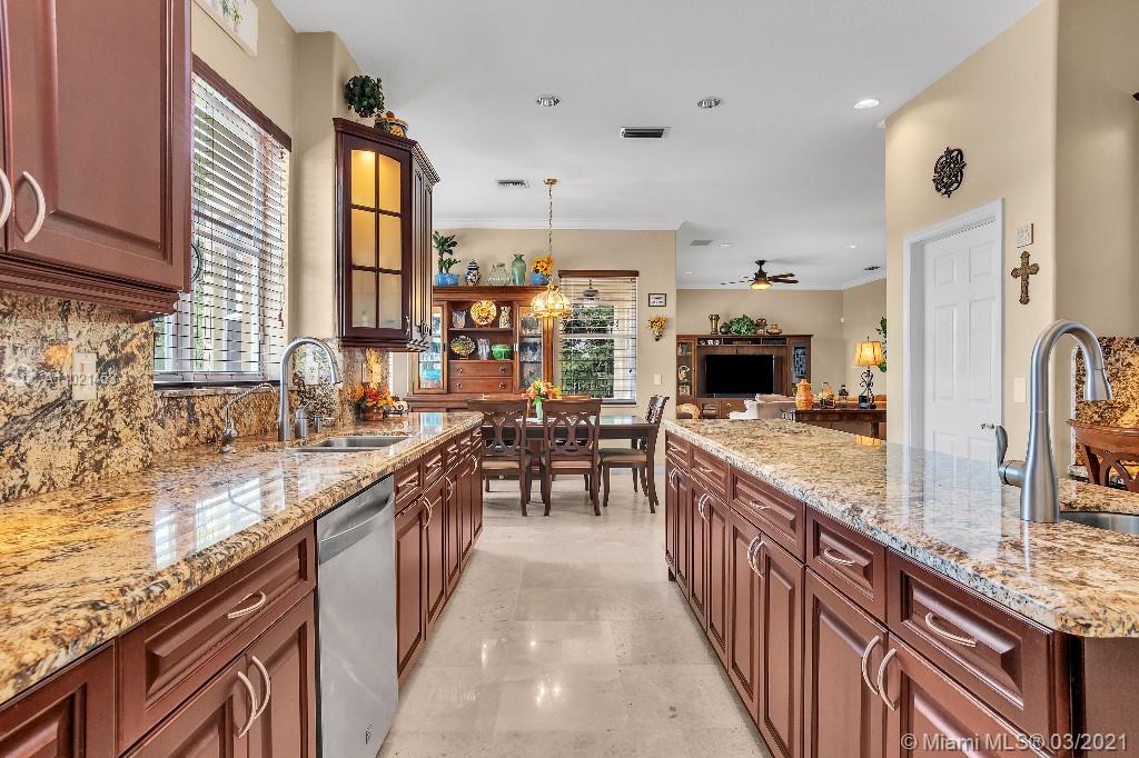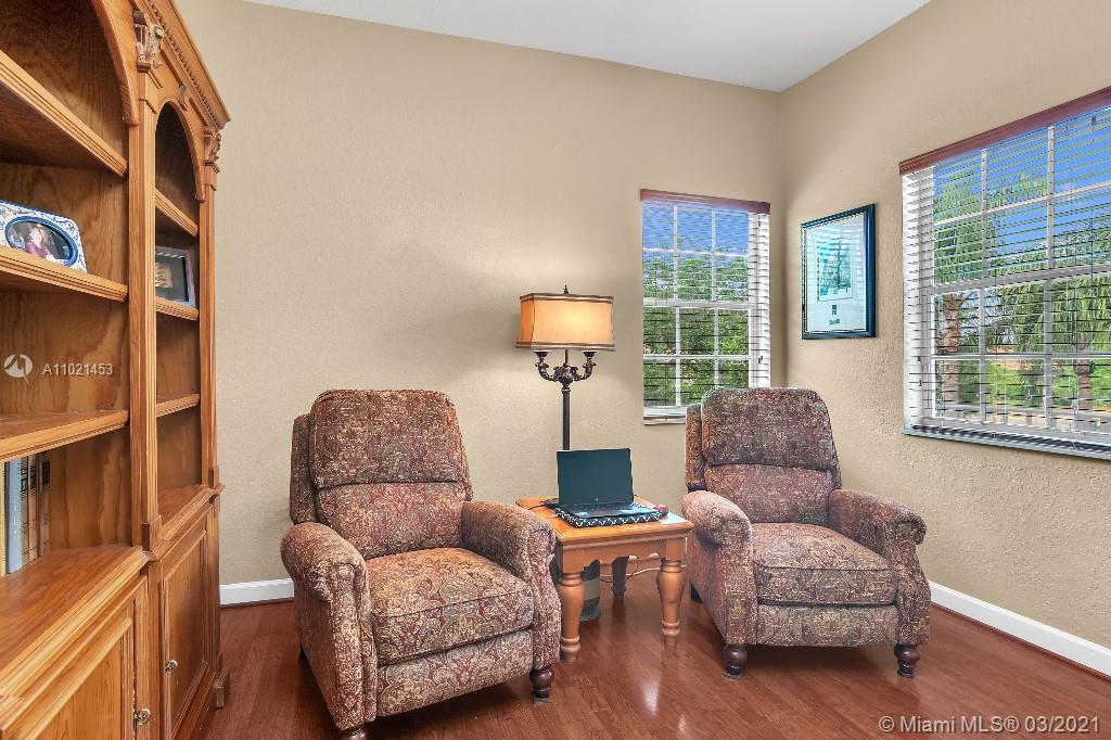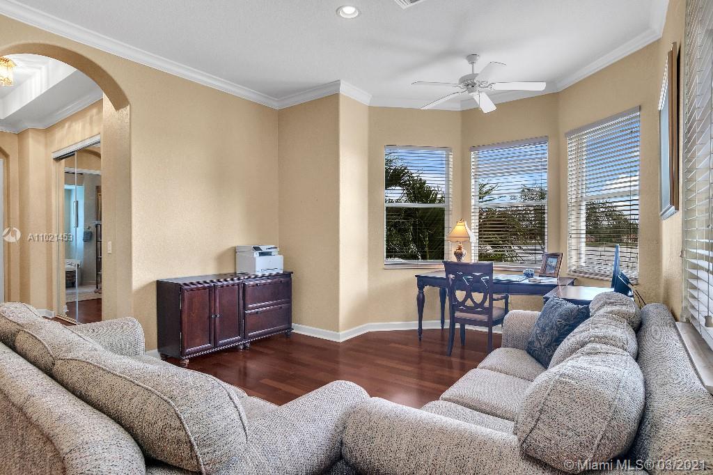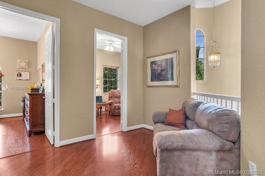 Location, Location, Location. Rare opportunity to own a lakefront home in the gated community of Highland Ranch Estates located in the greater Weston/Davie area. Entrance to the front door is through a gated courtyard with beautiful gardens and a wall fountain. This former model home has numerous upgrades that include marble and wood flooring, soaring cathedral ceilings and crown molding throughout the house. The home includes 4 bedrooms and an office/bedroom with a 3 garage for plenty of storage. The single car garage is a separate air-conditioned space with options to enter through the courtyard or double garage. It’s an ideal space for special storage or a home office. Home includes a large gourmet kitchen with wood cabinets, granite countertops and stainless-steel appliances.