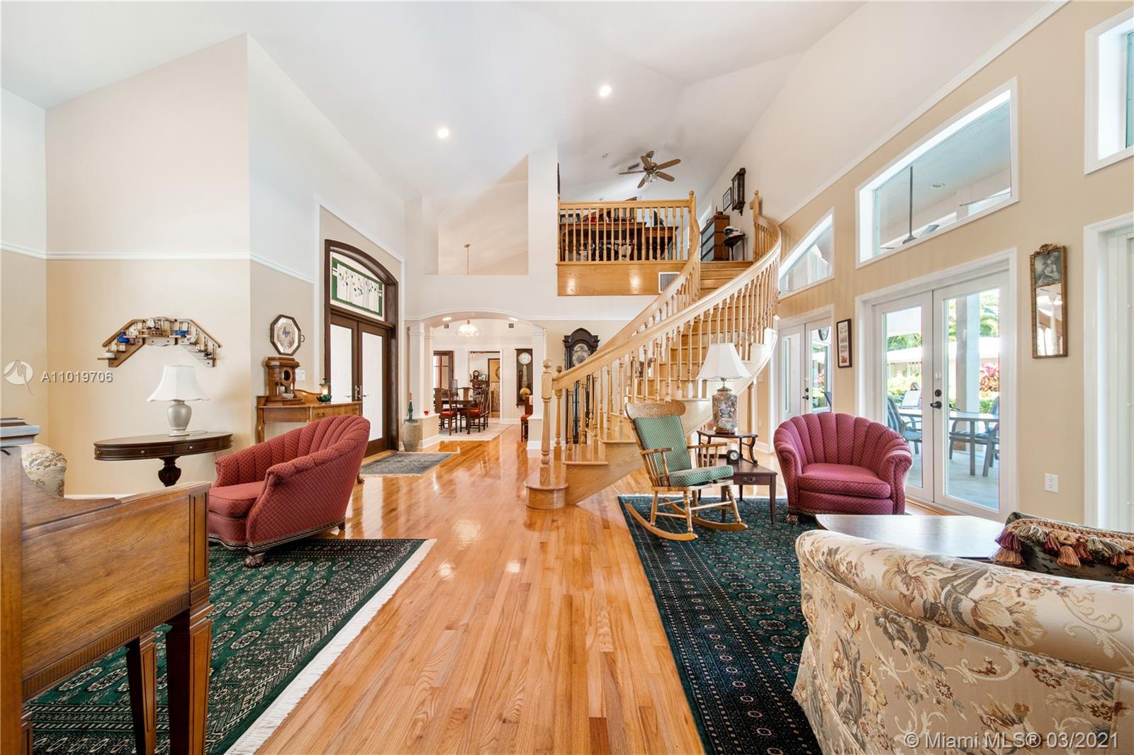 **THE ONLY HOME FOR SALE IN PINECREST WITH A COTTAGE** Come see this wonderful home, just shy of a Builder’s Acre (plus 2car garage) and located away from any main streets. Upon entering this home into its expansive Great Room, you are greeted with a grand staircase that leads to the Master Bedroom upstairs and its enormous seating area, fireplace, wrap-around balcony, and mezzanine office space. On the first floor, enjoy a split floor plan (3+1), formal dining room and beautifully open kitchen that flows into a breakfast area and family room. Lots of natural light and hard wood floors make this home large and cozy at the same time. Step outside into the open yard, pool, jacuzzi, cabana bath, and guest cottage – fully permitted 1/1, full kitchen, living room, fireplace and screened porch.
