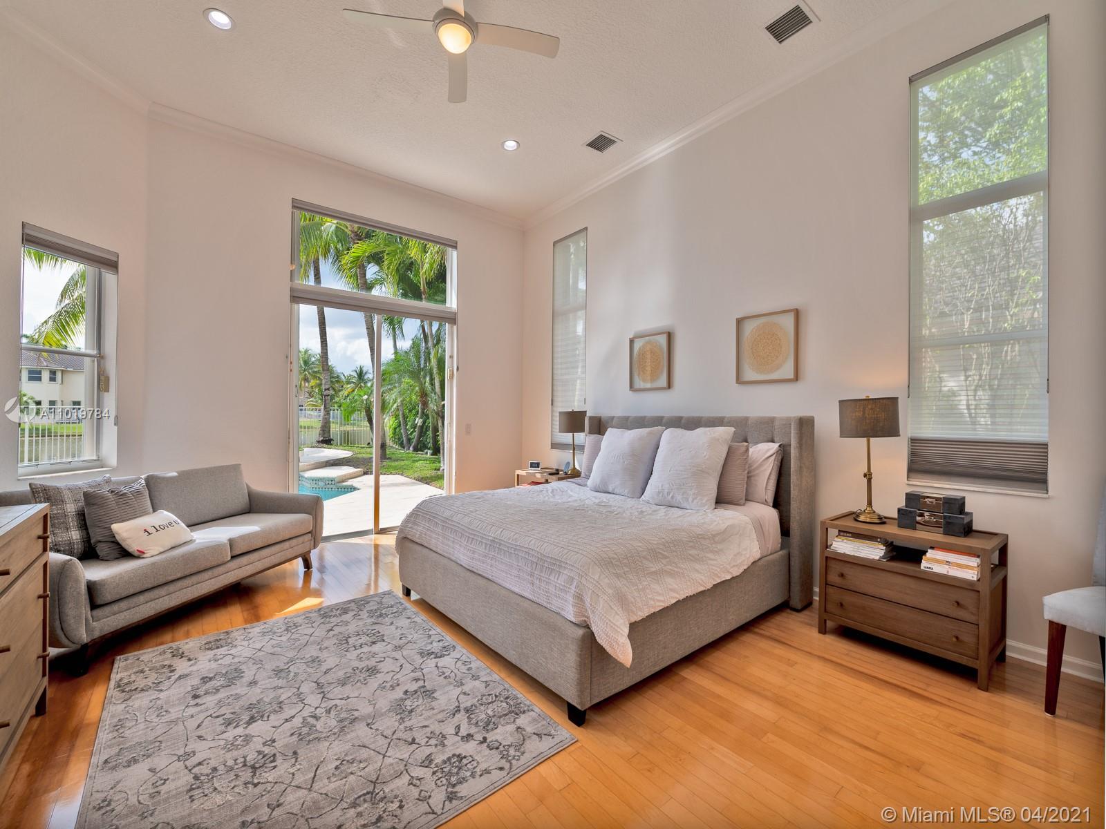 Let me introduce the gorgeous 2 story home in the prestigious gated community of Savanna, Cove 3, with Resort style amenities. This spacious floor plan features 7 Bed/4 Bath. One of the rooms serves as an office. Master bedroom, office and complete bath are downstairs. Recently renovated kitchen and bathrooms with remarkable design . Saturnia marble floors in formal area, wood floors in bedrooms, and porcelain in kitchen. Plenty of storage throughout the house. Great custom closets. Oasis backyard with a spectacular pool and a relaxing, panoramic lake view. Accordion Shutters, Cul-De-Sac, open green space in front. Great Schools!! Ready to move in.