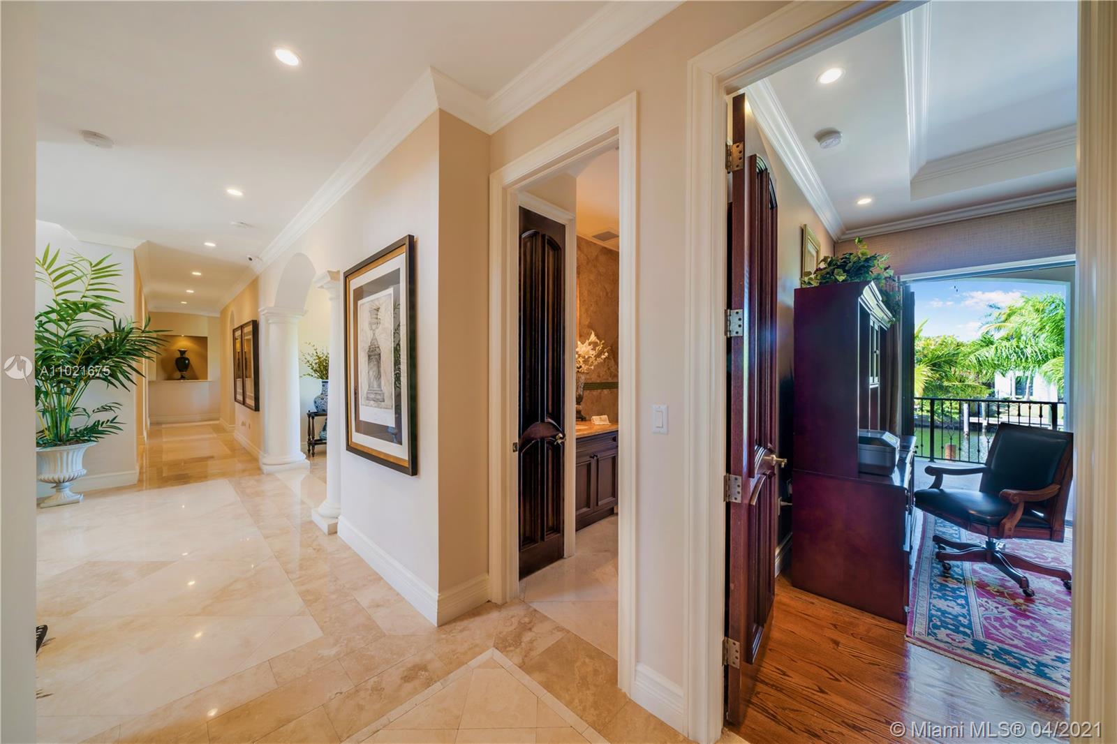 Welcome to Boater's Paradise! This elegant waterfront home in the exclusive "Gables by the Sea" gated community will bring you peace, serenity and wonderful outdoor living space that will feel like a vacation every day. Enjoy a relaxing boating lifestyle with a 75-foot private dock and a boat lift NO bridges just a few minutes sailing to Biscayne Bay. This is an ultimate endless entertainment home with a Pool/Spa, BBQ area and Game/TV rooms surround by a well-manicured landscape yard. The home features the highest quality of marble finishes and hardwood floors, hurricane impact windows and doors and a complete video surveillance system. Spacious floor plans with 5 beds + 6.5 baths and a plenty of storage. Close proximity to best public and private schools, parks, restaurants and malls.