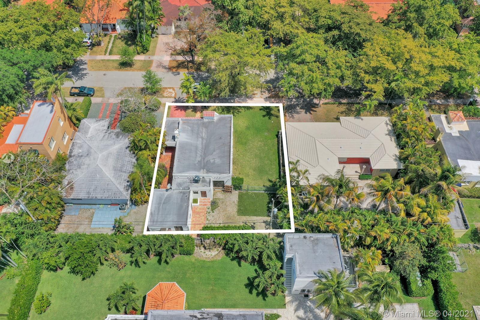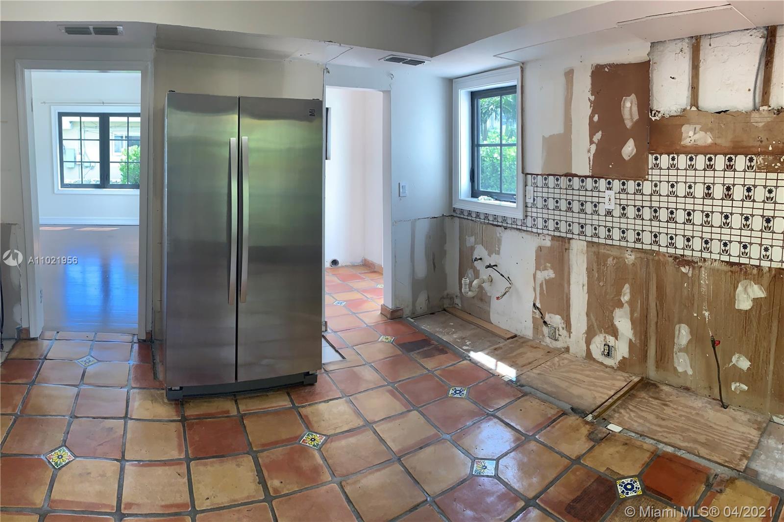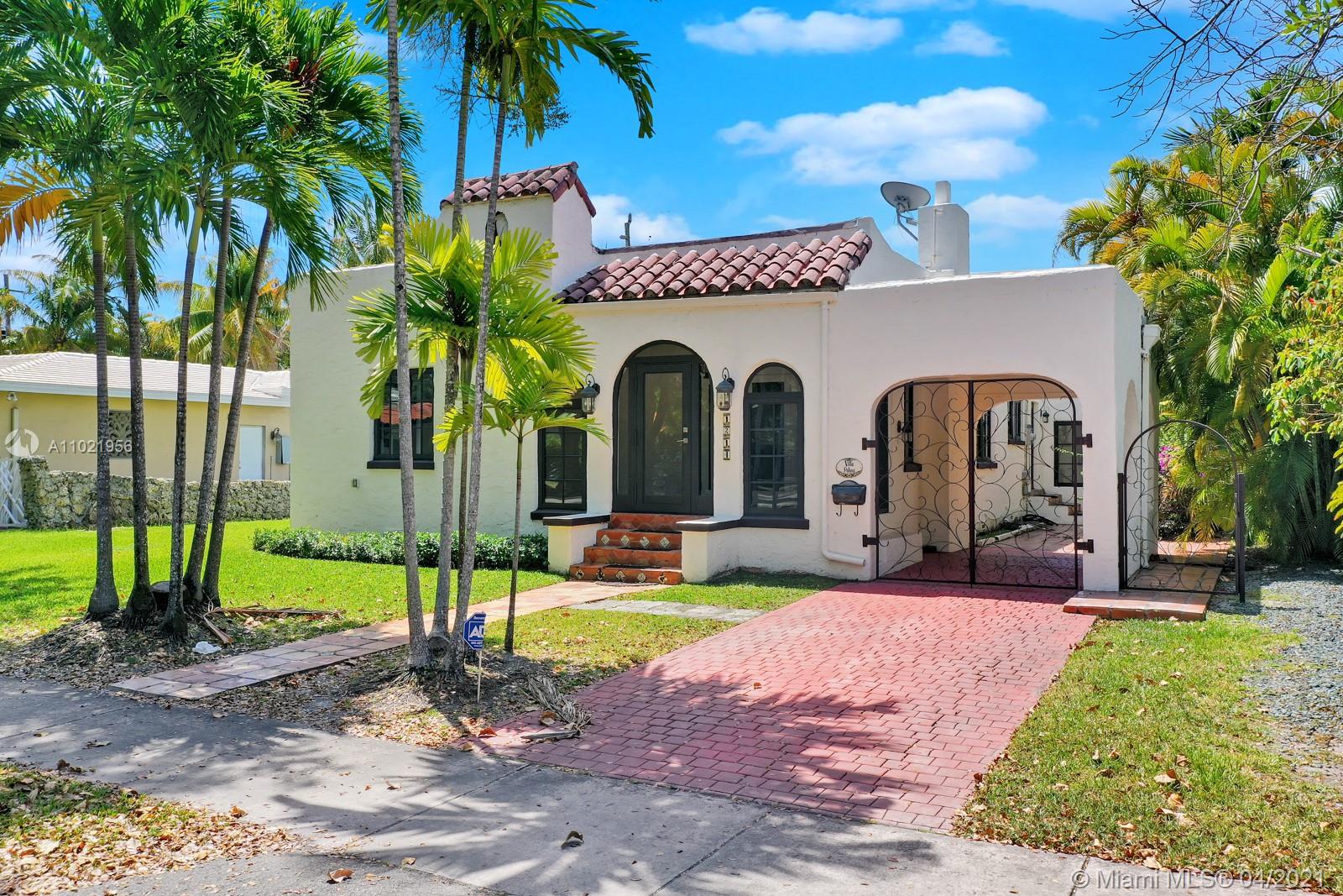 Stunning traditional Coral Gables, Spanish-style home. Consists of a 2-bedroom, 1.5-bath main house with foyer and office space that opens to the back yard; plus, a separate 1-bedroom, 1-bath guest house with kitchen area. Floors are combination of Spanish terracotta with mosaic inserts and wood floors, working fireplace, impact windows Gated carport. New septic system. Large side yards occupies half the lot. New kitchens and laundry room appliances will be needed as old ones have been removed.