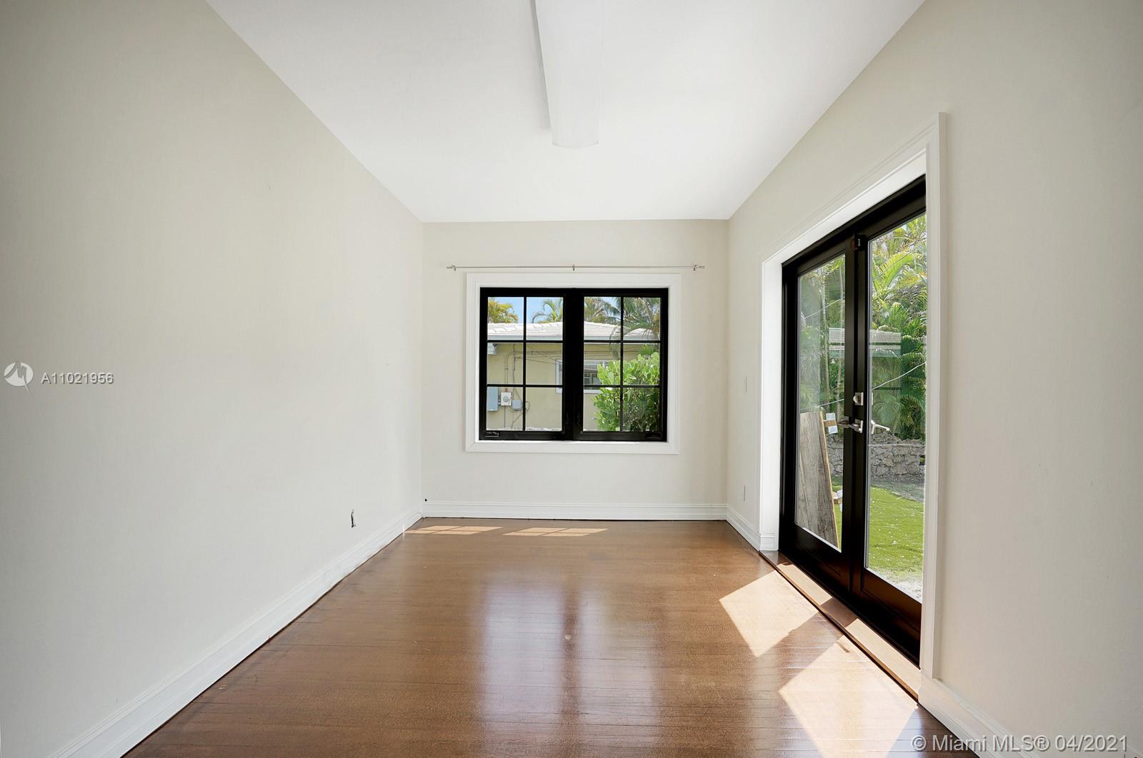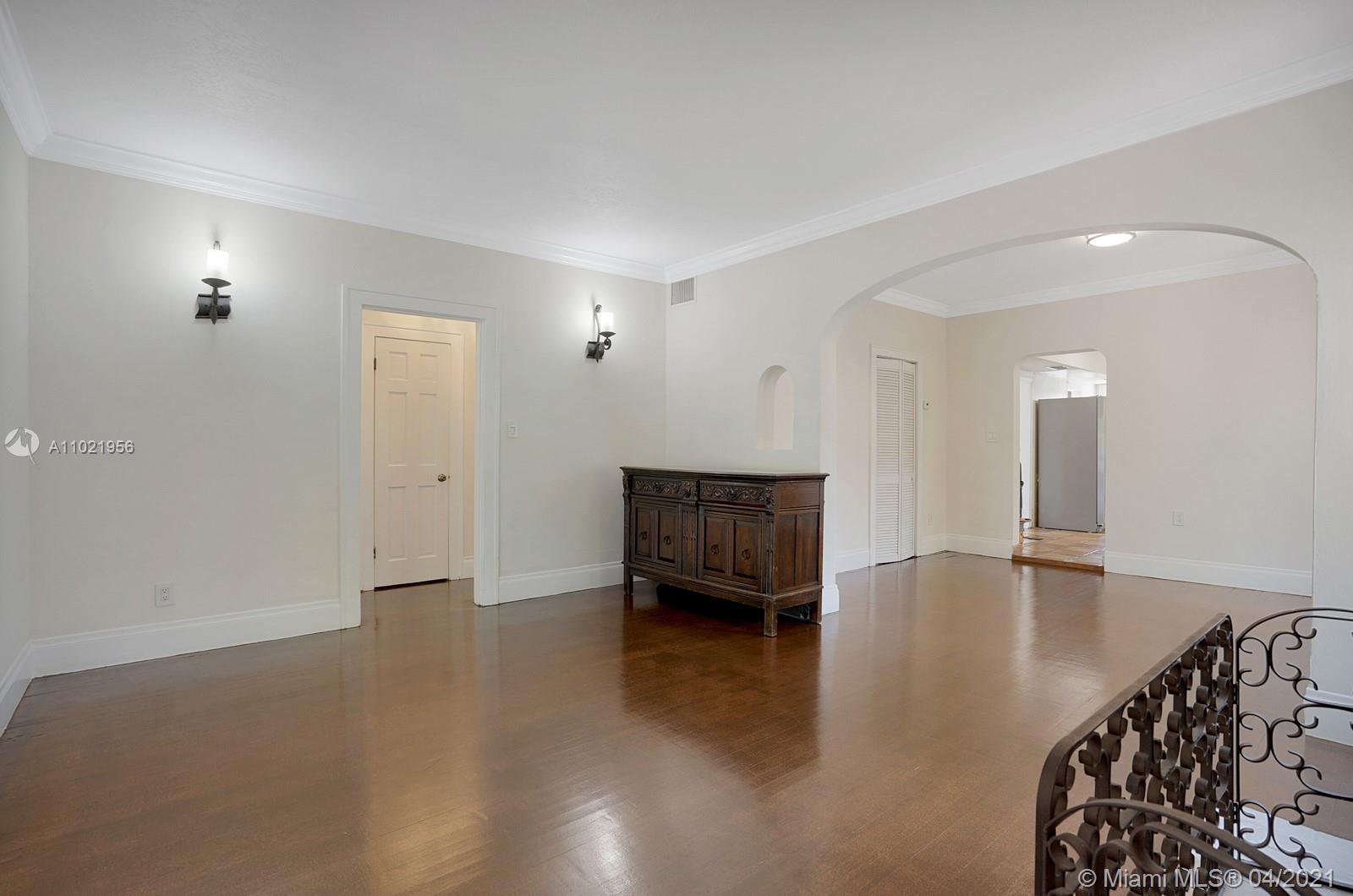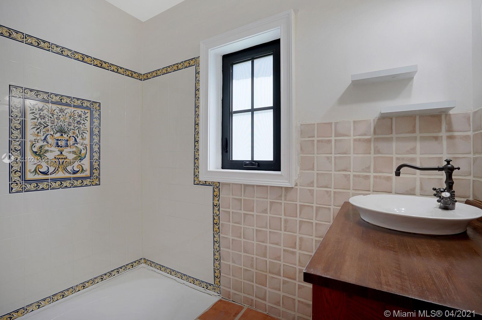 Stunning traditional Coral Gables, Spanish-style home. Consists of a 2-bedroom, 1.5-bath main house with foyer and office space that opens to the back yard; plus, a separate 1-bedroom, 1-bath guest house with kitchen area. Floors are combination of Spanish terracotta with mosaic inserts and wood floors, working fireplace, impact windows Gated carport. New septic system. Large side yards occupies half the lot. New kitchens and laundry room appliances will be needed as old ones have been removed.