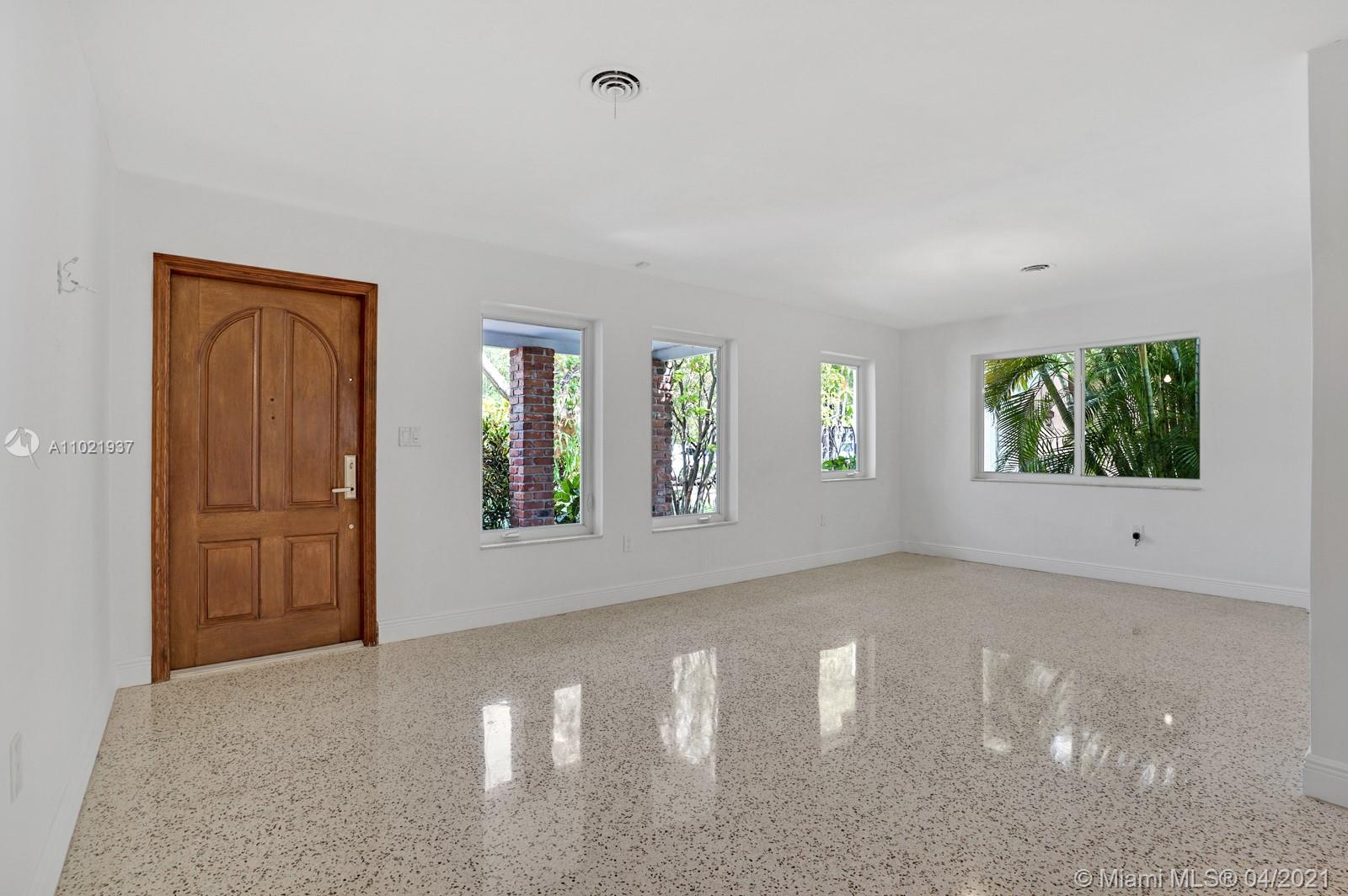 Beautiful one-story 3 bedroom, 2 bath home on quiet tree-canopied street in Coral Gables. Recently polished mint terrazo flooring throughout, updated open kitchen and bathrooms, impact glass windows, doors and AC system. One car-garage with extra overhead storage. Move-in ready condition!