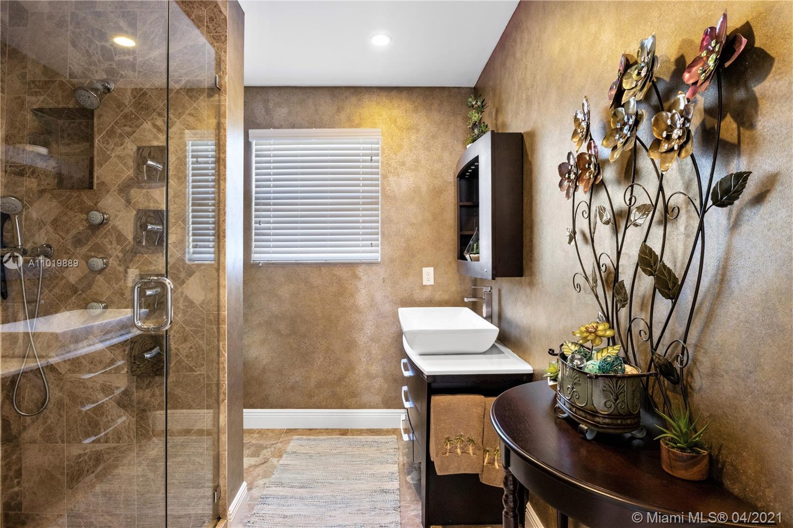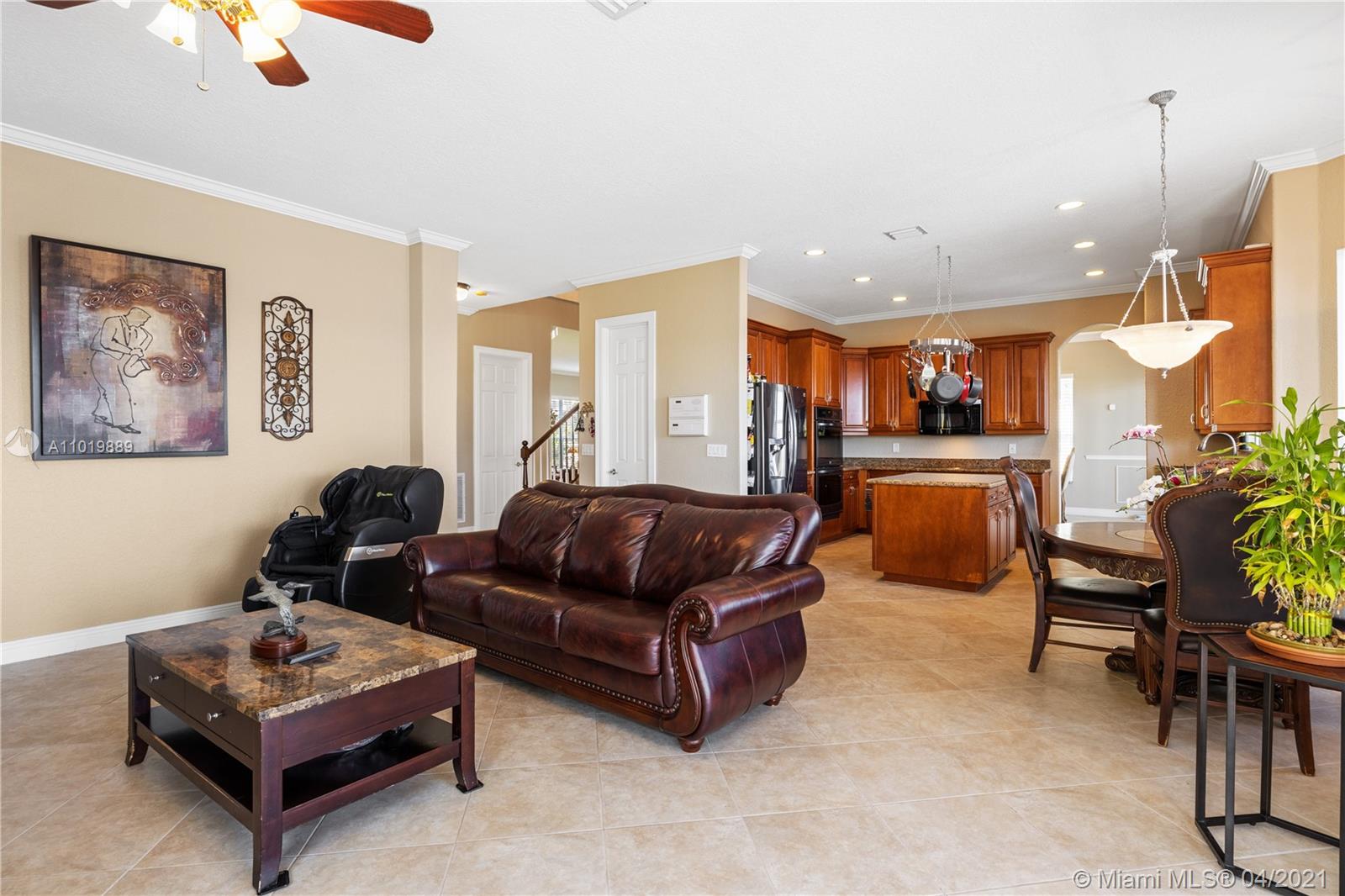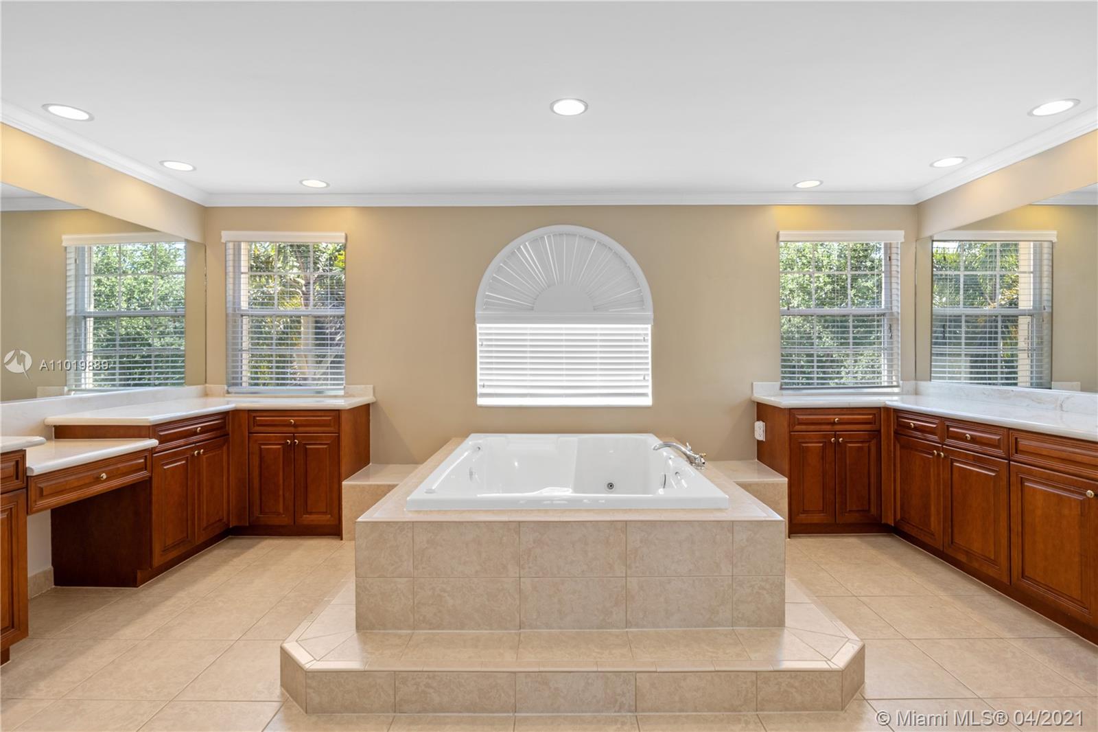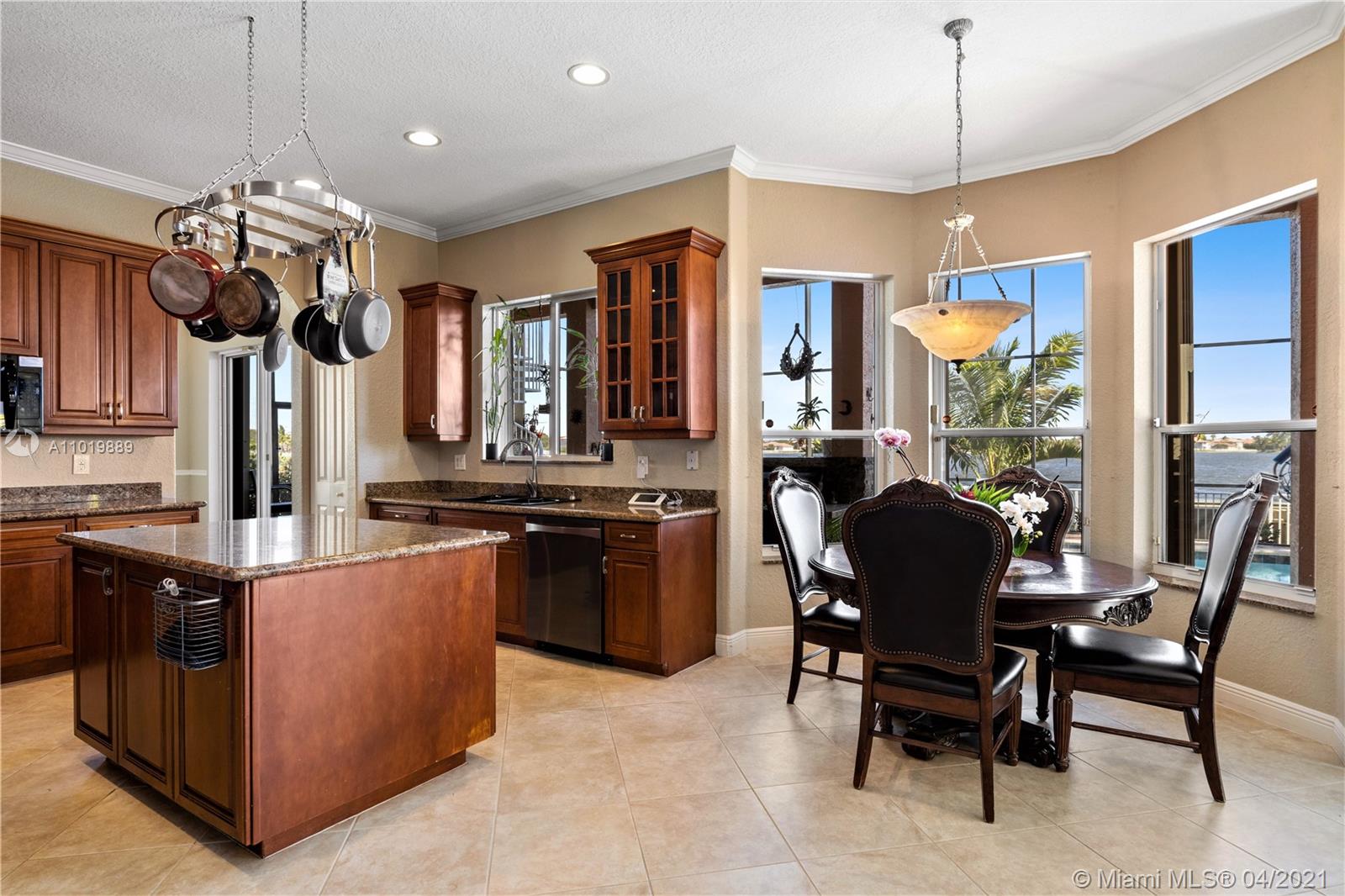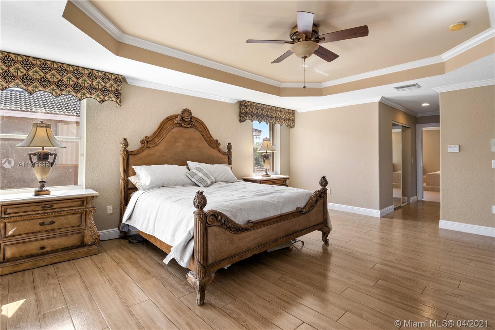 Stunning home with heated pool and panoramic lake view! Guest bedroom with private bathroom downstairs. Large upgraded gourmet kitchen with wood cabinets, center island, newer SS appliances, and granite counter top. 2 large master suites with walk-in closets and access to huge balcony with amazing views. Upgraded bathrooms, high vaulted ceilings, ceramic & porcelain flooring, crown molding, recessed lights, grand staircase, propane generator, laundry room with newer full size washer & dryer, accordion shutters. Relaxing backyard with breathtaking lake view, pool/Jacuzzi (pool has newer Diamond Brite refinish) and summer kitchen; perfect for entertaining! Garage flooring with newer Epoxy flooring coating and storage cabinets. Resort style club house with lots of amenities. Must see!