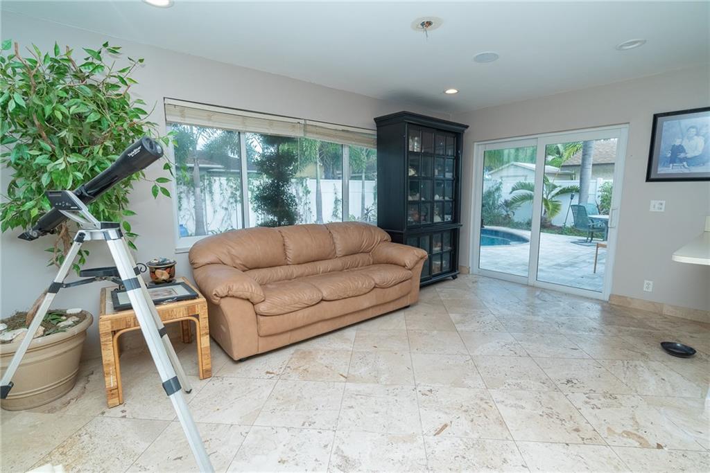 Great Floor Plan with plenty of room to grow in this lovely 4 bedroom home. Impact Windows, Marble Flooring throughout, updated Electrical, Updated AC System 4-5 years old). Fenced back yard with beautiful saltwater pool and outdoor space. The garage has been turned into a bit of a "man cave" but door still opens and can be put back to a garage easily, (also has a mini split system) Separate Laundry Room with additional storage. Ceilings have been finished, (no popcorn!) Recessed Lighting, California Closets in Master. Some updating needed in the kitchen but that is it. MUST WEAR A MASK TO ENTER HOME.