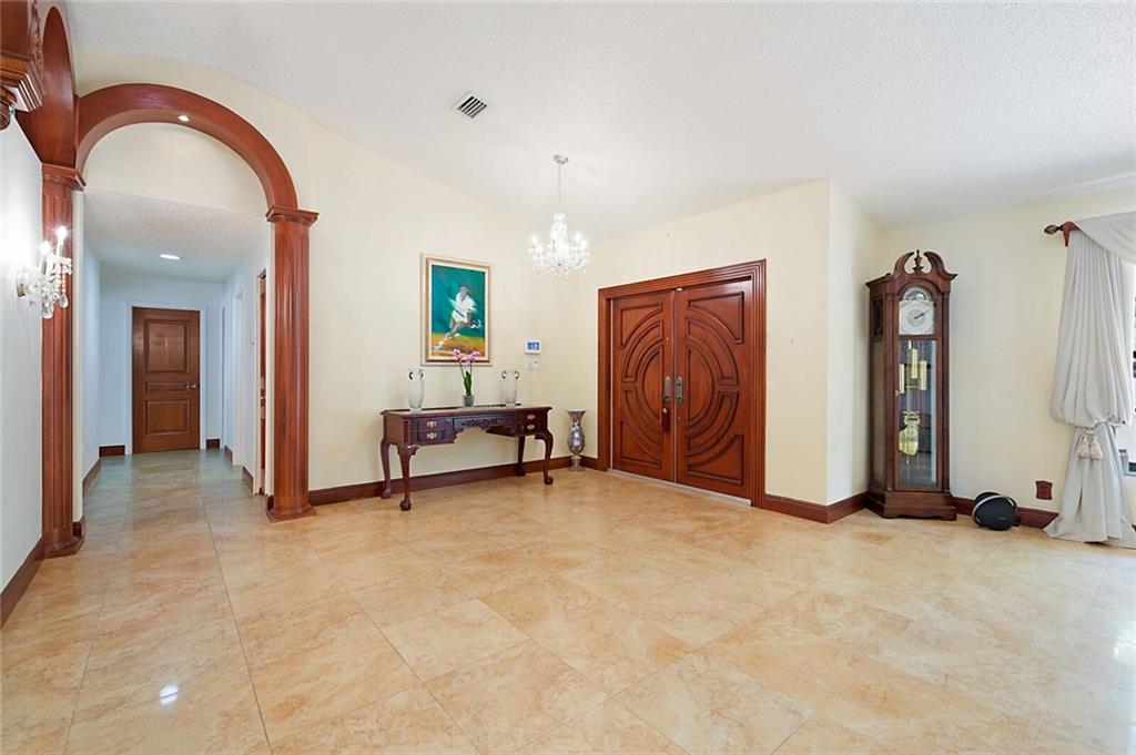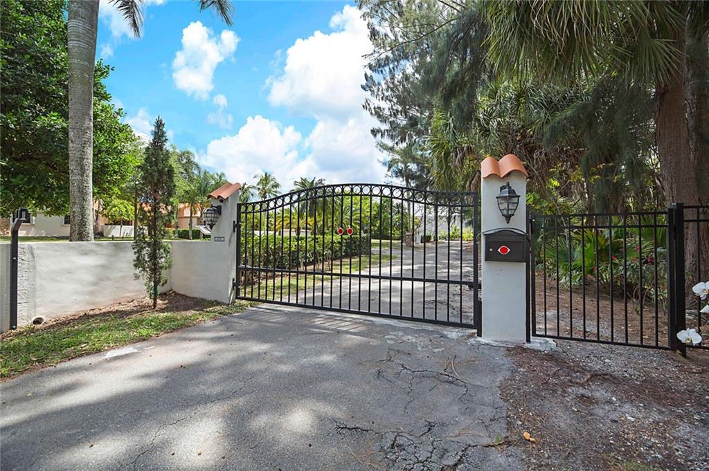 Rare opportunity. Elegant 5/3 Ranch pool & tennis home w/ almost 2 acres in the heart of Miramar. If privacy, nature & seclusion is your thing then this is it. Private gated entry (corner lot). The moment you enter this secluded property w/ electronic swing-gated drive gives you the feel of peaceful living. Resort style pool, hot tub, large deck & full hard-court tennis for your maximum enjoyment & entertaining. Inside features marble flooring w/ elegant woodwork finishes throughout & dual AC systems. A dream gourmet kitchen for discerning home cooks with professional Viking & Miele appliances & large stainless-steel hood. Large granite extend counter tops, modern lighting & plenty space to entertain w/ amazing pool & nature views. Split plan. Closet system. Impeccably maintained
