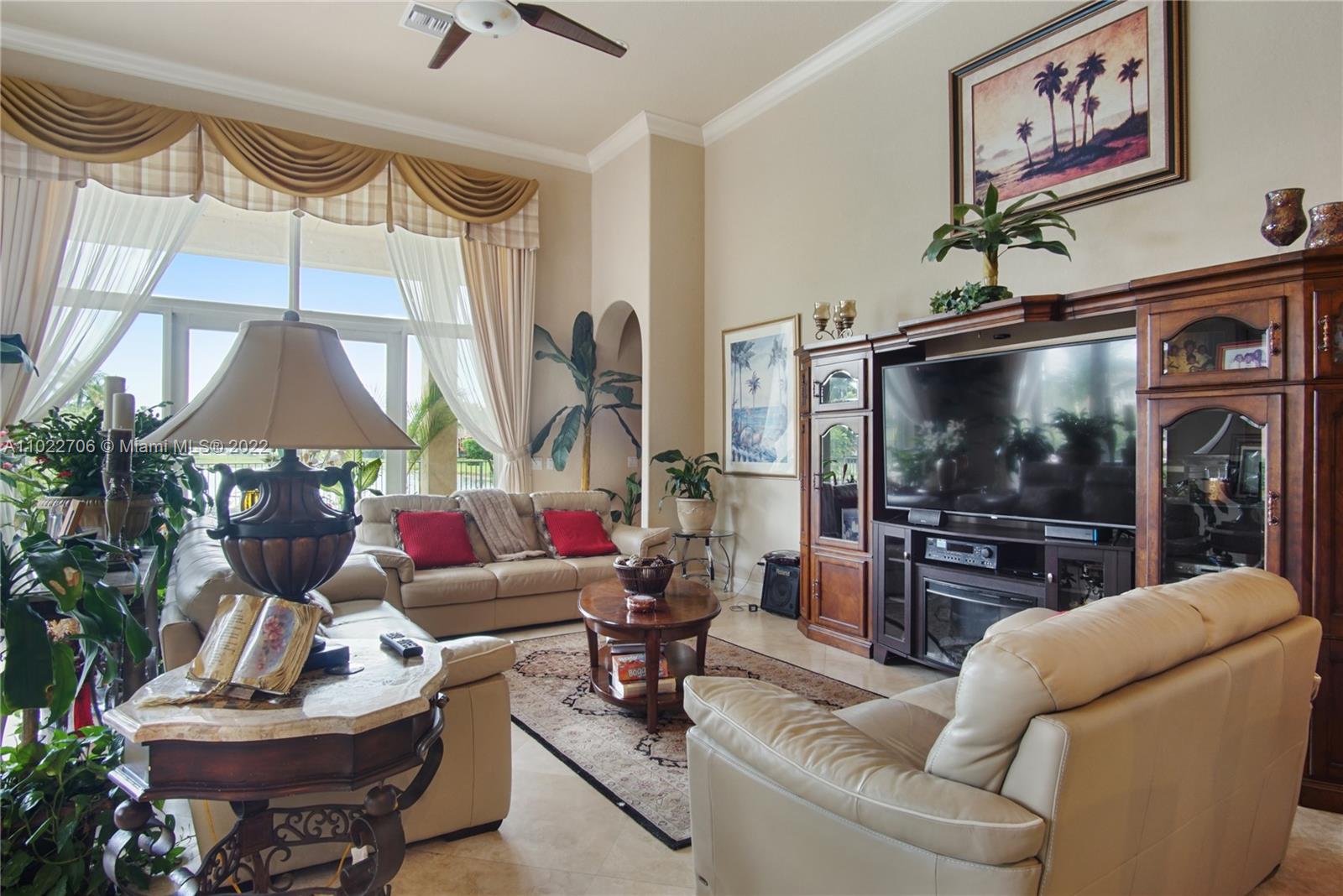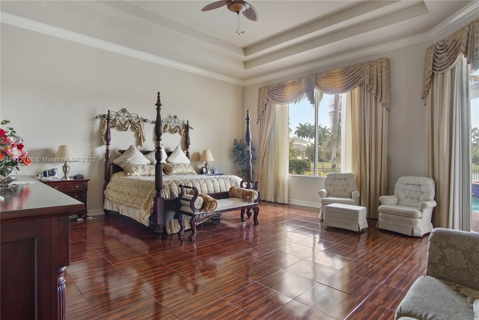 Gorgeous home in the Exclusive Stonebrook Estates. This unique and elegant single-story home has approximately 6,000 sf of livable space plus a 3 car garage and covered patio. The lovely Grand entrance with scenic natural light offers expansive views of the pool and lake through the large custom windows. This estate home features a very functional split floor plan with 5 beds, 5.5 baths, a master suite, and an office/ library. The resort-style view of the pool and lake is a delight to wake up to. The lush landscaping boasts tropical fruit trees along with the beautiful summer kitchen that sets the ambiance for great outdoor entertainment. Gated community with a clubhouse, fitness center, media/party room as well as basketball, volleyball, and tennis courts.
