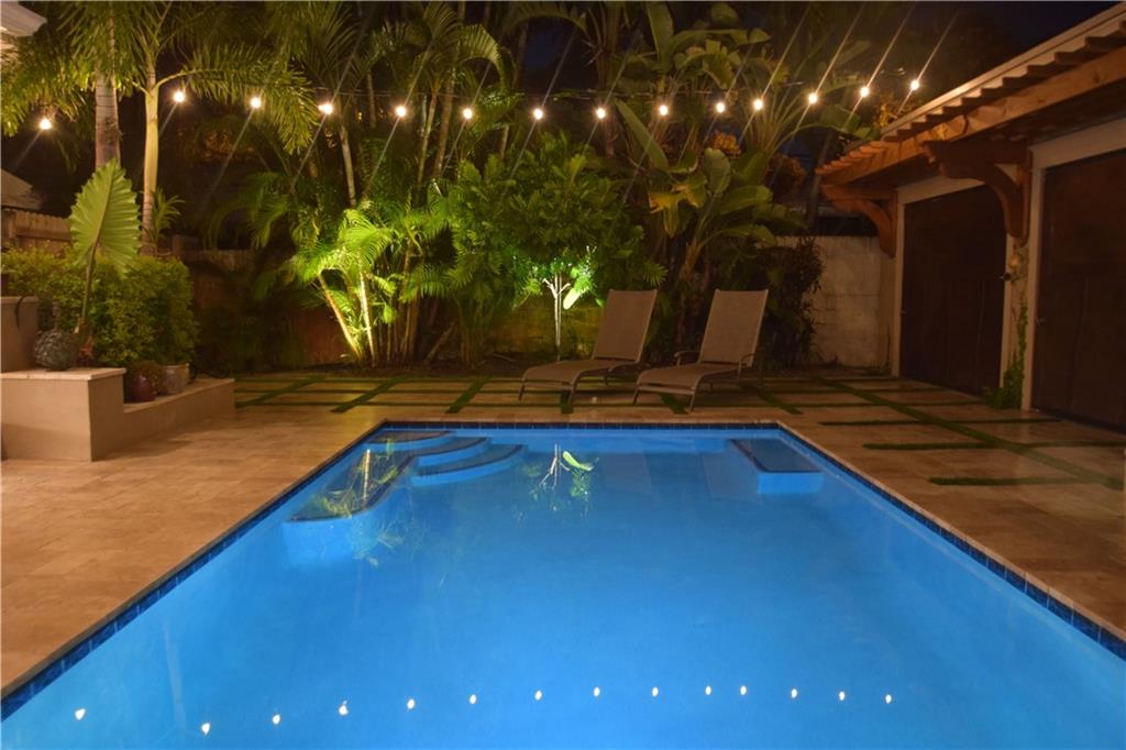 HOUSE MUST SELL, ALL RESONALBLE OFFERES WILL BE CONSIDERED! Come fall in love w/ this charming gem located on a quiet street. Completely remodeled w/ hurricane windows & doors, real wood floors . Spacious kitchen w/granite counters & stainless steel appliances, and YES A GAS STOVE. Bright & open w/ expansive master bedroom & 2 walk- in closets leading to newer luxury bathroom to die for. Large guest bedroom with remodeled bathroom. Back yard is a secluded oasis & custom brand new 20 x 10 pool, travertine tile surrounded by mature landscaping for relaxing heaven. Converted 624 sf garage is a car/motorcycle enthusiast's or collectors dream. Can easily be converted to a studio apt (has power and plumbing).