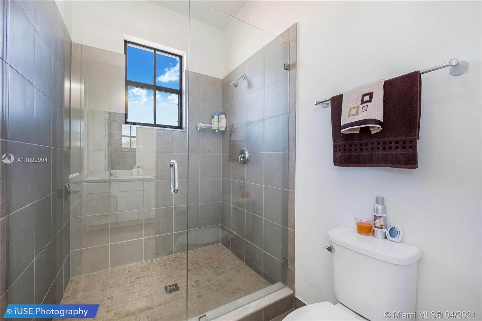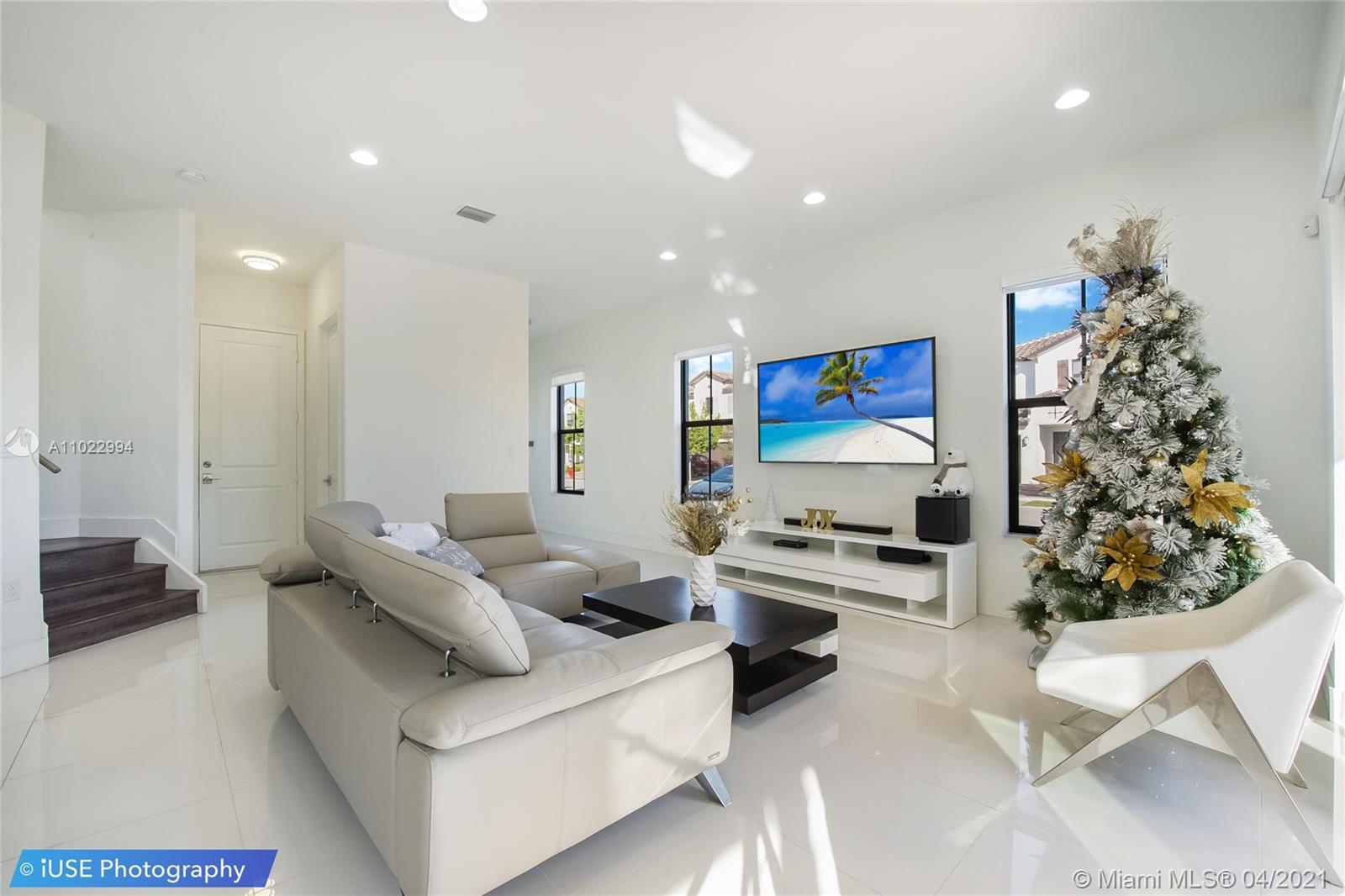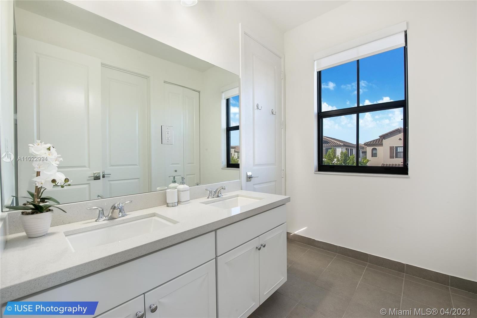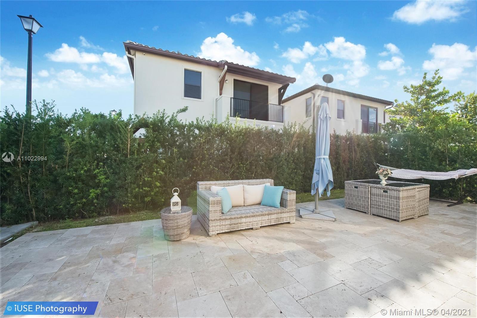 Find your dream home in beautiful gated family friendly community. Walking trails, bike paths, and an expansive Grand Clubhouse with great amenities. This house is meticulously kept and feels like a new is totally redesigned with the elegant and modern open concept. Beautiful ceramic floor downstairs, open concept large kitchen with island, white cabinet, top of the line stainless steel appliances, quartz counter top. Plenty of lights and elegant 10'1 ceiling on the first floor. New wood floor on stairs with glass railing. Spacious bedrooms with double sinks in master bathroom and jacuzzi. All impact windows and doors and outdoor travertine in the complete patio. Must see this beautiful house.