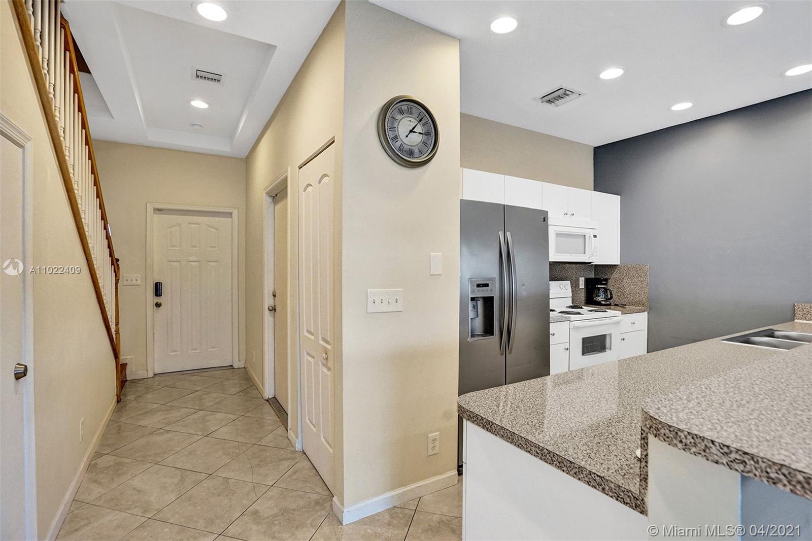 Spectacular well kept 3 bedroom 2.5 bath Townhome centrally located in Hollywood close to Young Circle and the beaches. Ceramic floors in the downstairs living area wood floors upstairs in bedrooms. Home features cozy private outdoor patio, large master bedroom w walk-in closets, 2nd & 3rd bedroom shares jack & Jill bathroom. AC unit replaced in 2019 property comes with 1 car garage + 3 designated parking spaces. Small 8 unit condo association great rental income can be used for Airbnb short term rental. Home features a laundry room with washer and dryer. Easy to show