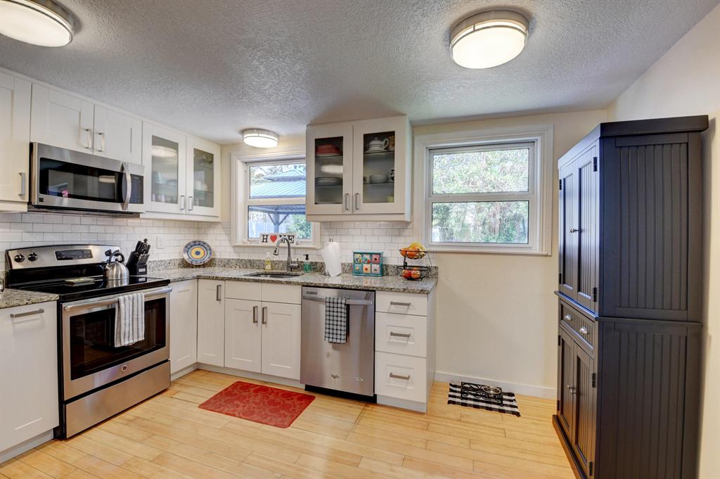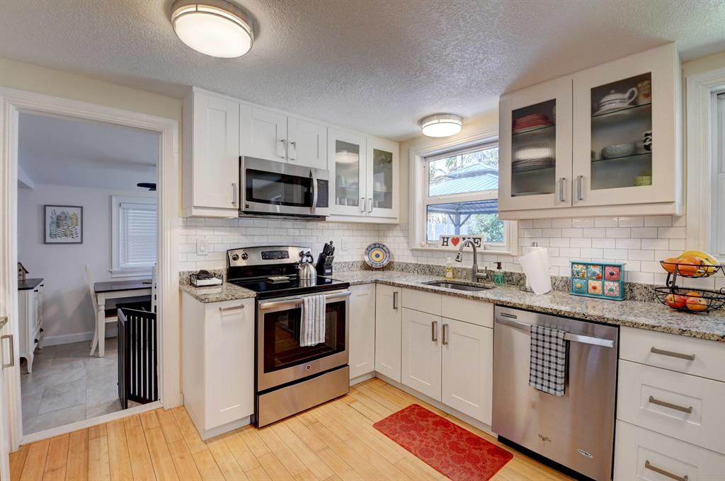 Charming home in East Delray. This 2 bedroom, 2 bath home has been completely renovated including new kitchen with granite counters, stainless appliances, white shaker cabinets with glass inserts on upper doors and subway tile backsplash. Other features include impact windows throughout most of home, metal roof, newer A/C, parking for a boat or RV, all new light fixtures, new ceiling fans in master bedroom and dining room, washer and dryer included. Extra large backyard with room for a pool includes a new gazebo, extended stone patio and hurricane-rated shed! This home is move-in ready and minutes to Downtown Delray and beaches! Non-HOA neighborhood.