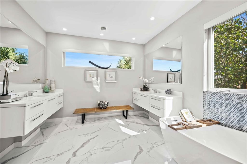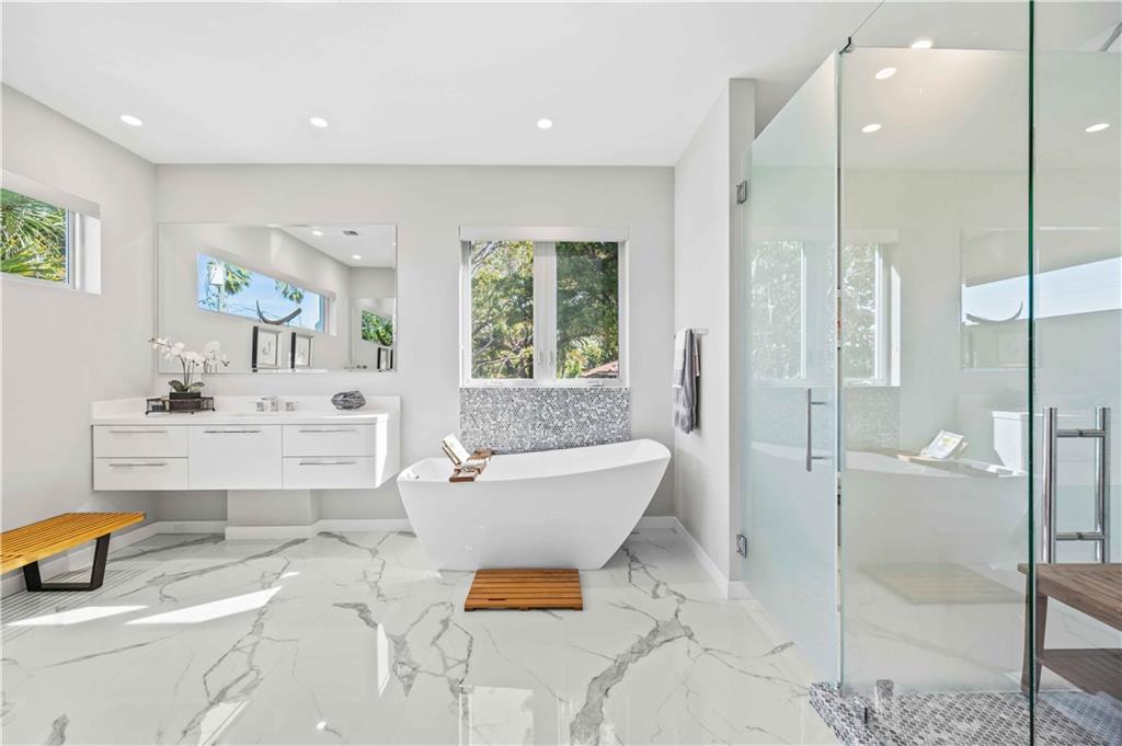 Modern masterpiece on one of Victoria Park's most desirable & prestigious streets! Offering an abundance of magazine-quality designer upgrades, this 4BR home flows seamlessly from its foyer entry & ground floor guest suite to the bright & open living area featuring a spacious great room, separate dining area and a stunning entertainer’s kitchen complete w/Bauformat German cabinetry, quartz counters & premium appliances, including a 5-burner Bosch gas range! Upstairs, behind dramatic 8ft double doors, awaits a spacious primary suite w/ double WICs & a luxurious marble bath w/soaking tub & temperature controlled shower. Outside a covered lanai & summer kitchen overlook a heated saltwater pool w/waterfall & spa. With smart home automation & EV-ready 2CG this home truly has it all!