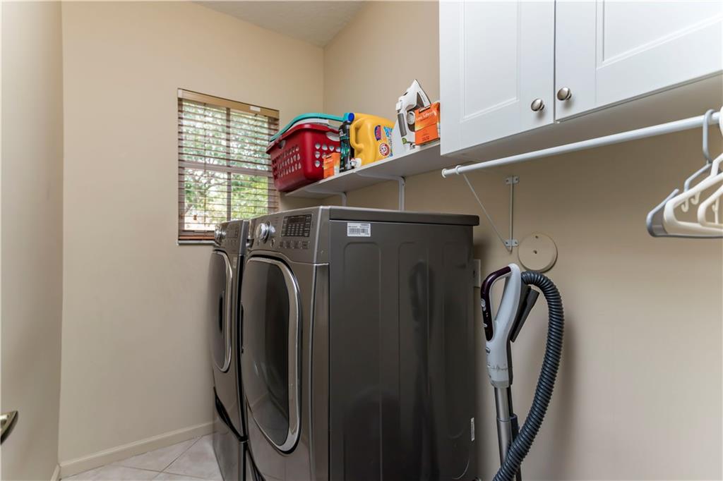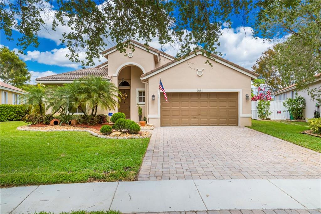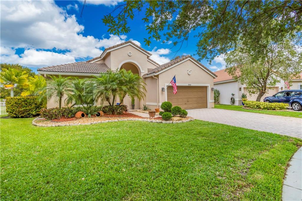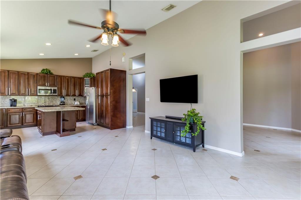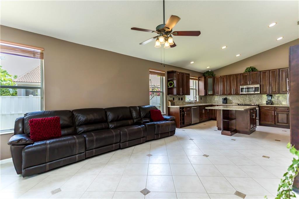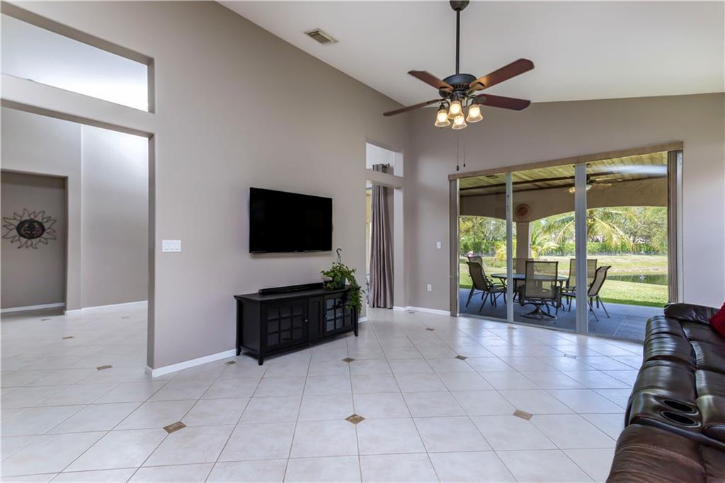 Enjoy this HUGE one of kind yard, large enough for you to host all your family and friends. This oversized lot gives you plenty of privacy with no neighbors behind and beautiful lake views. Plenty of room for a large pool. A custom covered sitting area was added giving you the perfect place to enjoy the backyard. The kitchen was completely remodeled with gorgeous, rich wood cabinetry with soft close drawers and doors. All stainless steel appliances, beautiful granite countertops and backsplash, large center island with sitting area. 2 bathrooms have been completely remodeled with new tile and fixtures. Home is protected by accordion shutters and a security system with numerous cameras throughout the property. AC was replaced in 2013, water heater replaced 2015.
