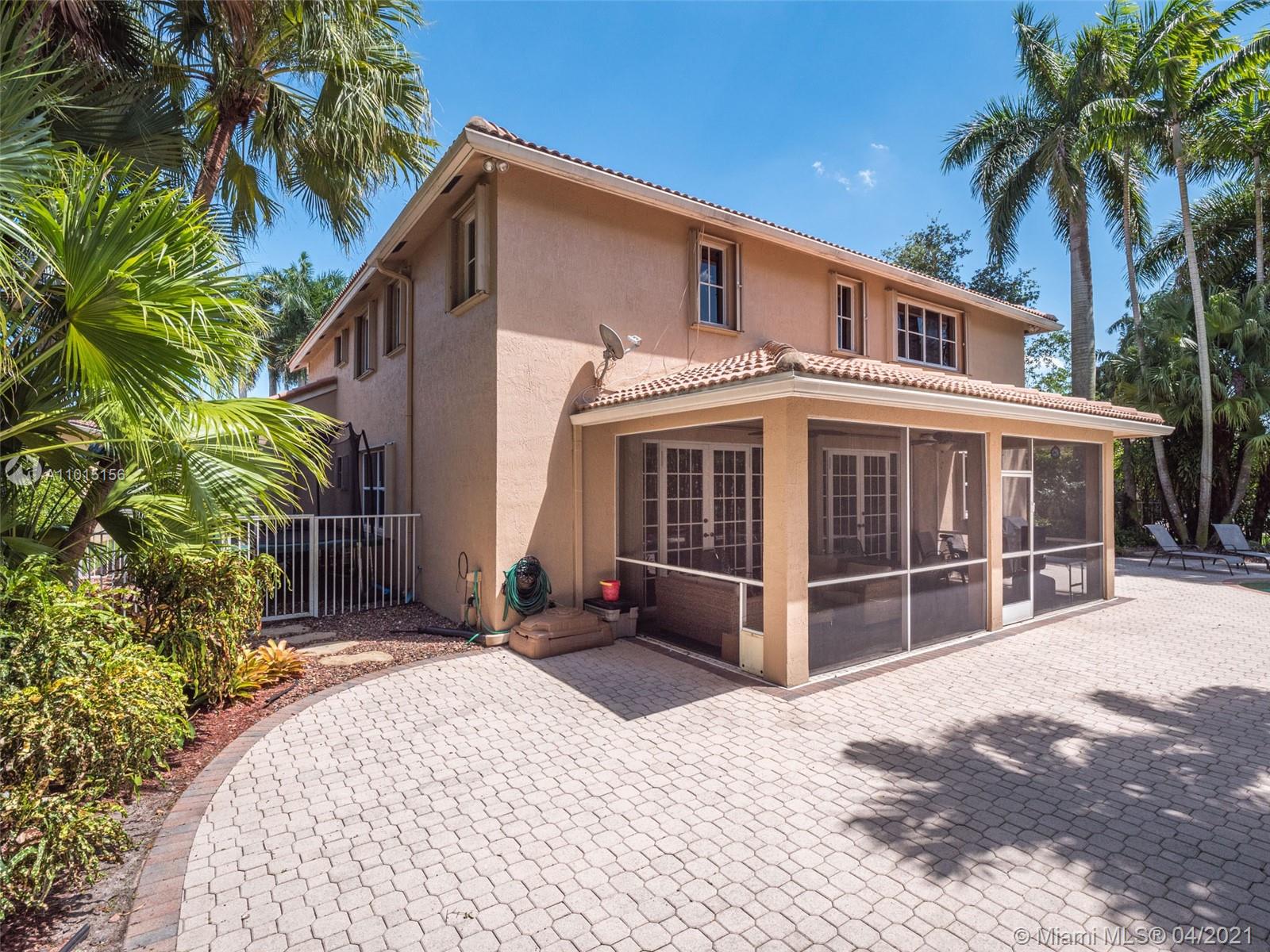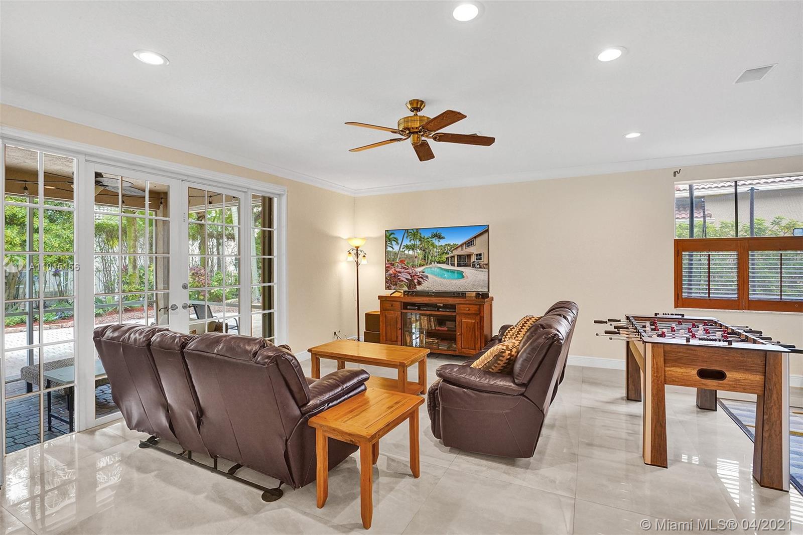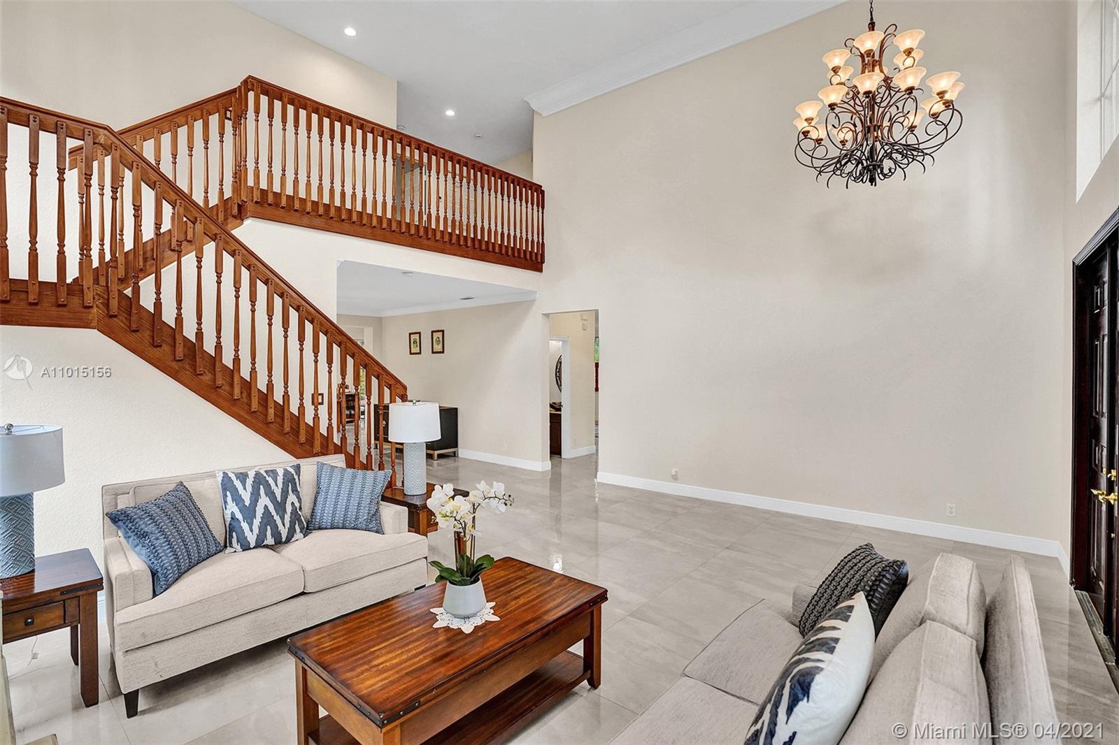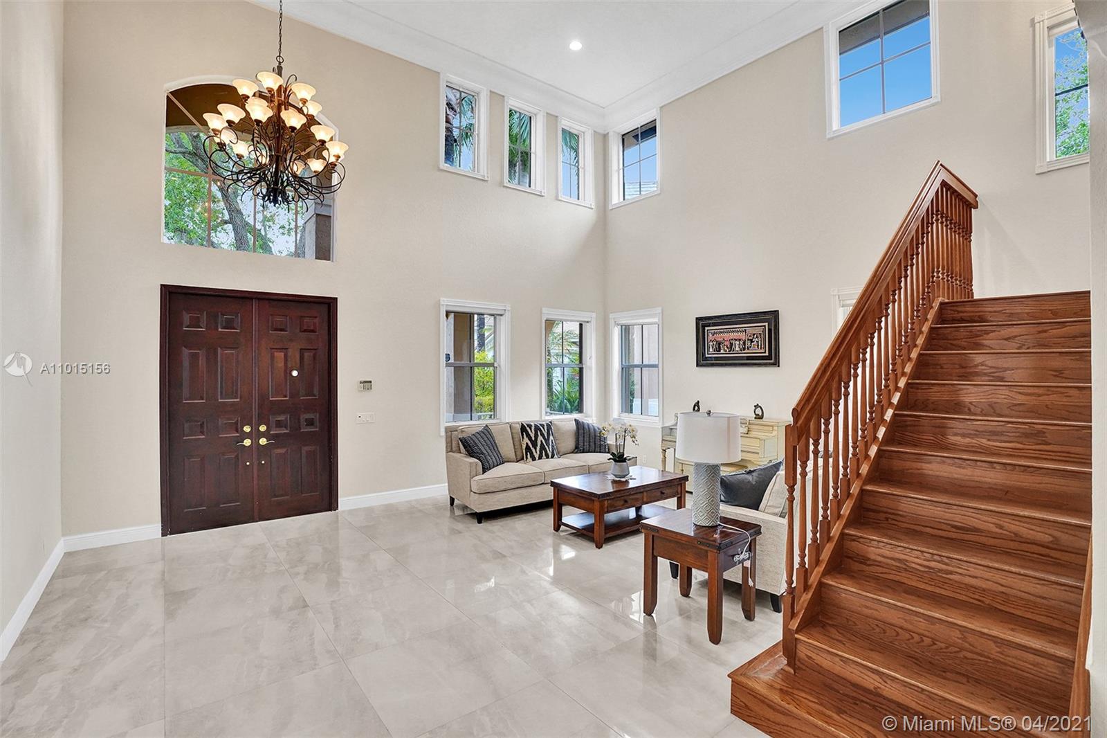 Perfectly placed in the cul de sac in the gated community of Hunters Pointe at Weston Hills CC. Popular Glendale model with great curb appeal. The two-story living room welcomes you with new porcelain tile flooring flowing throughout the first level. Freshly painted in today's colors. White kitchen with granite countertops and Stainless steel appliances. An oversized family room can easily convert to an additional full bedroom or office. Double sliders on your private fully fenced yard with screened patio, paver pool deck with a freeform pool. Master bedroom second level with wood flooring, sitting room, and two large closets. Renovated baths, wood floors in all bedrooms. Walk to community park.