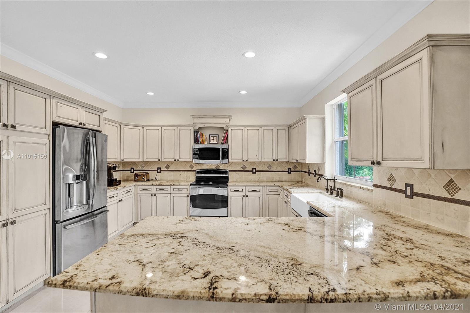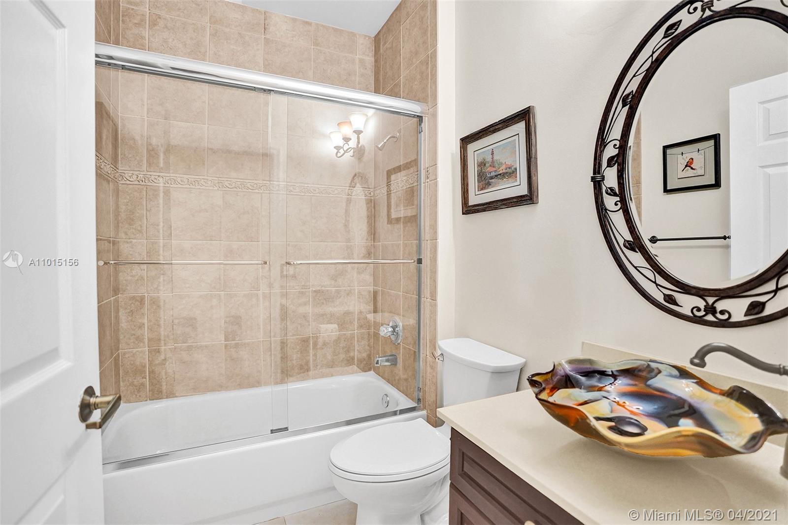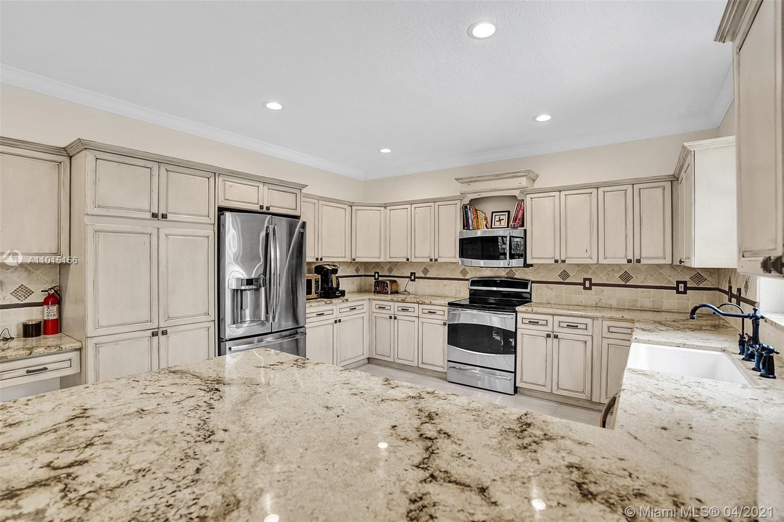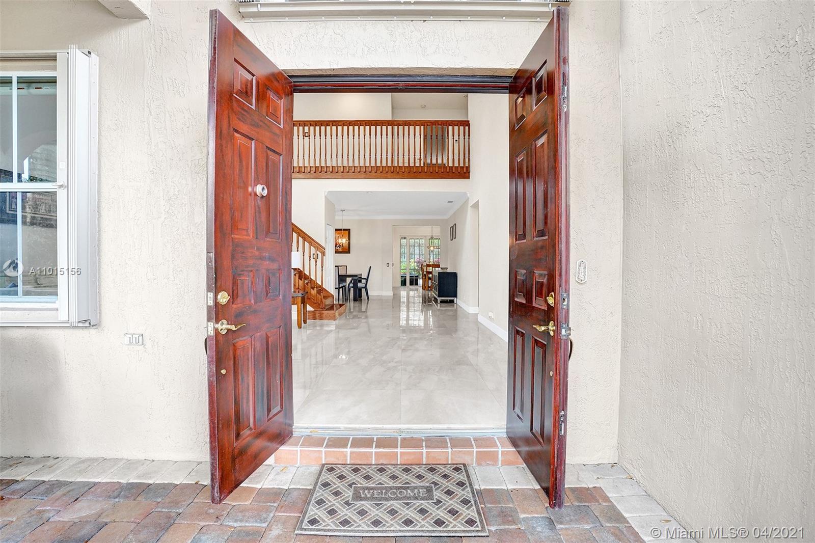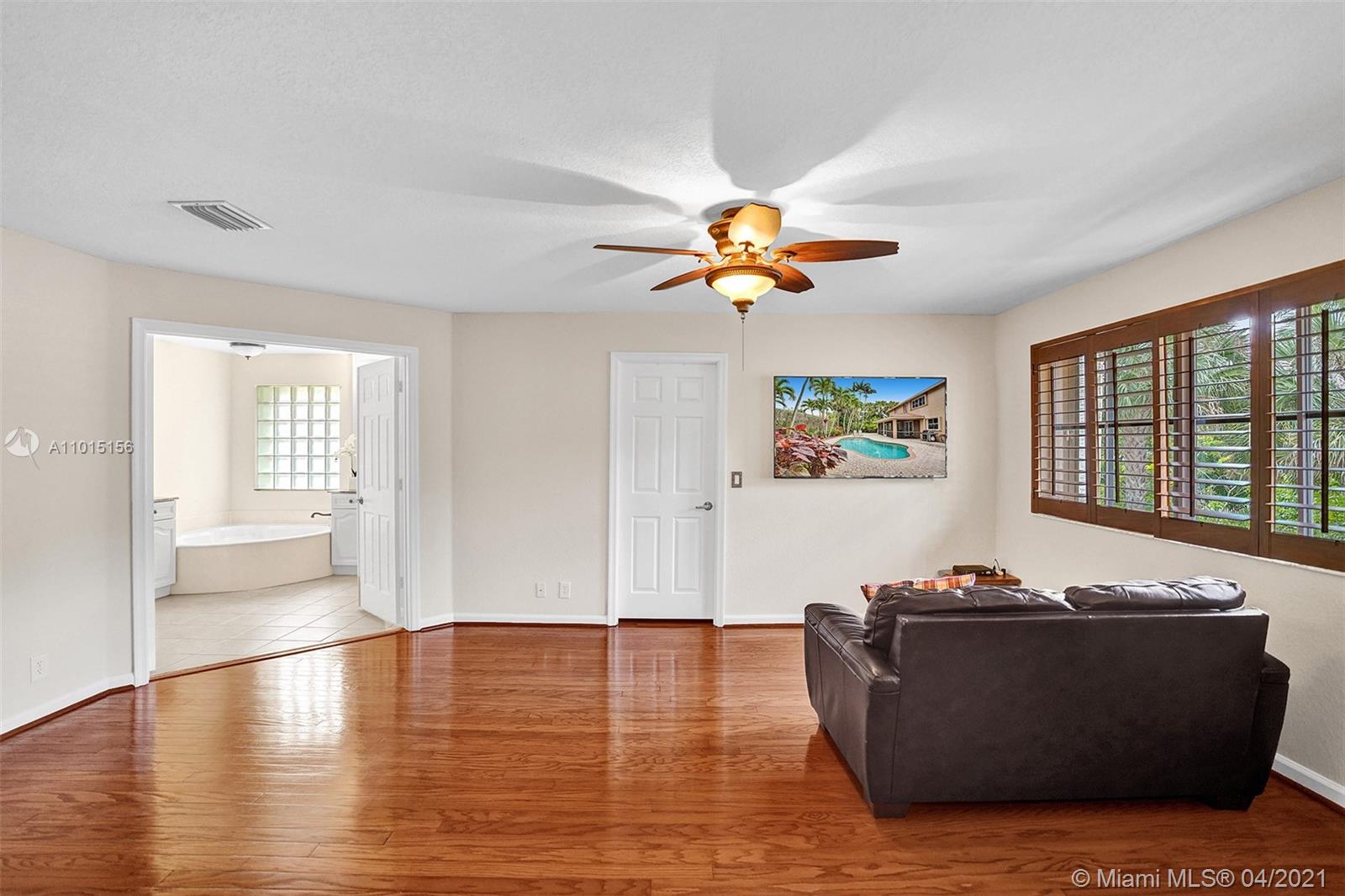 Perfectly placed in the cul de sac in the gated community of Hunters Pointe at Weston Hills CC. Popular Glendale model with great curb appeal. The two-story living room welcomes you with new porcelain tile flooring flowing throughout the first level. Freshly painted in today's colors. White kitchen with granite countertops and Stainless steel appliances. An oversized family room can easily convert to an additional full bedroom or office. Double sliders on your private fully fenced yard with screened patio, paver pool deck with a freeform pool. Master bedroom second level with wood flooring, sitting room, and two large closets. Renovated baths, wood floors in all bedrooms. Walk to community park.