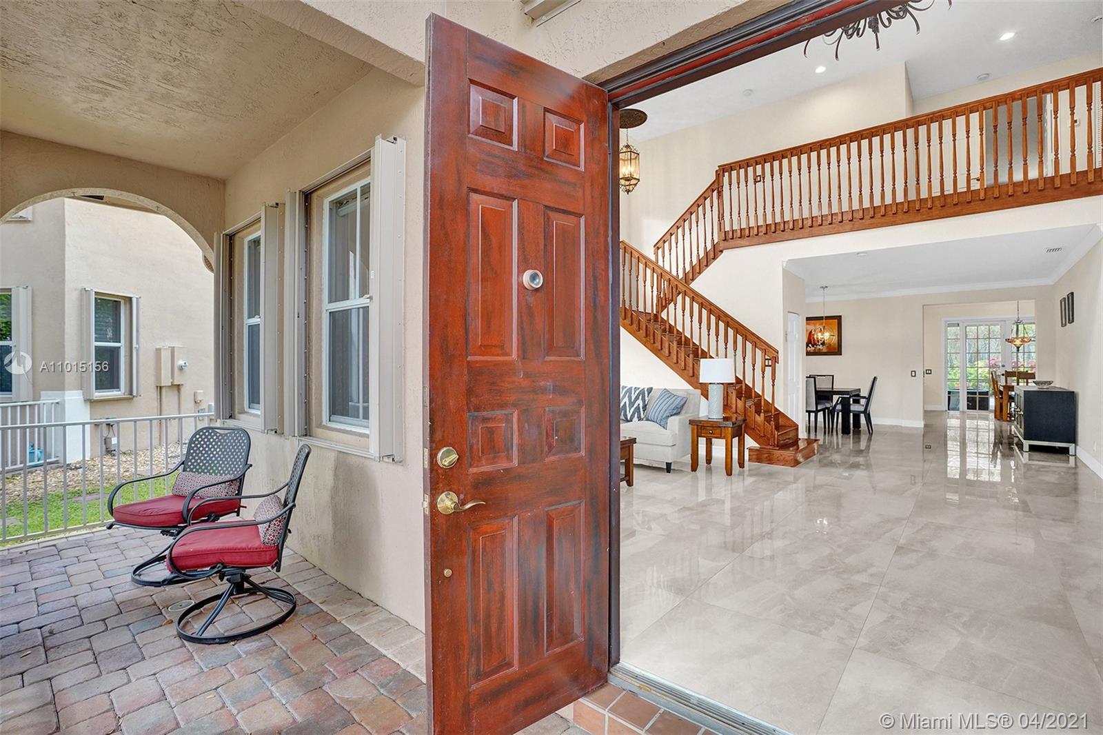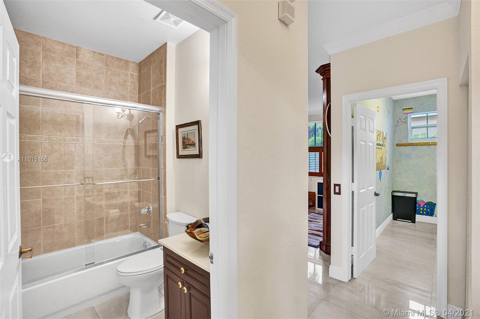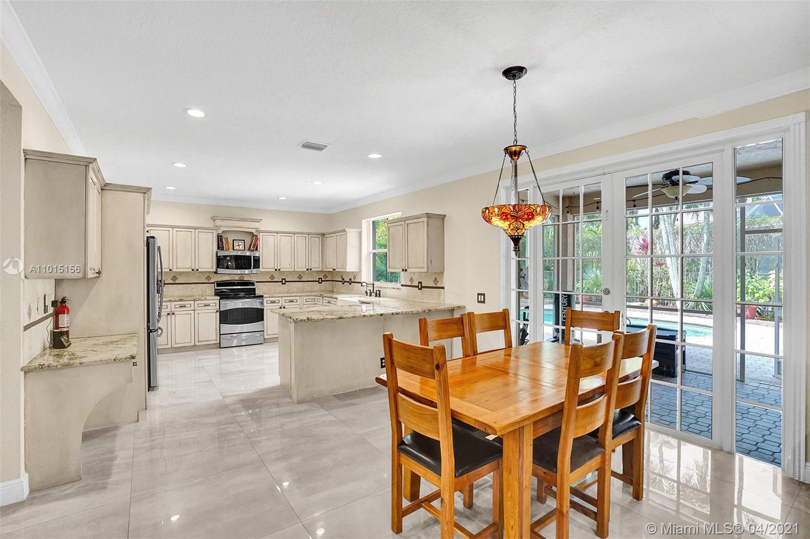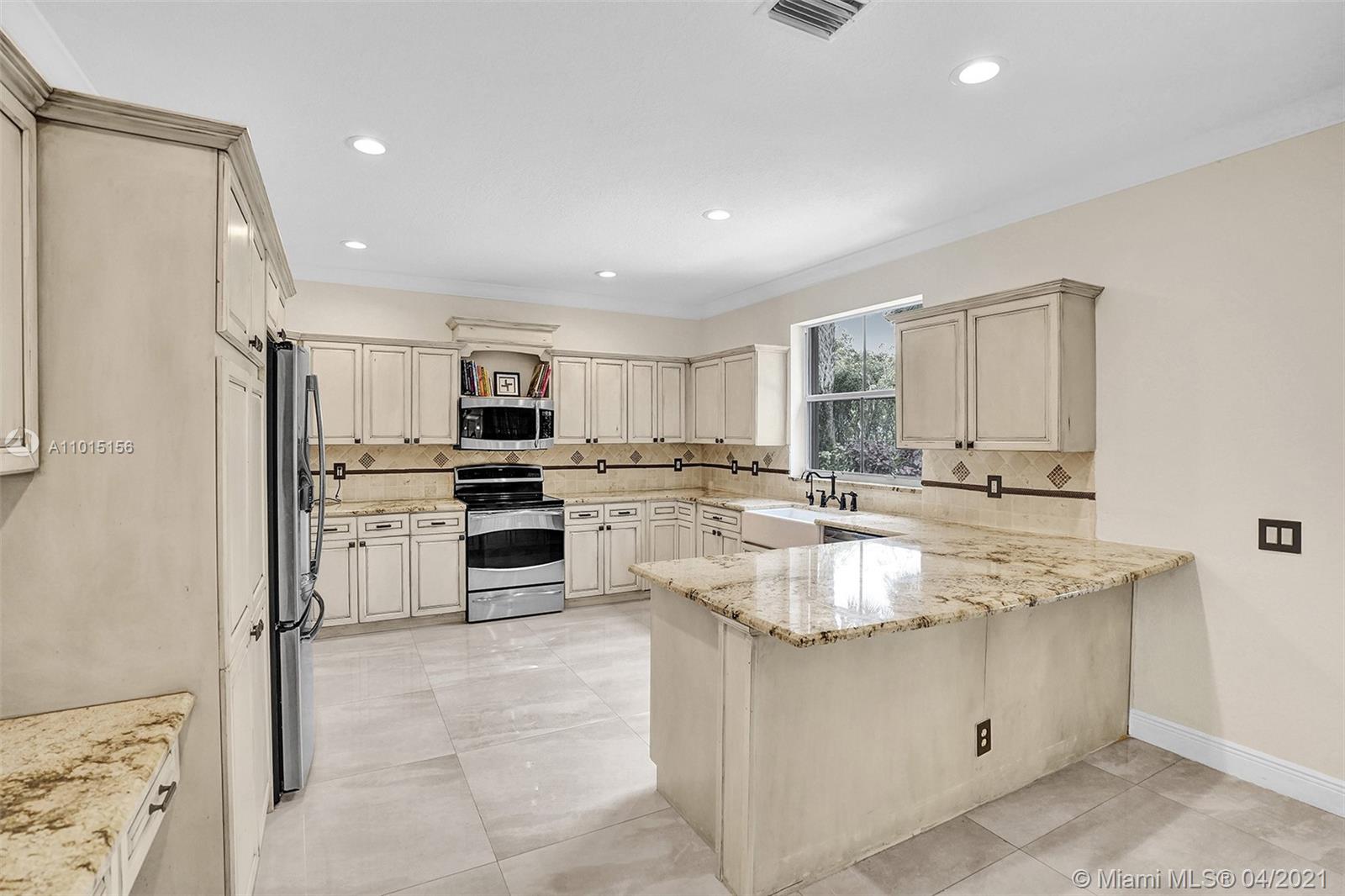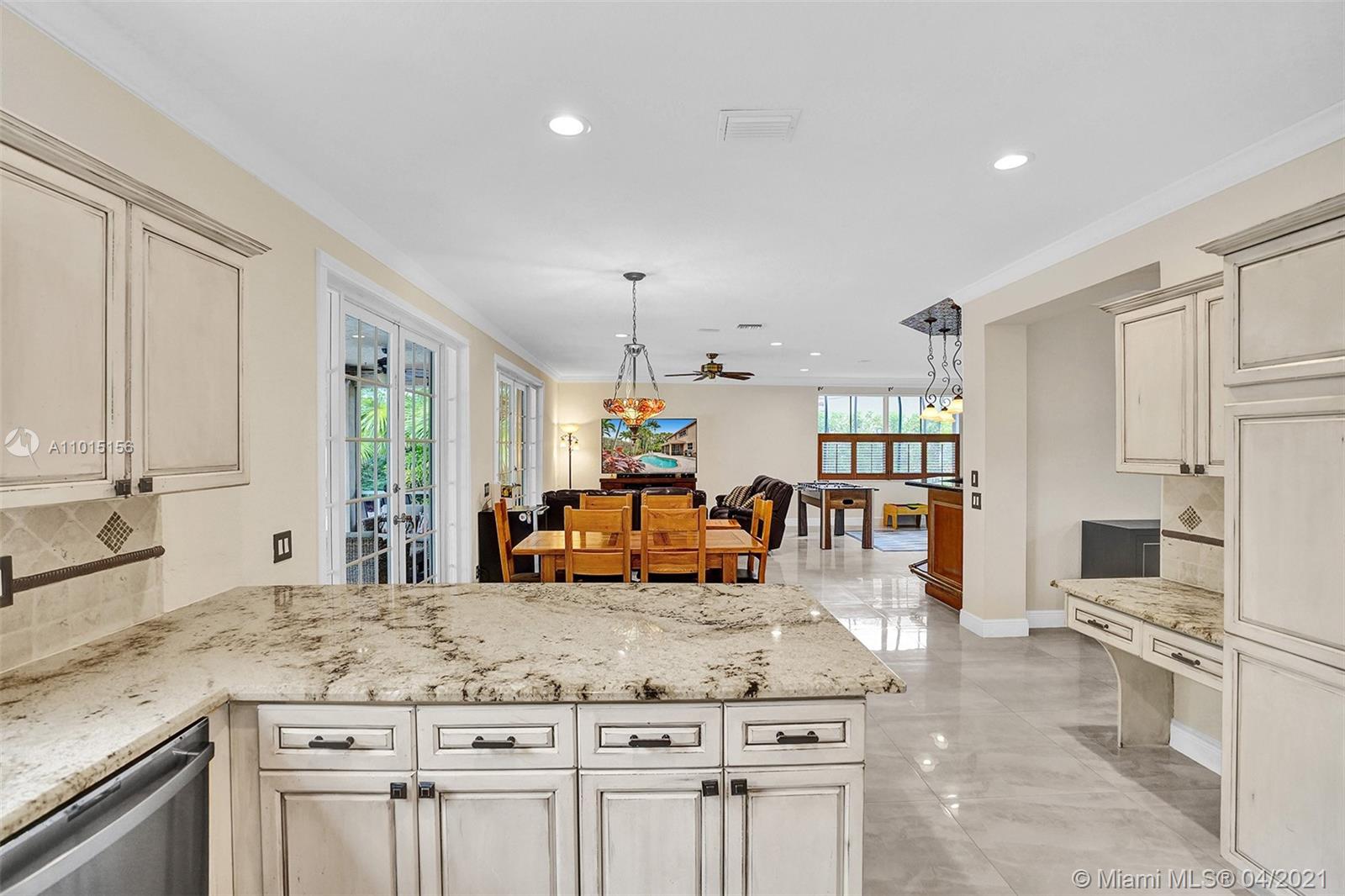 Perfectly placed in the cul de sac in the gated community of Hunters Pointe at Weston Hills CC. Popular Glendale model with great curb appeal. The two-story living room welcomes you with new porcelain tile flooring flowing throughout the first level. Freshly painted in today's colors. White kitchen with granite countertops and Stainless steel appliances. An oversized family room can easily convert to an additional full bedroom or office. Double sliders on your private fully fenced yard with screened patio, paver pool deck with a freeform pool. Master bedroom second level with wood flooring, sitting room, and two large closets. Renovated baths, wood floors in all bedrooms. Walk to community park.