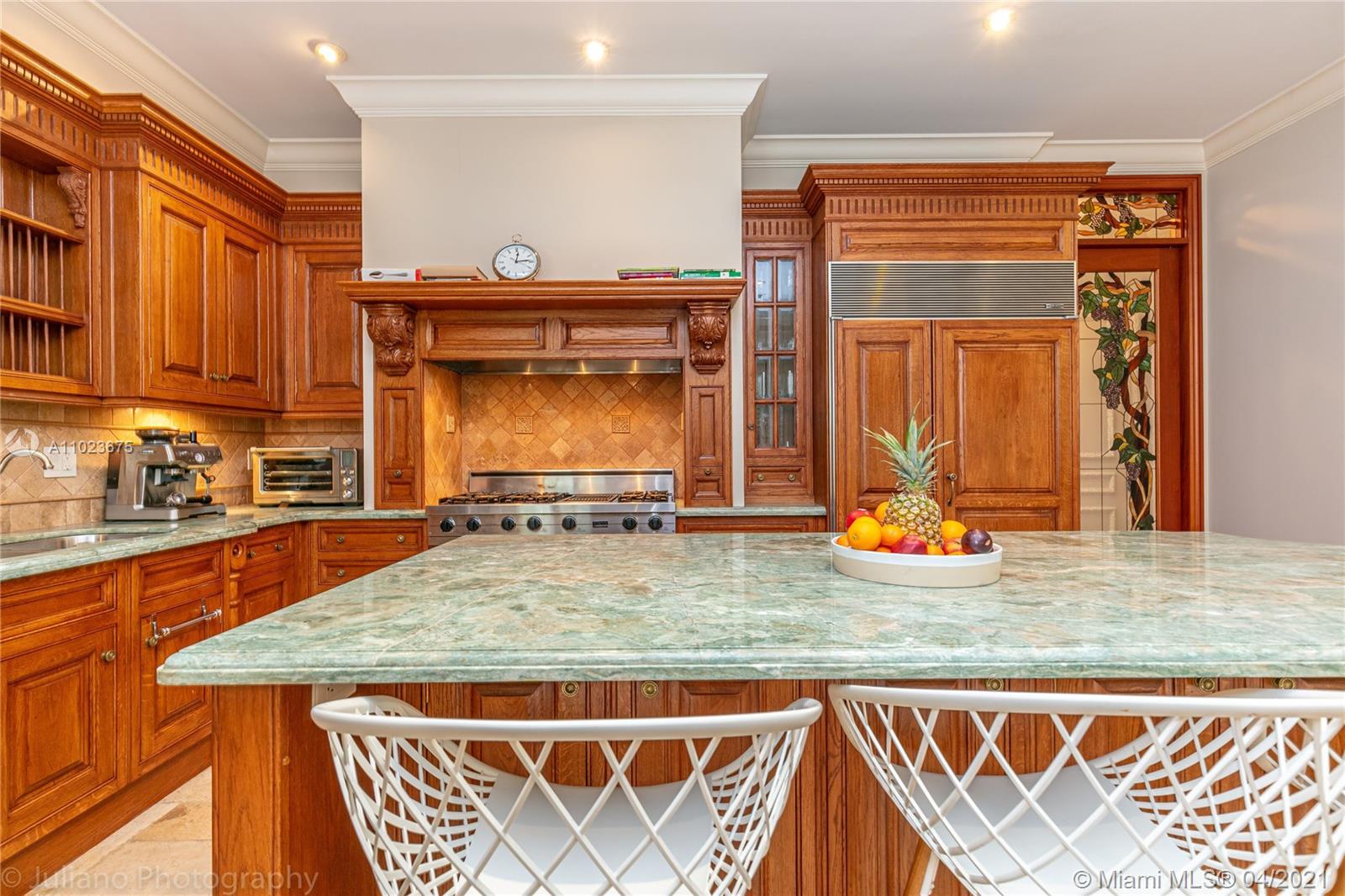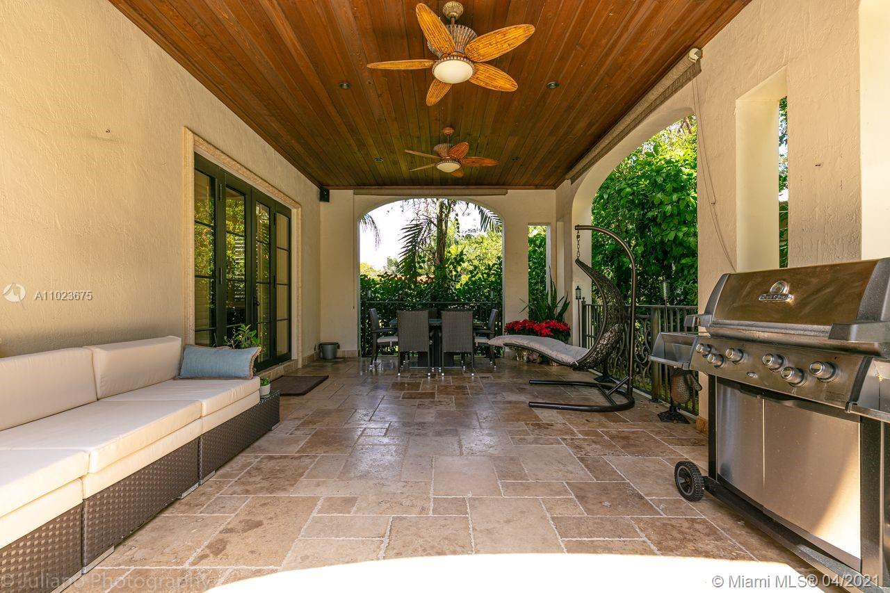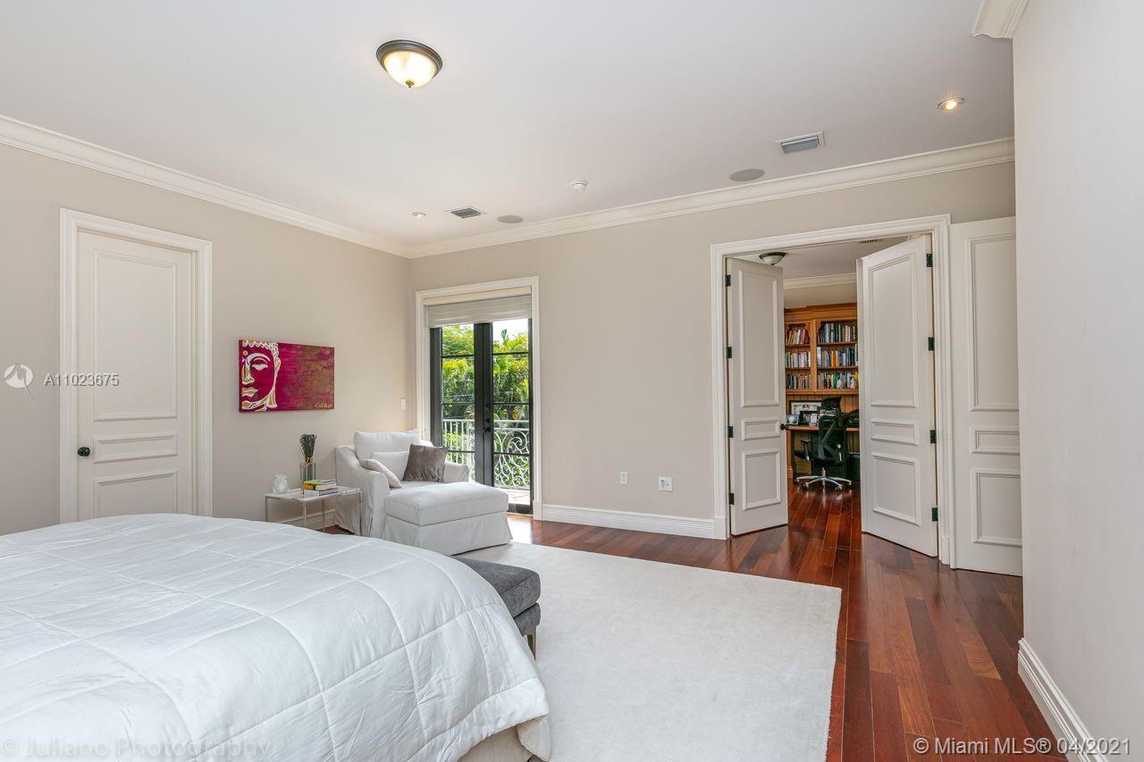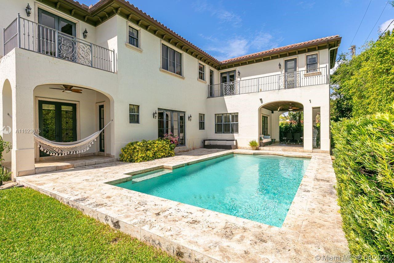 Magnificent Mediterranean with modern classic flair on Granada Blvd facing the UM green. Soaring cathedral ceiling with luxurious main bedroom suite, including home office and balcony overlooking pool. Formal dining, formal living room and covered terrace, downstairs bedroom suite can be used as maid or in law quarters. This spacious 5 bed / 5.5 custom built 2005 home features high end finishes (kitchen, home office and main bathroom cabinetry by designer Clive Christian) marble floors downstairs and beautiful Brazilian cherry wood floors throughout upstairs. Ample two car garage has specialty siding for adjustable shelving and extra storage. Viking gas range, paneled Subzero refrigerator/freezer, large covered patio and many extras. Exterior recently painted. Tenant occupied