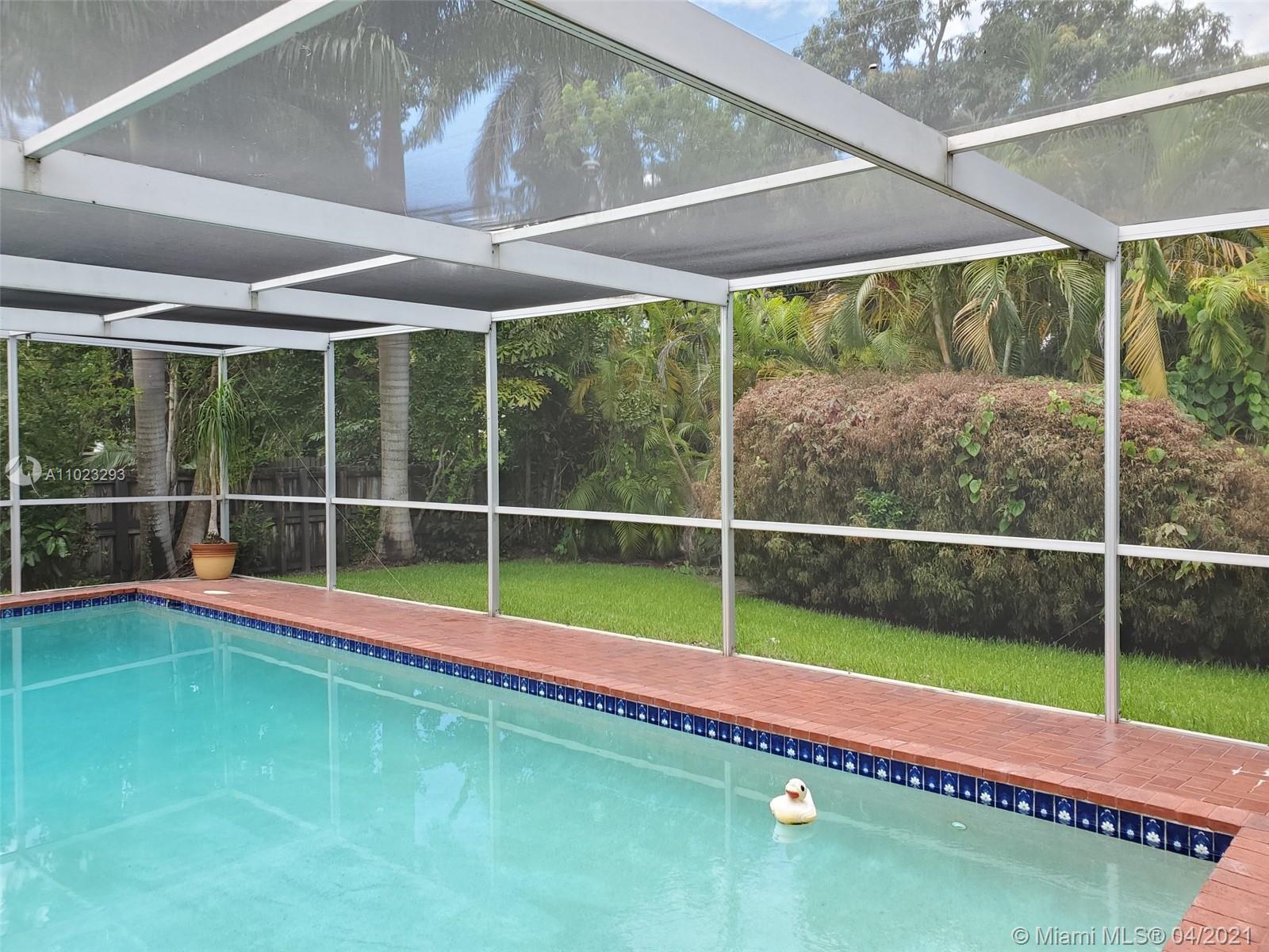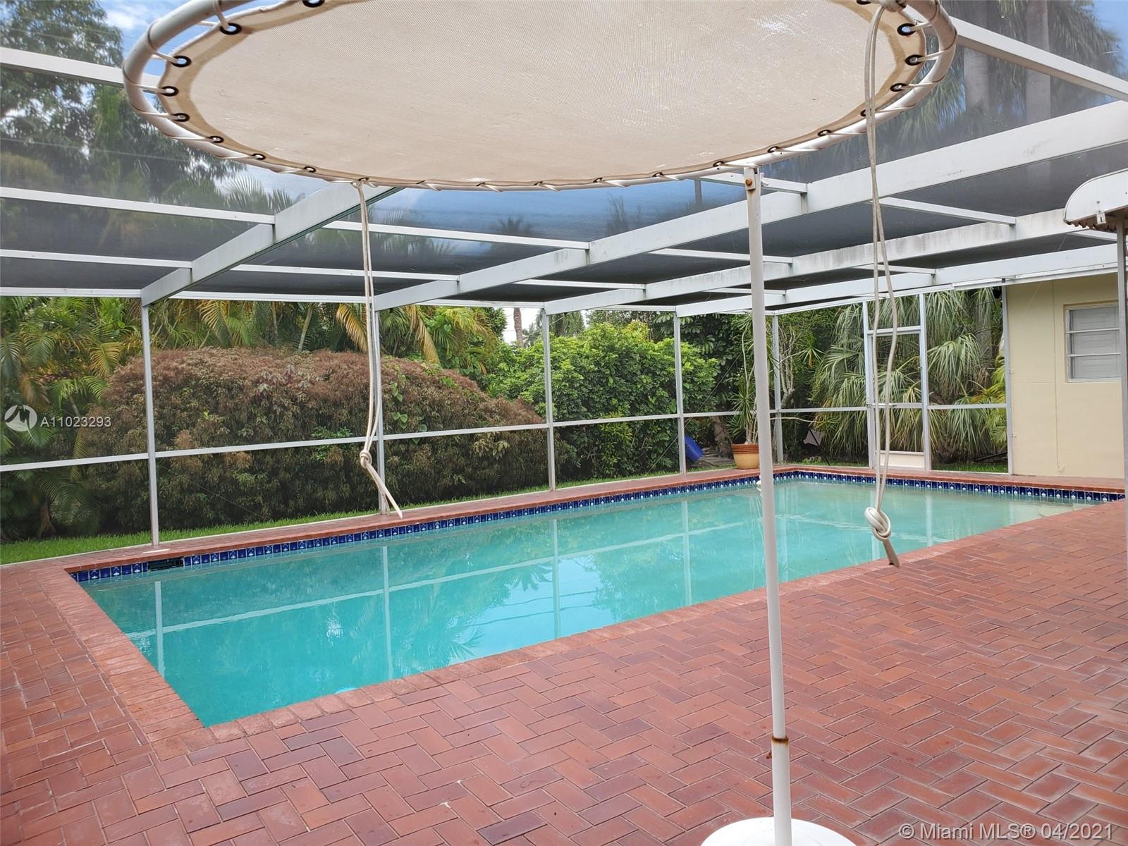 Rare find - Beautifully landscaped 3 Bed/2 Bath home with 1 Car Garage on a lot and a half in Hollywood Lakes! Spacious and sunlit living area with beautiful flooring and double sliding glass doors opening out to the Screened Pool area, perfect for entertaining. Kitchen features spacious stone countertops, white tile backsplash, light wood tone cabinetry with plenty of natural light. Split Floor Plan with true Master Bedroom featuring updated vanity, dual sink, a glass square block window which affords natural light and privacy. Plantation shutters and generous closet space in all 3 bedrooms. Enjoy the Southlake lifestyle – minutes to the Beach, South Lake, Downtown Hollywood, West Lake Park, Restaurants, Entertainment & Hollywood/Ft. Lauderdale airport and all South Florida has to offer!