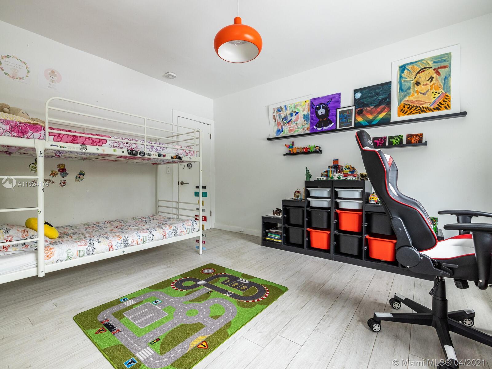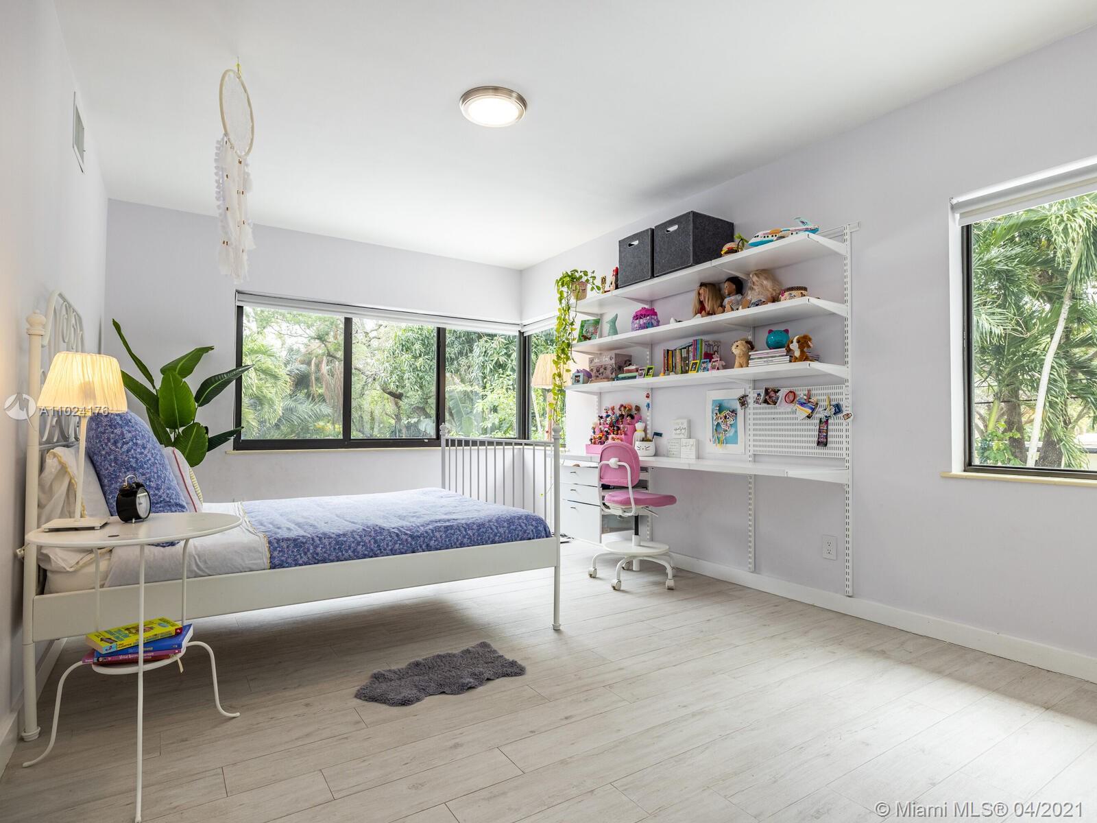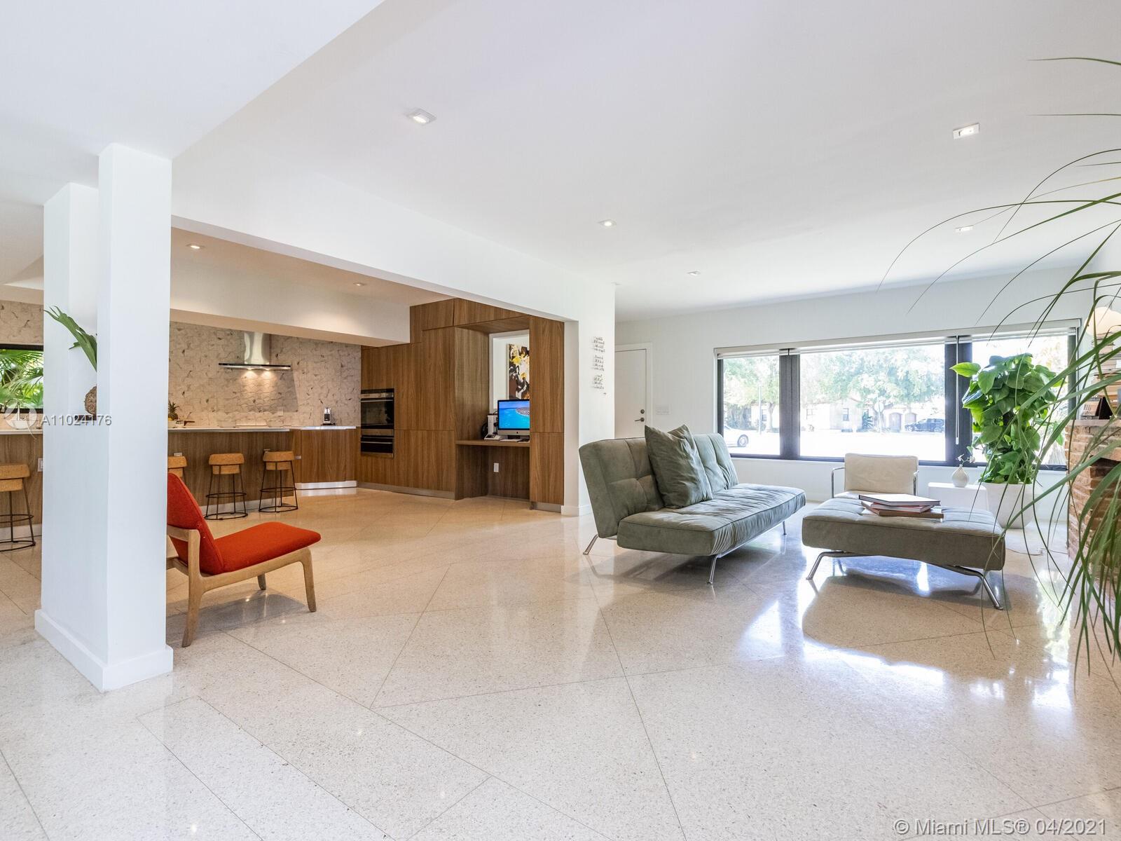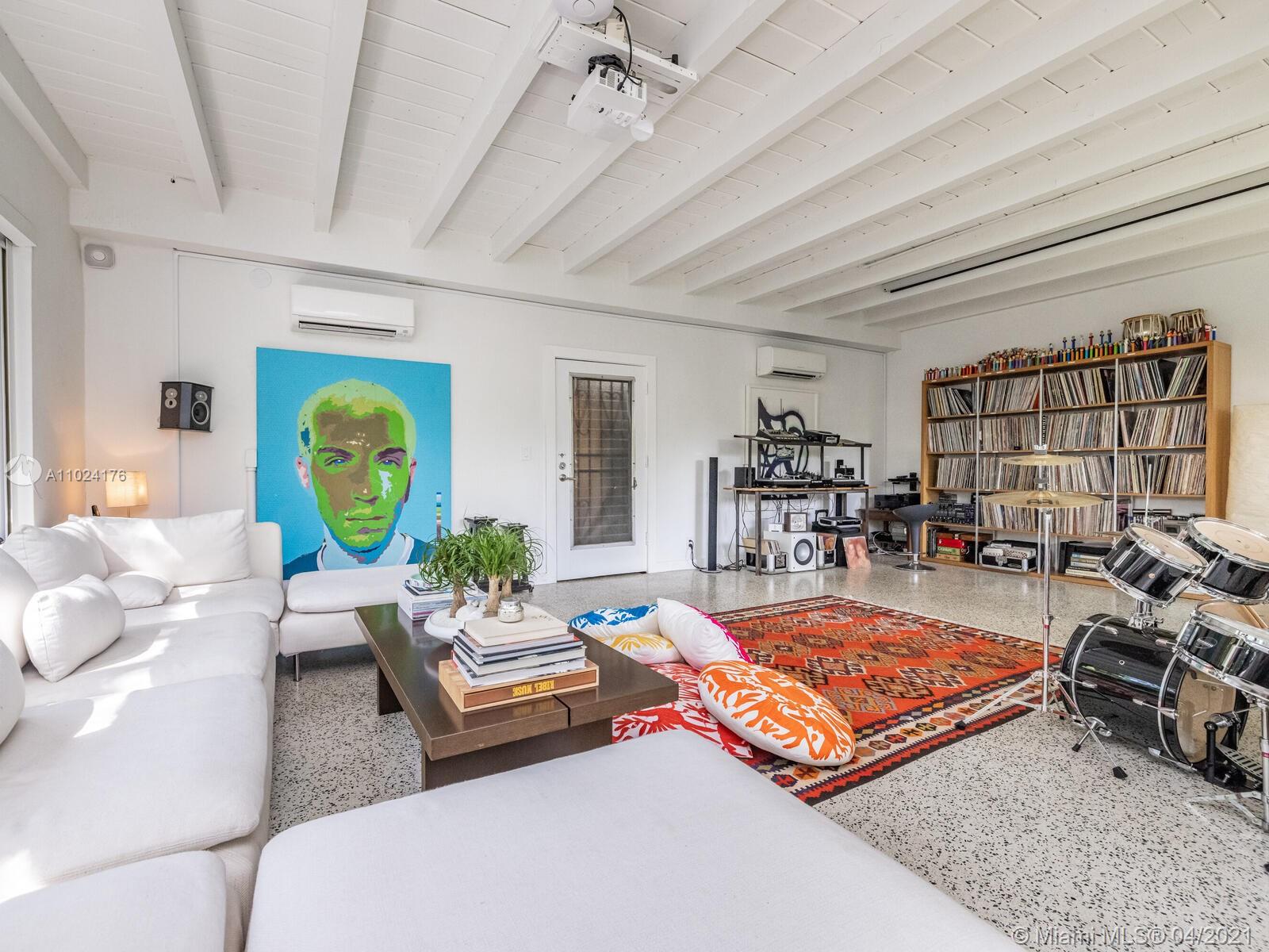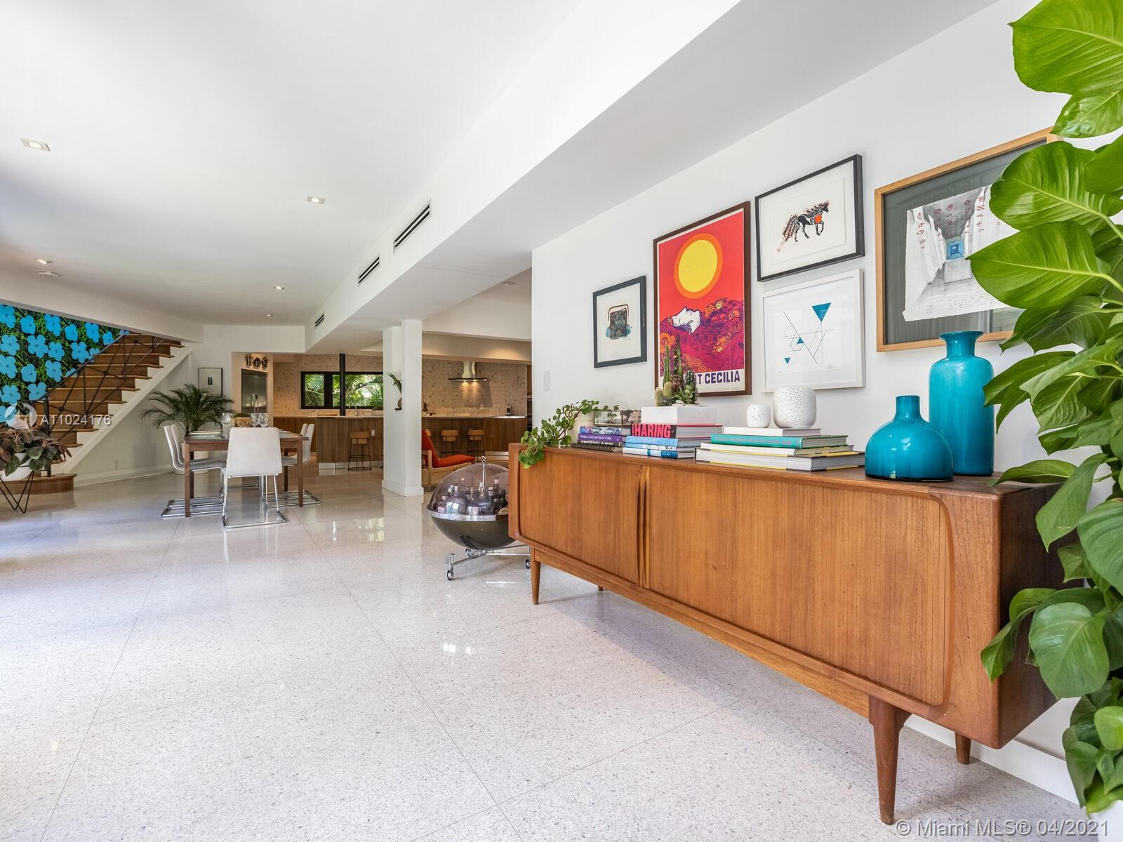 Welcome to The Panorama House! Recently renovated sprawling Mid-Century Modern marvel by noted architect, Joseph De Brita. Cleverly designed on a 1/2 acre corner lot, it wings out to an expansive hexagon-shaped loggia and stunning lush gardens with new sparkling 42’ pool with sun shelf. So much room to relax or entertain! Great layout and authentic character: eat-in Italian designer kitchen, split bedroom plan, new luxurious spa-like master suite retreat, plus preciously-preserved Instagram-ready vintage baths, a bonus guest suite and a 468 SF screening room! Feels like an exclusive boutique hotel with Andy Warhol wallpaper, Wynwood Walls-inspired custom murals by top artists and a forest of edible trees. New roof (2021). Experience your own private sanctuary in the heart of Miami Shores!