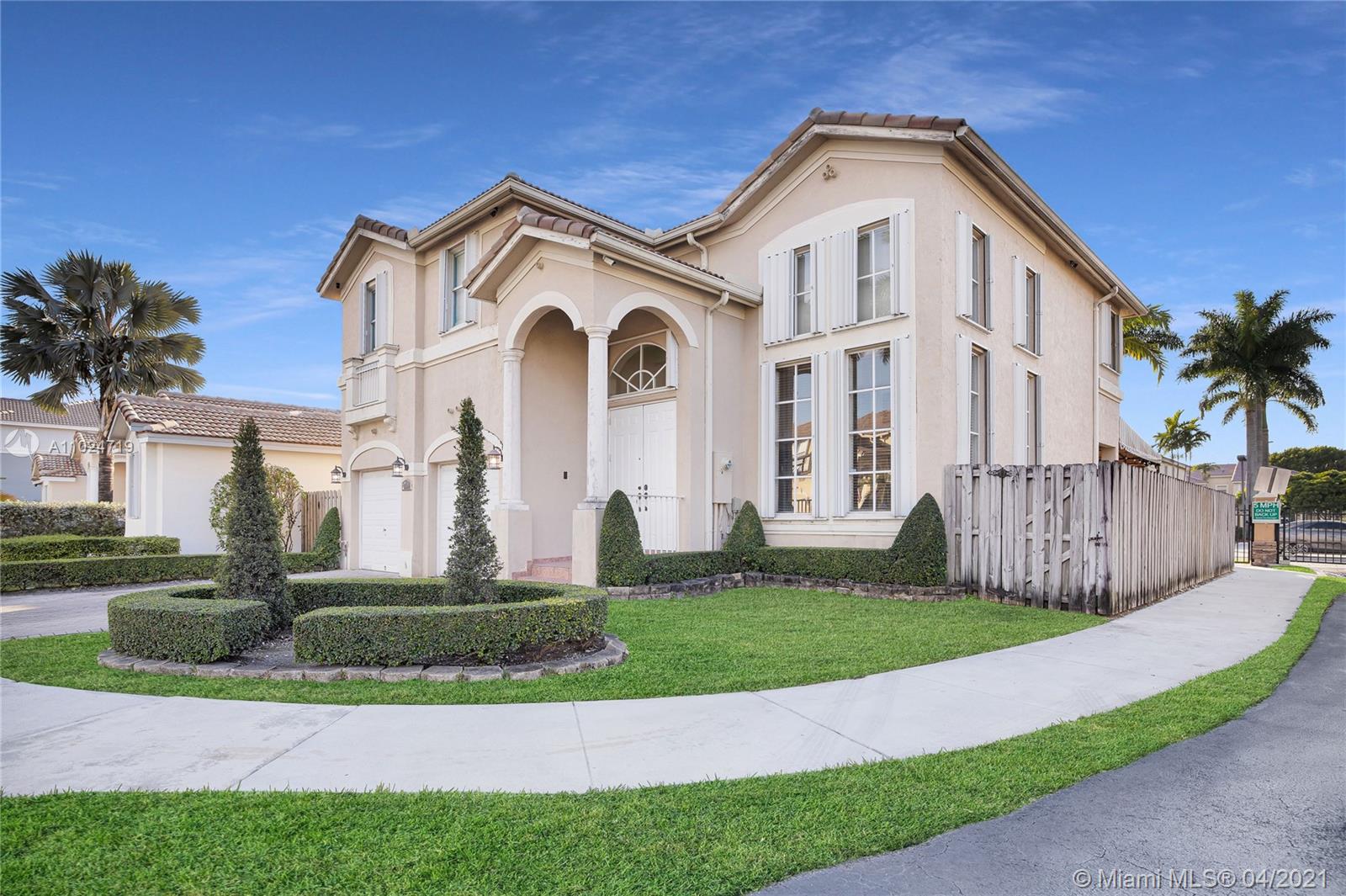 Search no more.. Welcome Home!! This beautiful & spacious 4 bedrooms, 3.5 bath home in the quiet gated community of Costa Bonita. Remodeled bathrooms, updated kitchen, great floor plan, newer appliances, landscaped yard, fenced in rear covered patio, great for entertaining. Oversized electrical panel w/ generator hook up, Accordion Shutters, home is wired for security cameras, & speaker hook ups in Family room, Smart house ready switches 1st floor with dimmers. Very centrally located in Miami Dade County, near the Turnpike, SR 826, SR 836, Miami International Airport, close to Dolphin Mall and lots of restaurants and entertainment. Very low HOA $160 monthly.