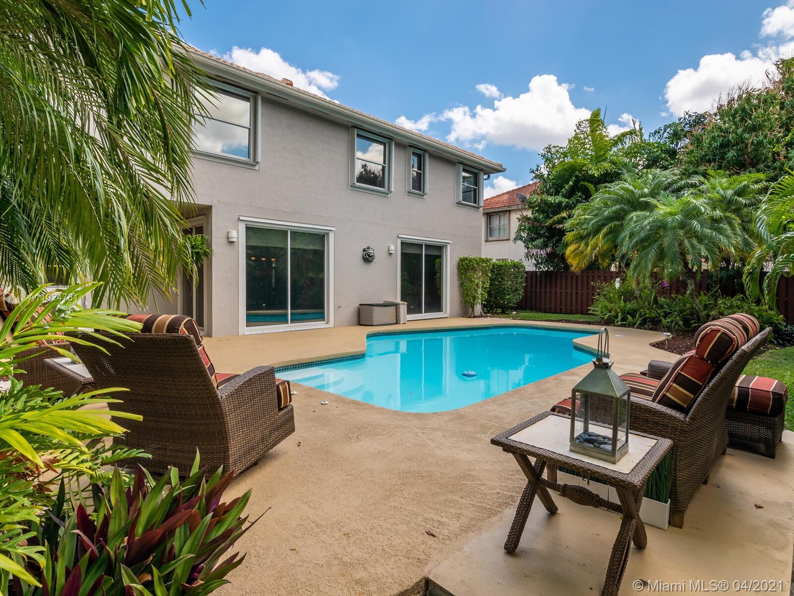 Elegant two story home with pool and lush backyard in The Estates of Stirling Lakes. Recently renovated with high-end finishes, professionally decorated and beautifully maintained. Great floor plan - Viscaya model. 5 bedrooms, 2.5 bathrooms can be easily converted to 3 baths. Open kitchen with wood cabinetry, pantry and plenty of storage space. Formal dinning, living and family rooms, wet bar with wine cooler. Plantation shutters, new window treatments and blackout blinds. Brand new porcelain tile and wood floors throughout. Large master suite with sitting area and his/hers closets. Dual sinks with marble counter, separate tub and shower. 3 car garage with storage room. A+ rated schools. Desirable gated community with playground and tennis court. Very low HOA. Furniture available for sale.