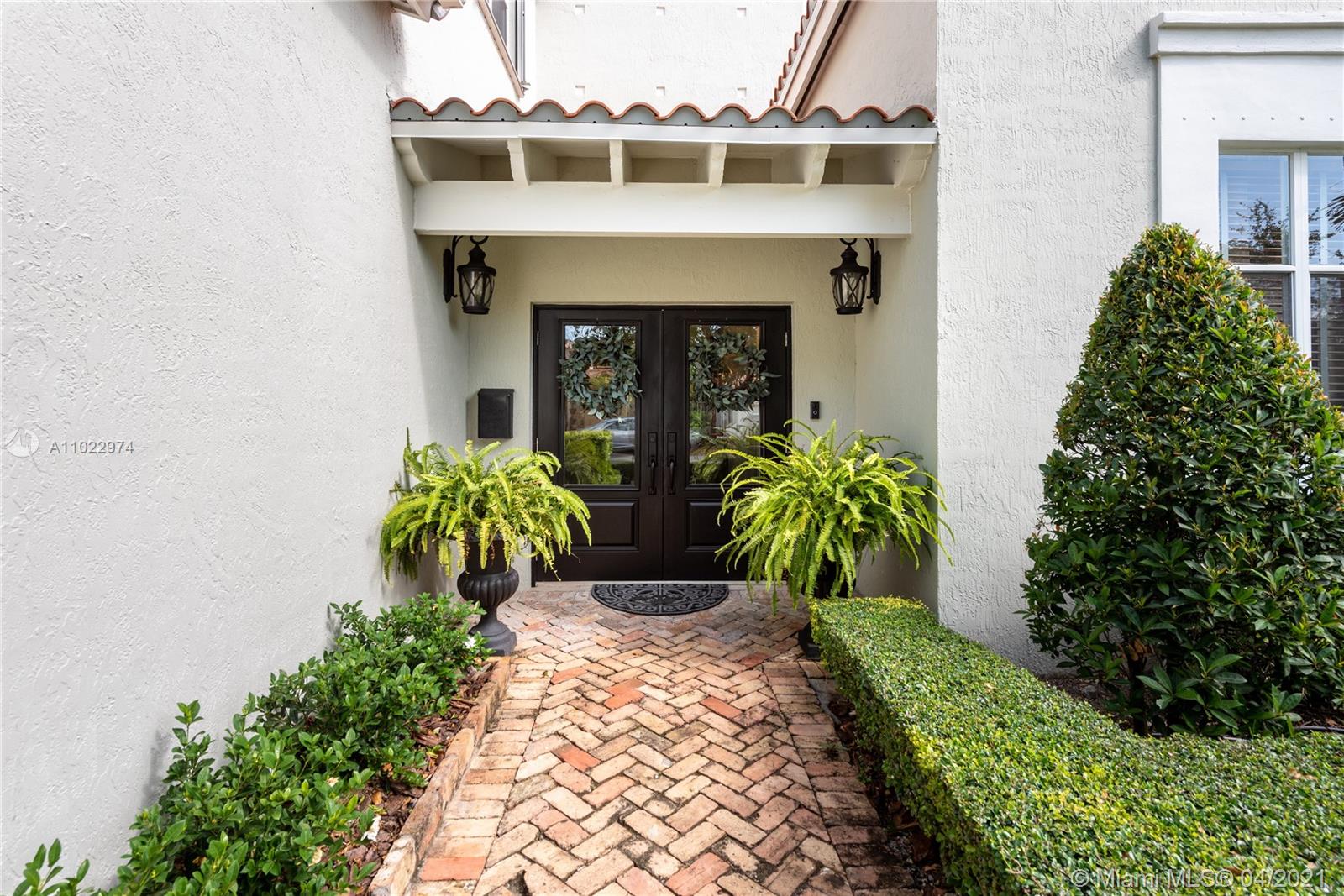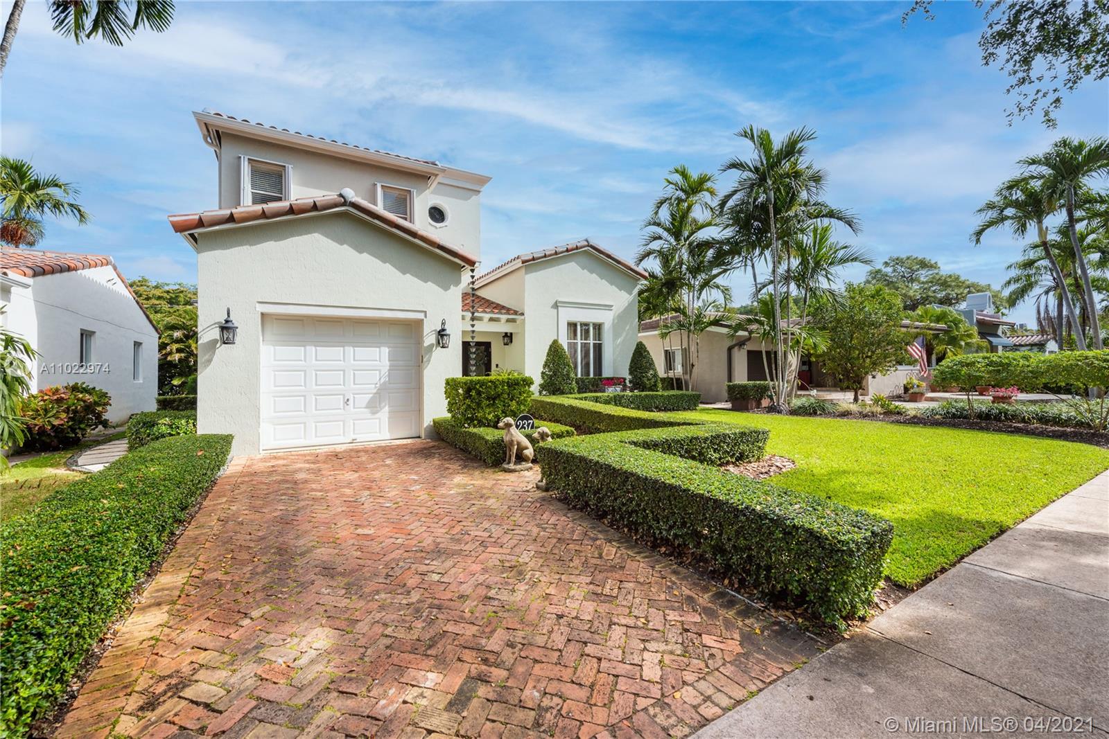 Stunning two-story home just east of Ponce south of University Dr. on a quiet, tree-lined street. Built-in 1997, this home features 3 bedrooms/2.5 baths. Foyer entrance through double doors. Formal living room, hall with half bath next to the staircase, updated kitchen that overlooks the dining room. The large master suite is downstairs with French doors to a private patio. Upstairs are two large bedrooms with a hall bath. High ceilings throughout the home and many windows that allow lots of light. Chicago brick driveway, sidewalk, and spacious interior courtyard. Finished one-car garage, now a playroom, is fully usable as a garage. Split a/c units, Shutterr. Brand new roof. Home is exquisite and move-in ready. 5,000-foot lot with 1,837 adj. sq. ft. Well priced for today’s market.
