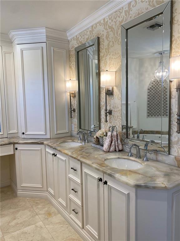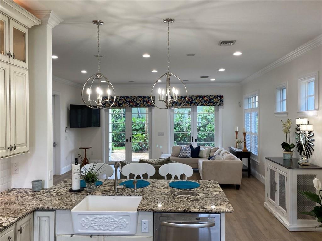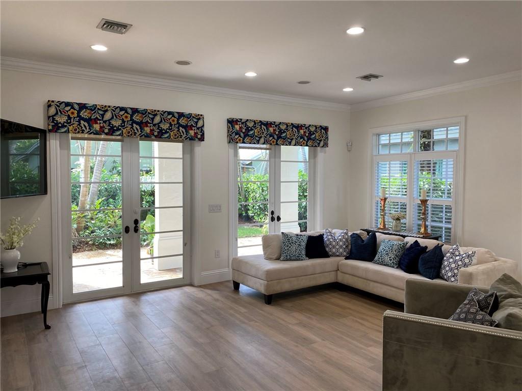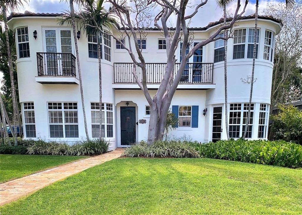 Gorgeous 2 story Tropical Spanish home built by Gulf Construction. Home originally built in 2010 has been fully restored. High ceilings and open floor plan on first floor with amazing natural light that floods in from the many impact windows and French doors. Large sleek kitchen softened with traditional touches. Natural gas stove. Charming round breakfast room, half bath and brand new porcelain tile flooring throughout the first floor. The family room has 2 sets of French doors looking out onto lushly landscaped gardens and patio. Upstairs has 5 bedrooms and 3 baths, large closets, Romeo and Juliet balconies and laundry room. Elegant Master suite has large bathroom, with tub and shower, his and her closets, round sitting room and balcony. Extra large 2 car garage