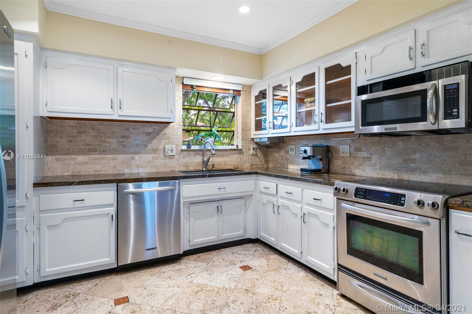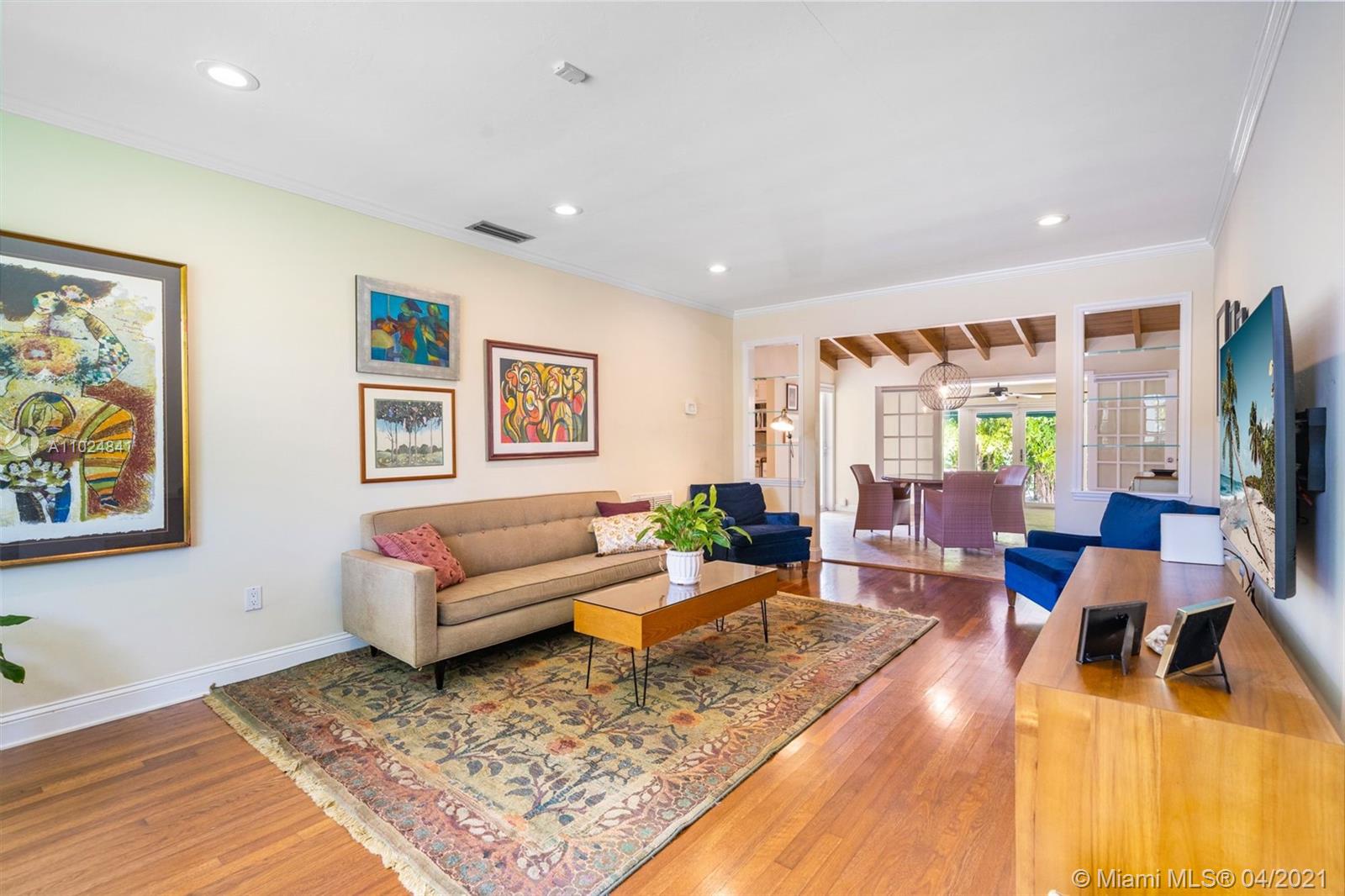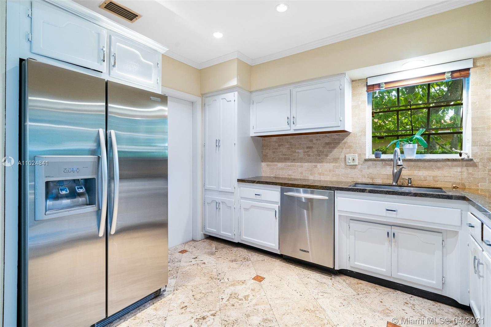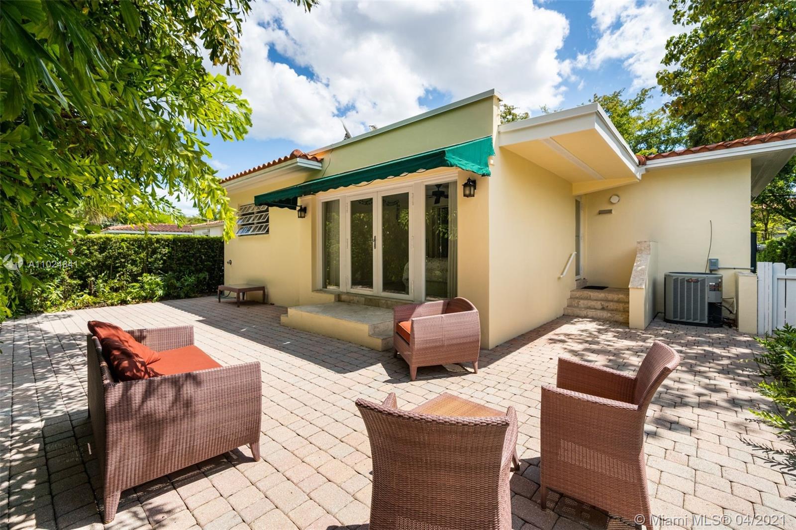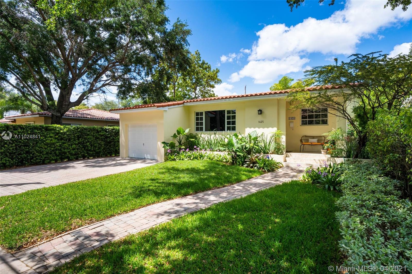 Beautifully maintained and tastefully updated, this charming 2 bed /2 bath mid-century home in the North Gables offers an open concept layout with refinished hardwood floors, a barrel tile roof, and a pitched ceiling with exposed beams in the dining room for added rustic charm. A walk-in closet in the master bedroom, granite countertops in the kitchen, all new appliances only add to this home's appeal. Impact-resistant double french doors with sidelights in the back family room and a large picture window in the front living room allow for lots of natural light to stream in both morning & afternoon. Located a few blocks from Granada Golf Course & just steps from away from Country Club Prado, Situated close to supermarkets, restaurants, shops, cafés, & highly rated schools.
