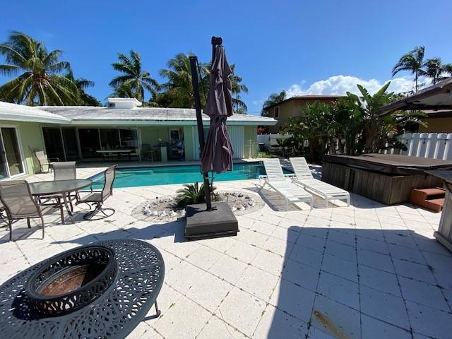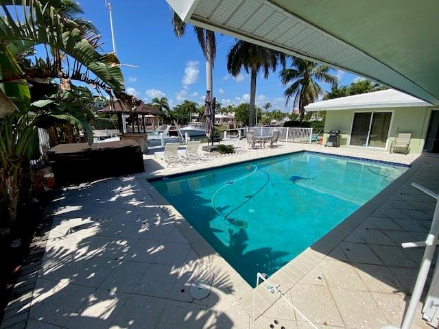 Location Location Location....boaters here it is .. at the Hillsboro Inlet, exceptionally beautiful large lot adorned with 4 tall royal palms, at just over 11,000 SF it is very spacious. Lot is 135 ft deep from street to seawall, just 17 lots to the ICW. A short 4 min boat ride to the Hillsboro Inlet at idle. Large 65 ft x 8 ft wide white PVC dock. Deepwater Canal with deep draft. Home is a 3 bed 2 bath with room to add on. PGT Impact glass throughout most of home. Impact entry door, impact garage door. Lots of room for potential to remodel to your own taste, add on or tear down to build a masterpiece. Large deck area with 28x14 pool. The location cannot be beat, walking distance to Beacon Light plaza, a few minutes drive to LHP Marina. Offered AS-IS.