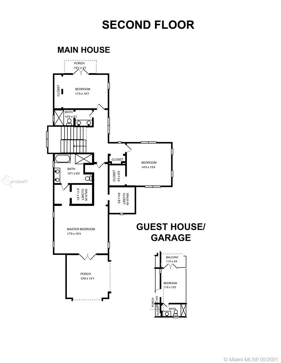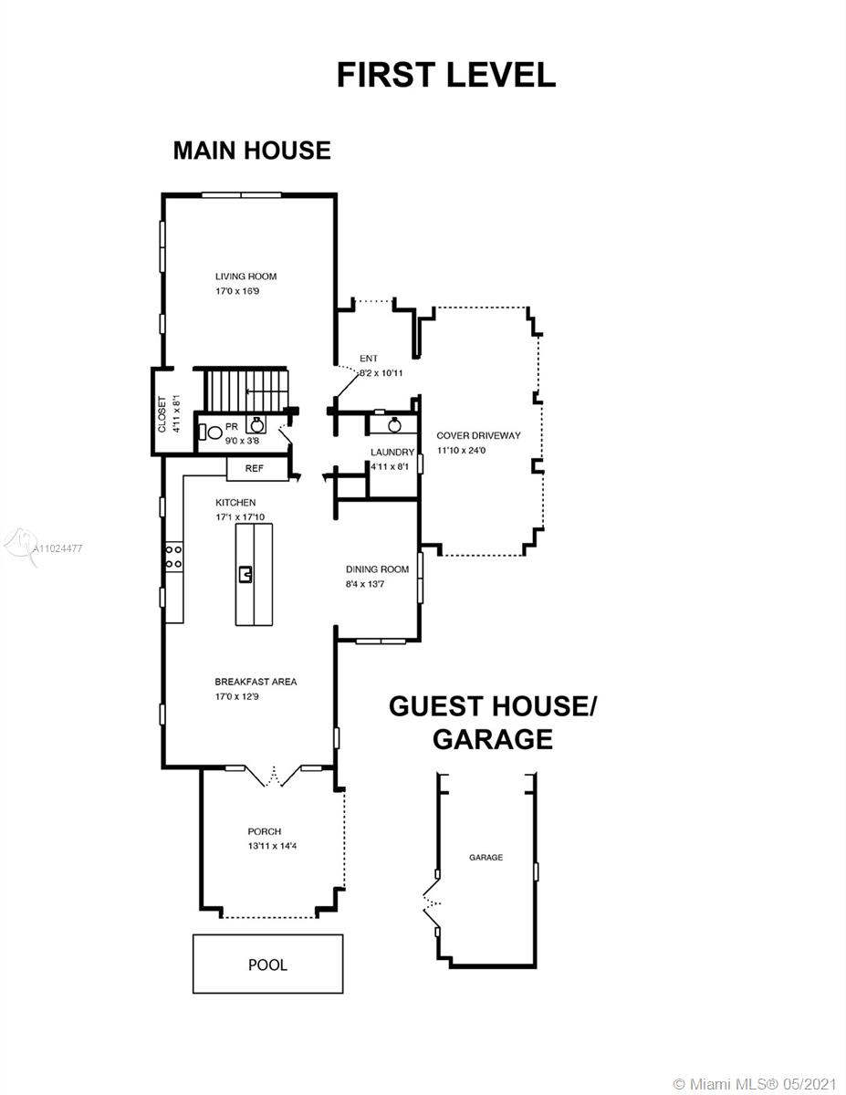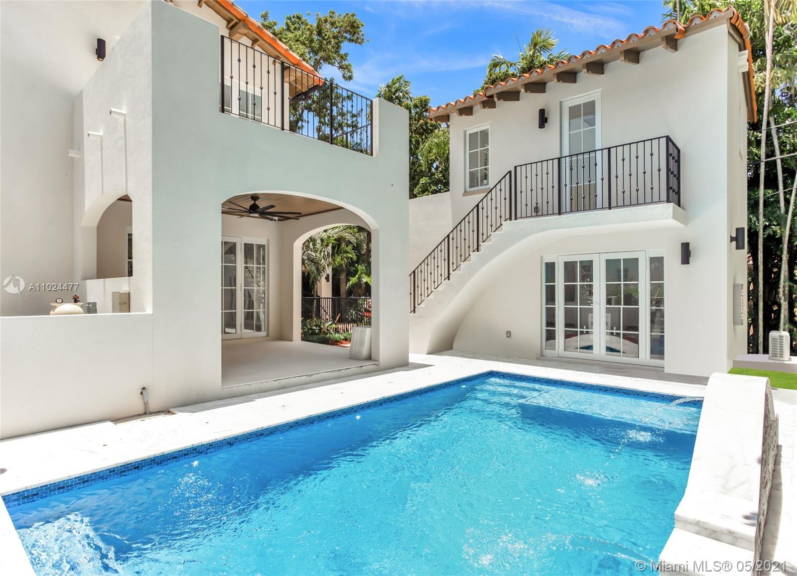 Spectacular one of a kind two-story 2021 new construction home nestled in the heart of Coral Gables. Main house features 3 bedrooms, 2 baths and powder room. Separate guest house includes 1 bedroom and bathroom. Master suite upstairs w/2 walk-in closets, bath suite & sundeck overlooking the pool. Perfect for families and entertaining, kitchen includes top-of-the-line Sub-Zero and Wolf appliances, oversized island & quartz countertops. Porcelain tiles throughout, plus sound system, impact windows & doors and high ceilings. Breakfast area and family room open to covered terrace, summer kitchen and pool. Ideally located blocks from Miracle Mile, Biltmore Hotel, the best schools, golf courses, parks, restaurants and shops in prestigious Coral Gables.